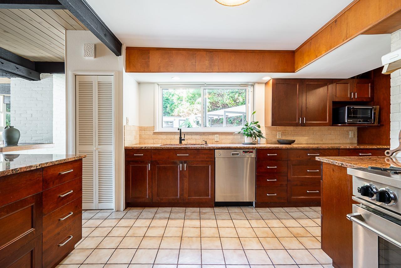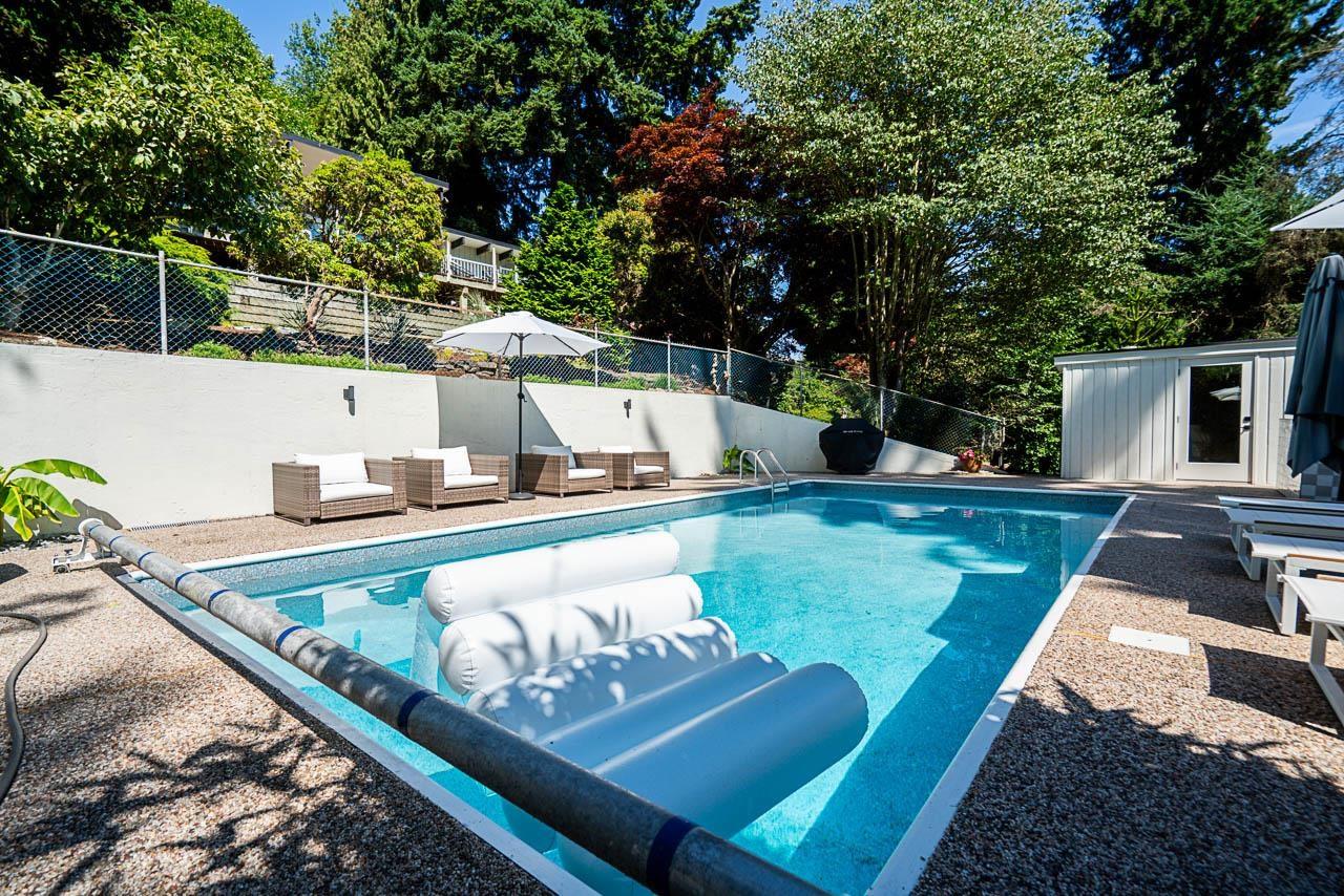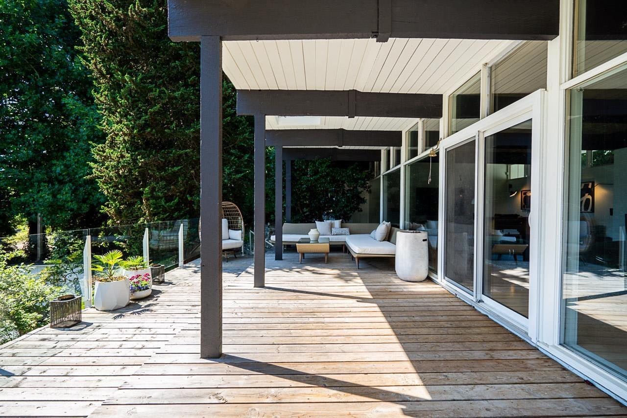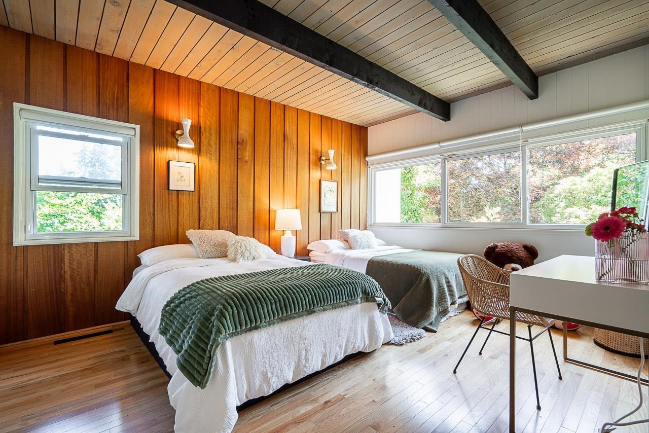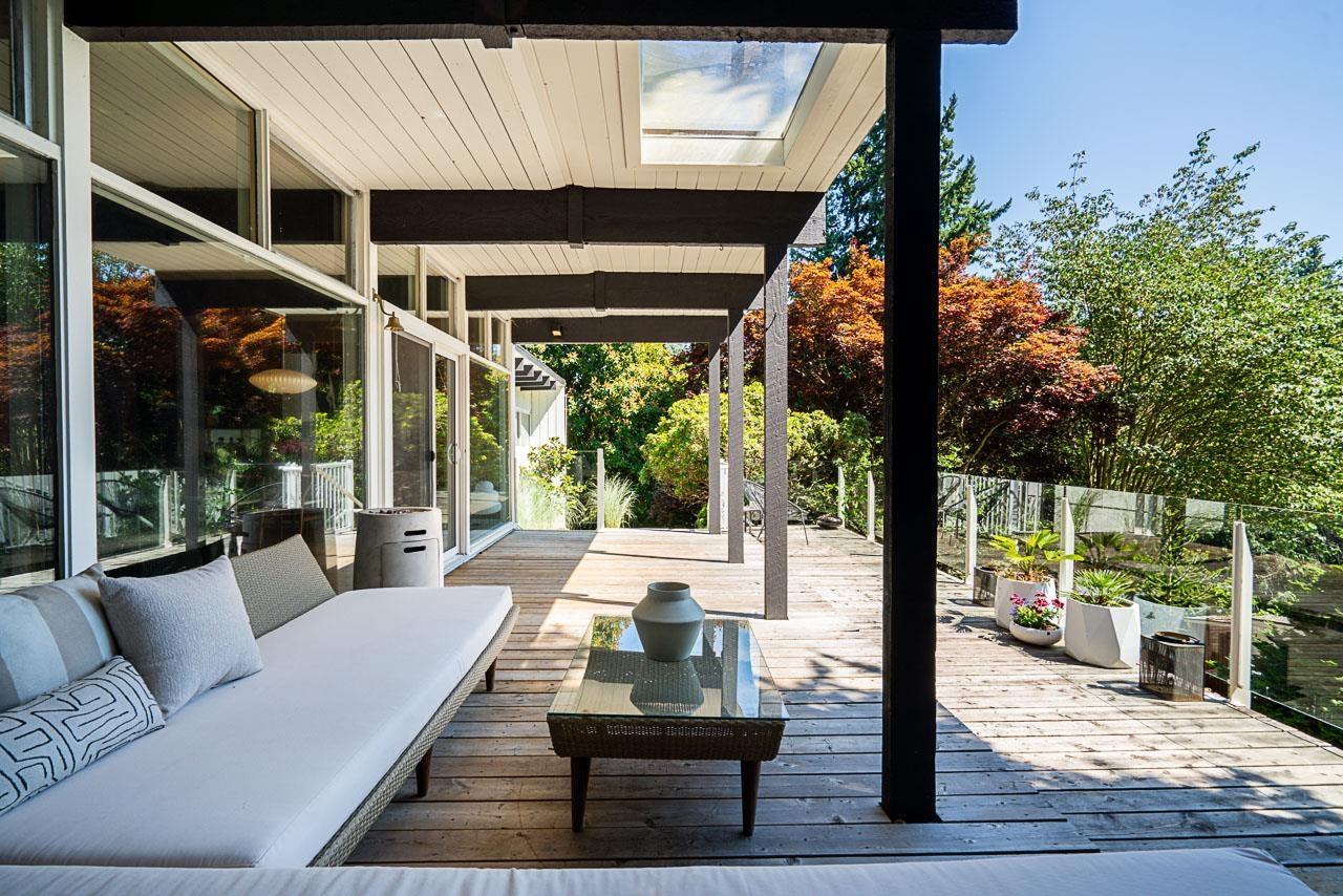 Step into a rare opportunity to own a true architectural treasure. This 3-bed, 2-bath home isn't just a place to live-it's a mid-century modern masterpiece, thoughtfully preserved and beautifully integrated into its natural surroundings. Set on a serene half-acre on the quiet side of PanoramaRidge, it's tucked high into the tree line, offering privacy, tranquility, and views of Boundary Bay and Crescent Beach. The home's connection to the outdoors is undeniable-lush, updated landscaping surrounds the property, enhancing the flow between inside and out. The detached garage is perfect for a home studio or office. Included in the sale are architectural plans for a stunning renovation, giving you the chance to build upon the original vision while making it your own. (id:52823)