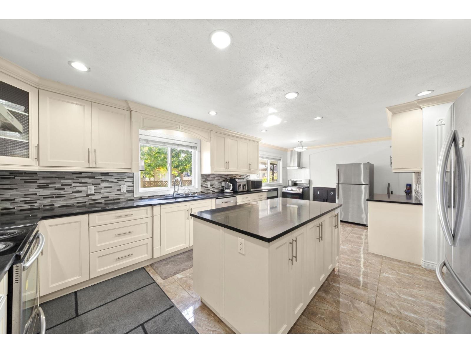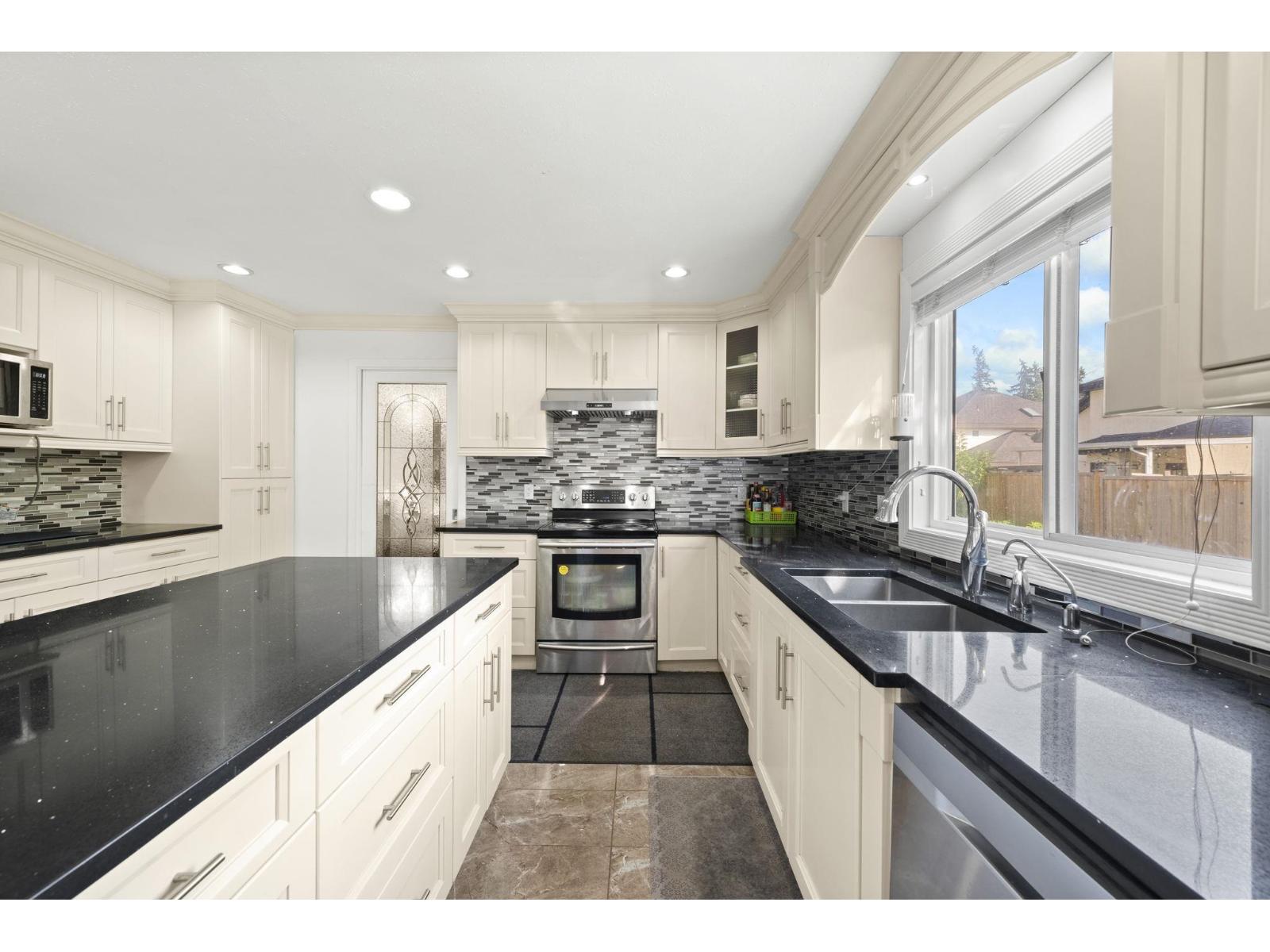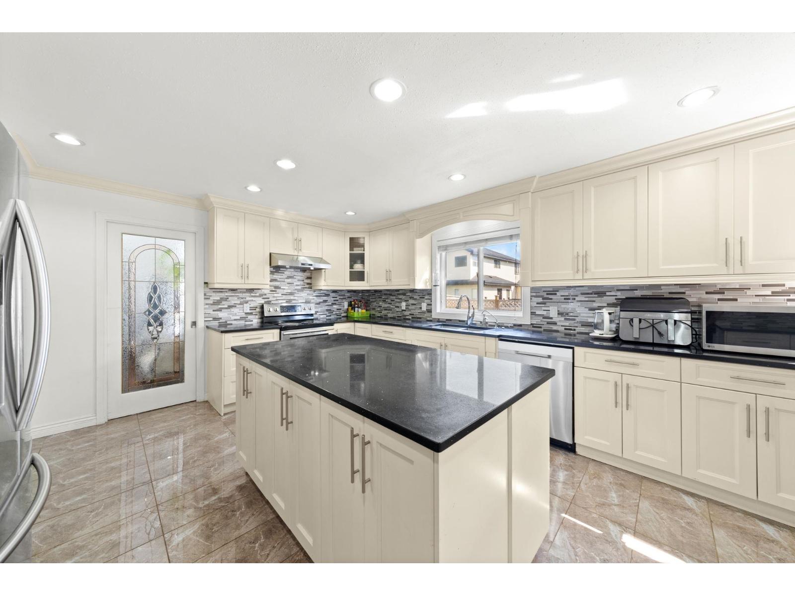 RARELY FOUND HOUSE IN PANORAMA. Stunning 6-Bedroom & 4 full bathroom Residence located on a tranquil street in one of the area's most desirable neighbourhoods. Bright open layout with oversized windows bringing in natural light. Main floor features a welcoming foyer, vaulted ceiling living room with gas fireplace, elegant dining area, chef's kitchen with stainless steel appliances, plus a bedroom. Upstairs offers 5 spacious bedrooms. Master bedroom has decent size of walk-in closet and steam room. Recent updates include kitchen, baths, flooring, paint, roof & more. Additional rental suite for mortgage helper. Enjoy a fully fenced backyard with covered patio, perfect for entertaining Double car garage with lots of extra parking. Quiet location with easy access to Richmond and Vancouver. (id:52823)