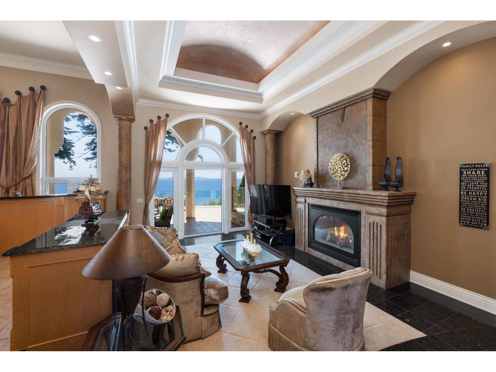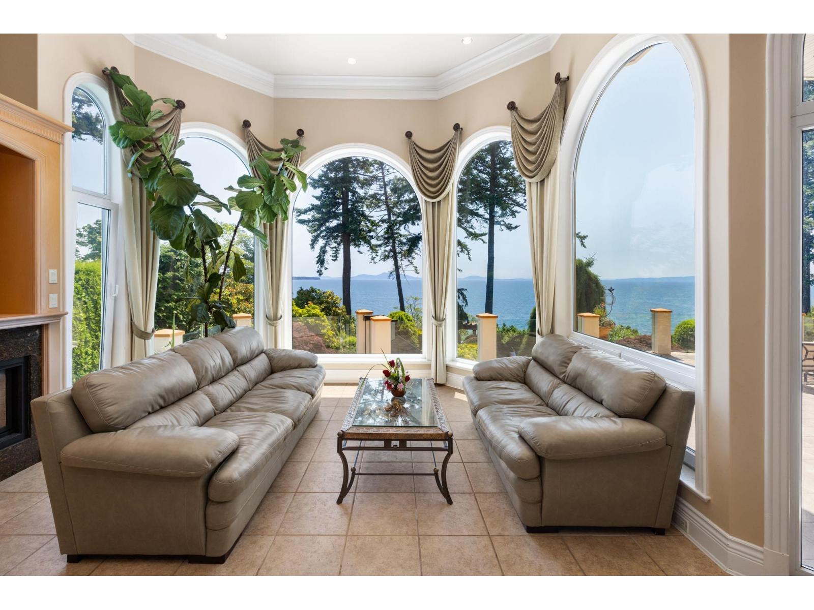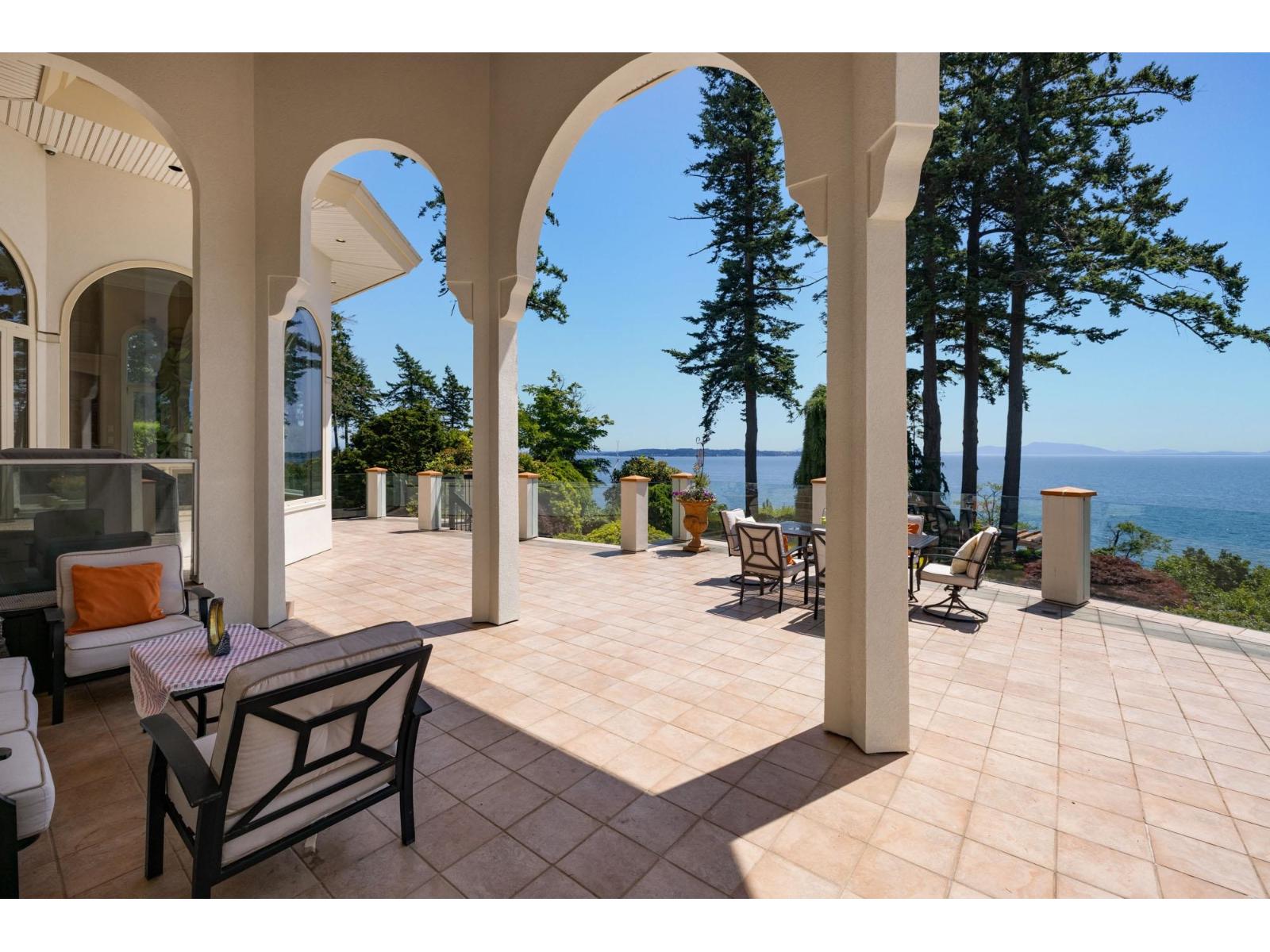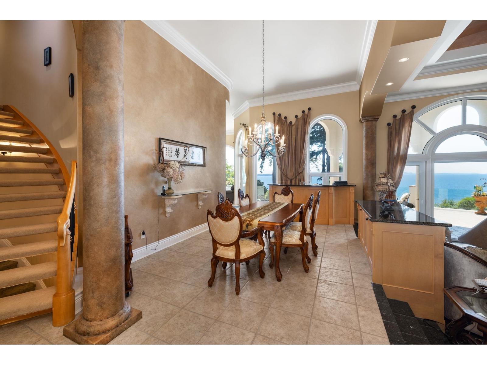 Spectacular Mediterranean inspired WATERFRONT Estate, situated in one of South Surrey & White Rock's most prestigious locations. Boasting grandeur and luxury with Panoramic Ocean and Gulf Island Views from principal living spaces. 7,000sqft of living space with expansive patios for indoor & outdoor living. Soaring ceilings and walls of beautifully curved windows and doors encapsulate the mesmerizing views. Grand foyer leads to the formal living and dining rooms with an adjacent eat-in Kitchen. Primary suite on its own wing on the main level. Walk-out basement built for entertaining. Unique features of this home include a four car garage and fully enclosed RV or boat parking. Meticulously landscaped and useable 27,000sqft bluff-front property with captivating vistas from every angle! (id:52823)