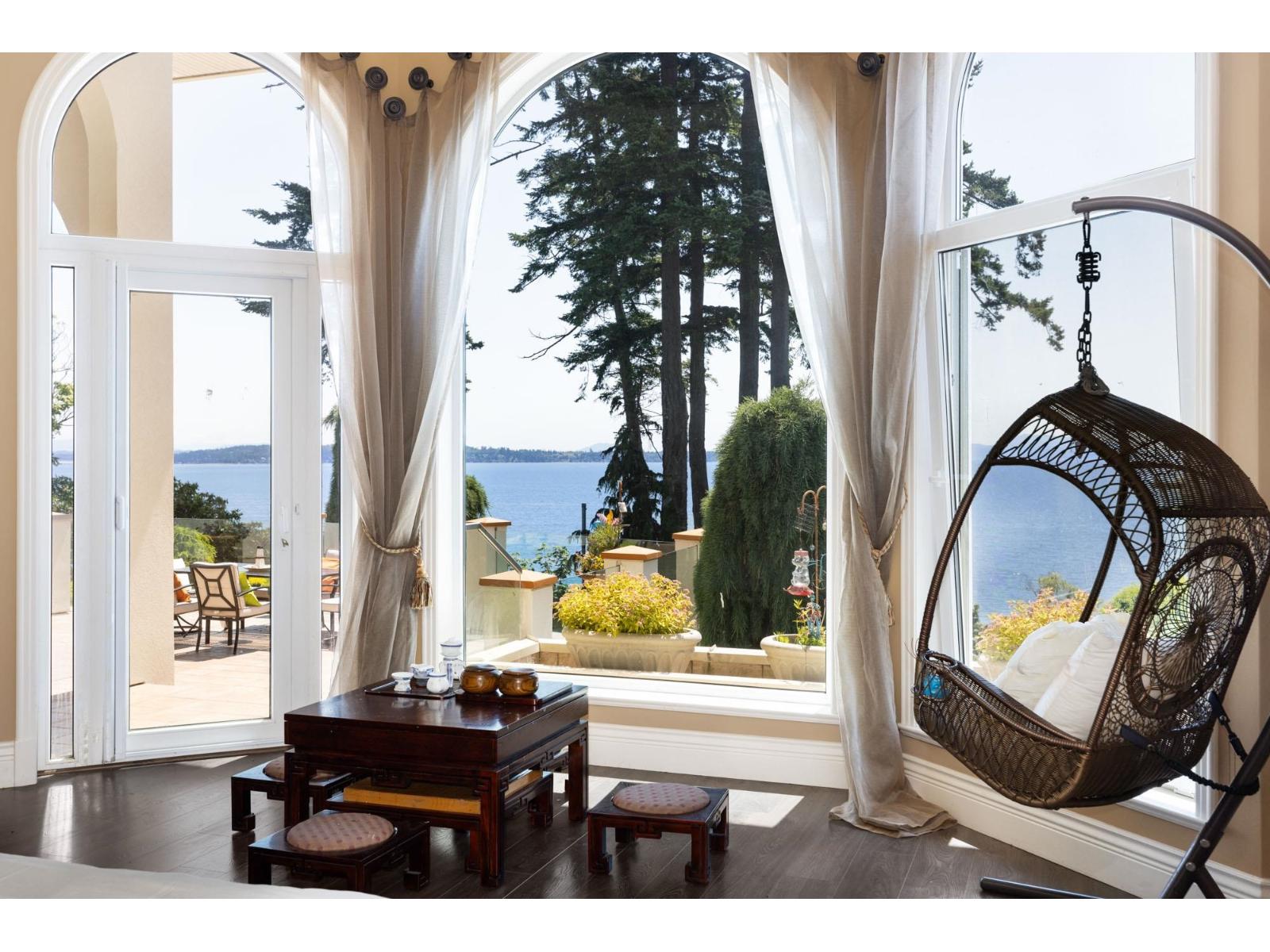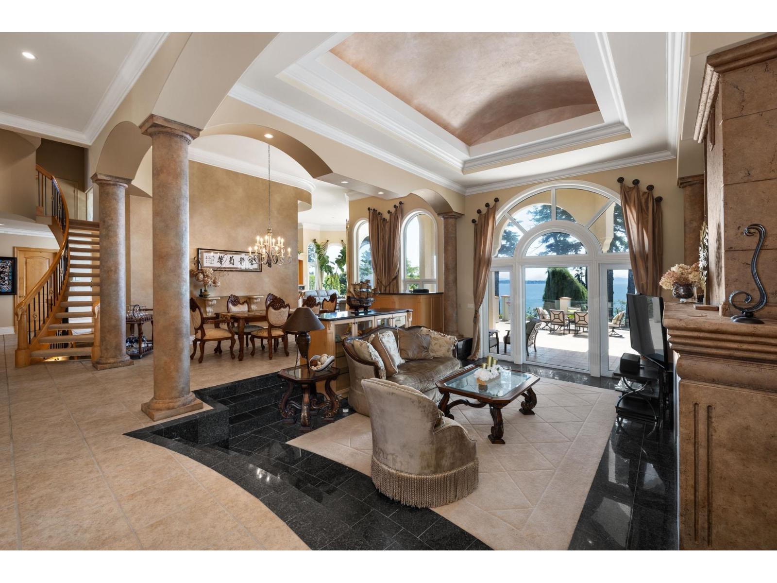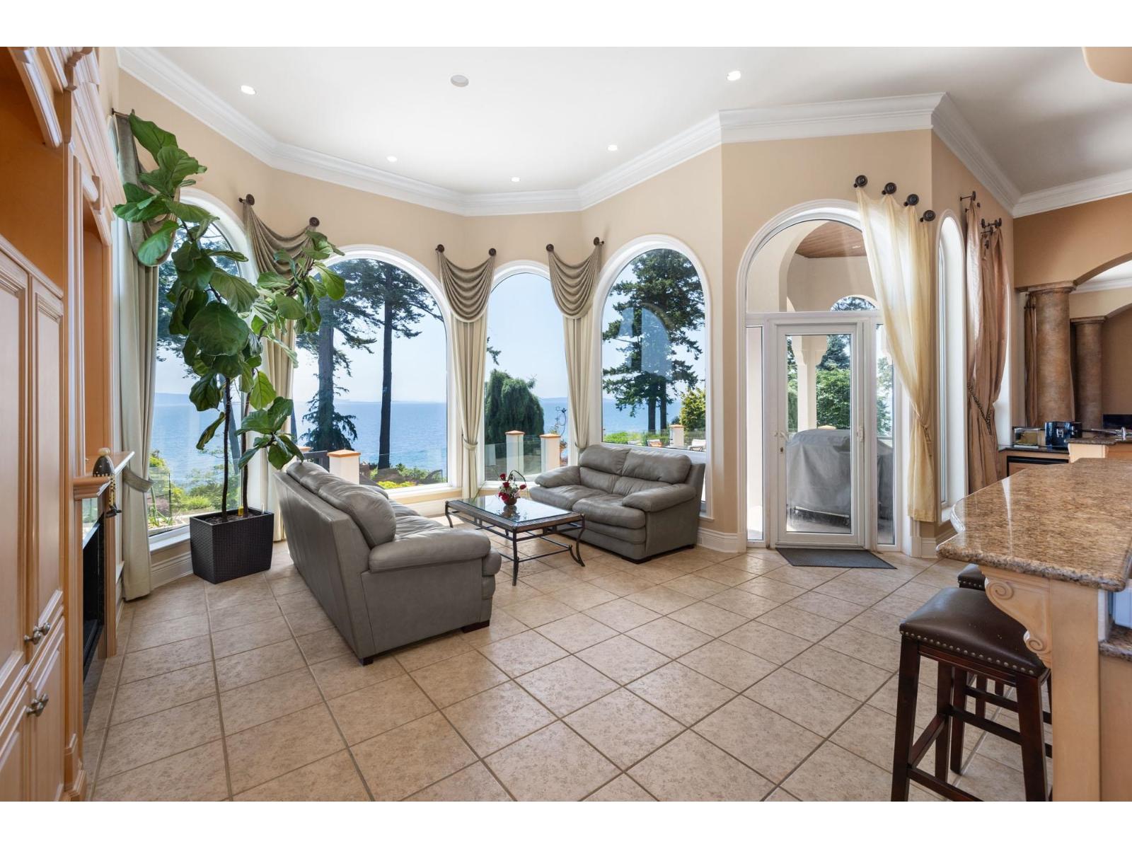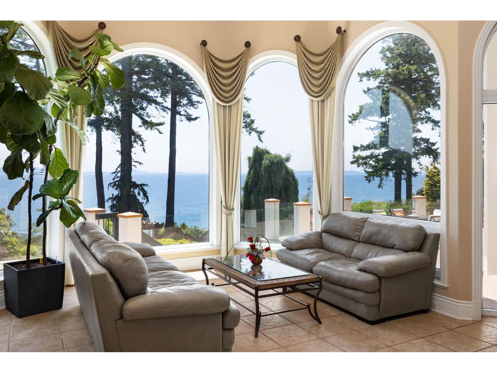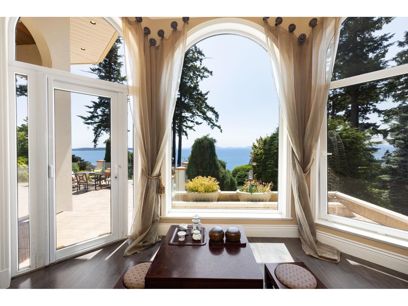 Spectacular Mediterranean inspired WATERFRONT Estate, situated in one of South Surrey & White Rock's most prestigious locations. Boasting grandeur and luxury with Panoramic Ocean and Gulf Island Views from principal living spaces. 7,000sqft of living space with expansive patios for indoor & outdoor living. Soaring ceilings and walls of beautifully curved windows and doors encapsulate the mesmerizing views. Grand foyer leads to the formal living and dining rooms with an adjacent eat-in Kitchen. Primary suite on its own wing on the main level. Walk-out basement built for entertaining. Unique features of this home include a four car garage and fully enclosed RV or boat parking. Meticulously landscaped and useable 27,000sqft bluff-front property with captivating vistas from every angle! (id:52823)