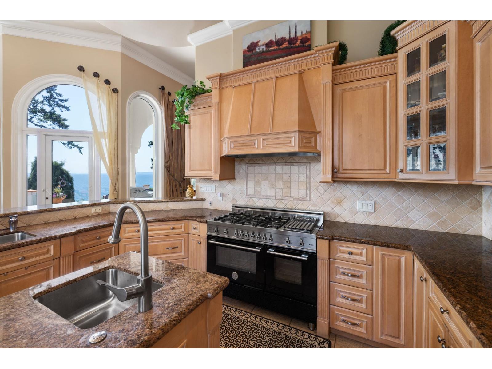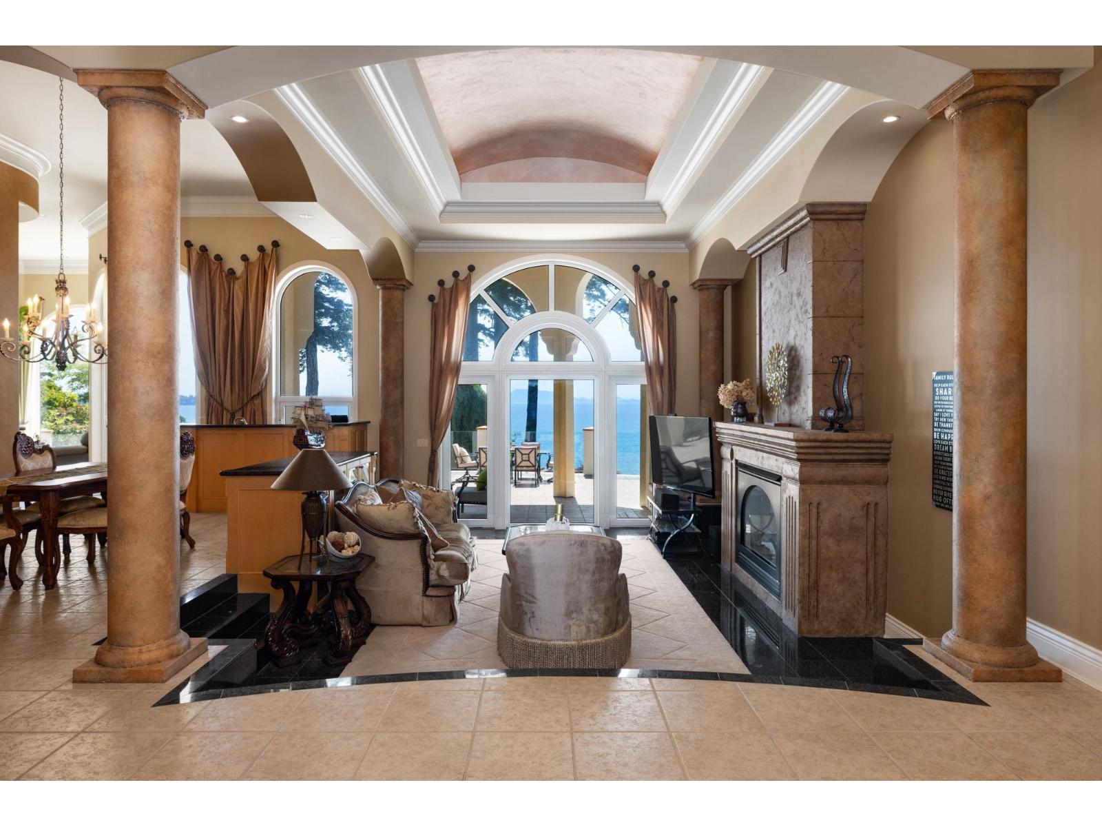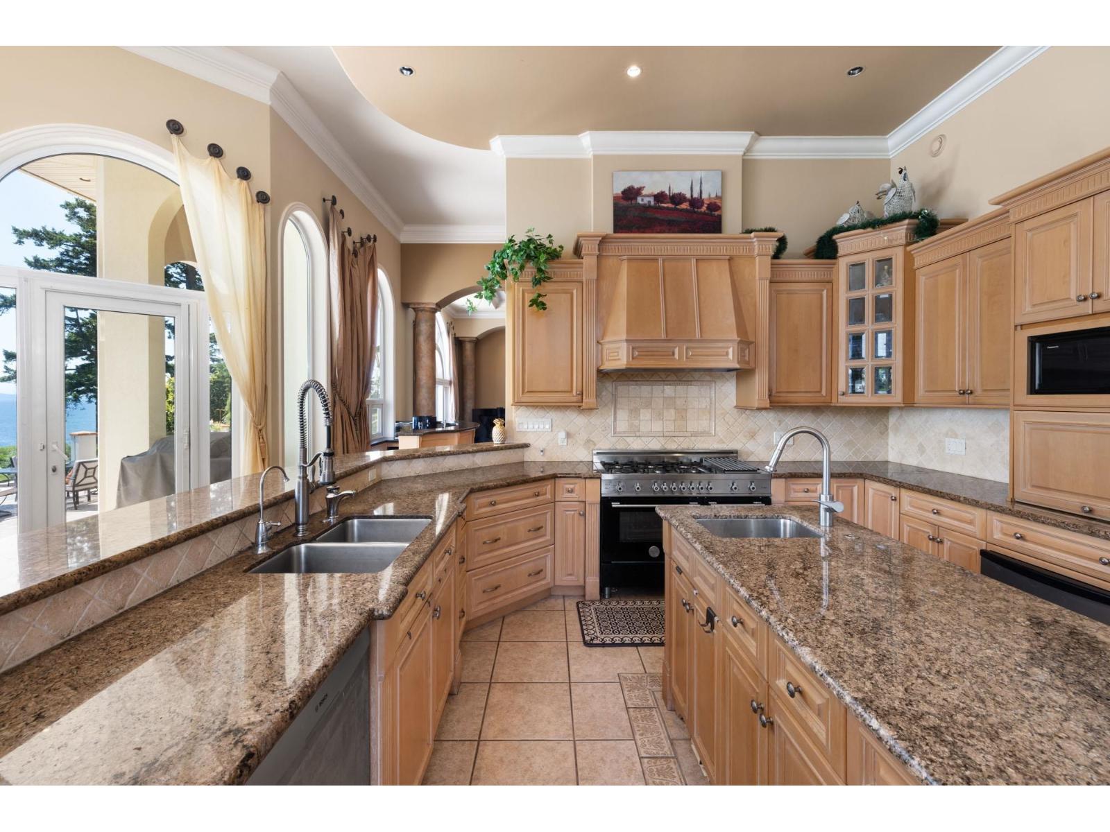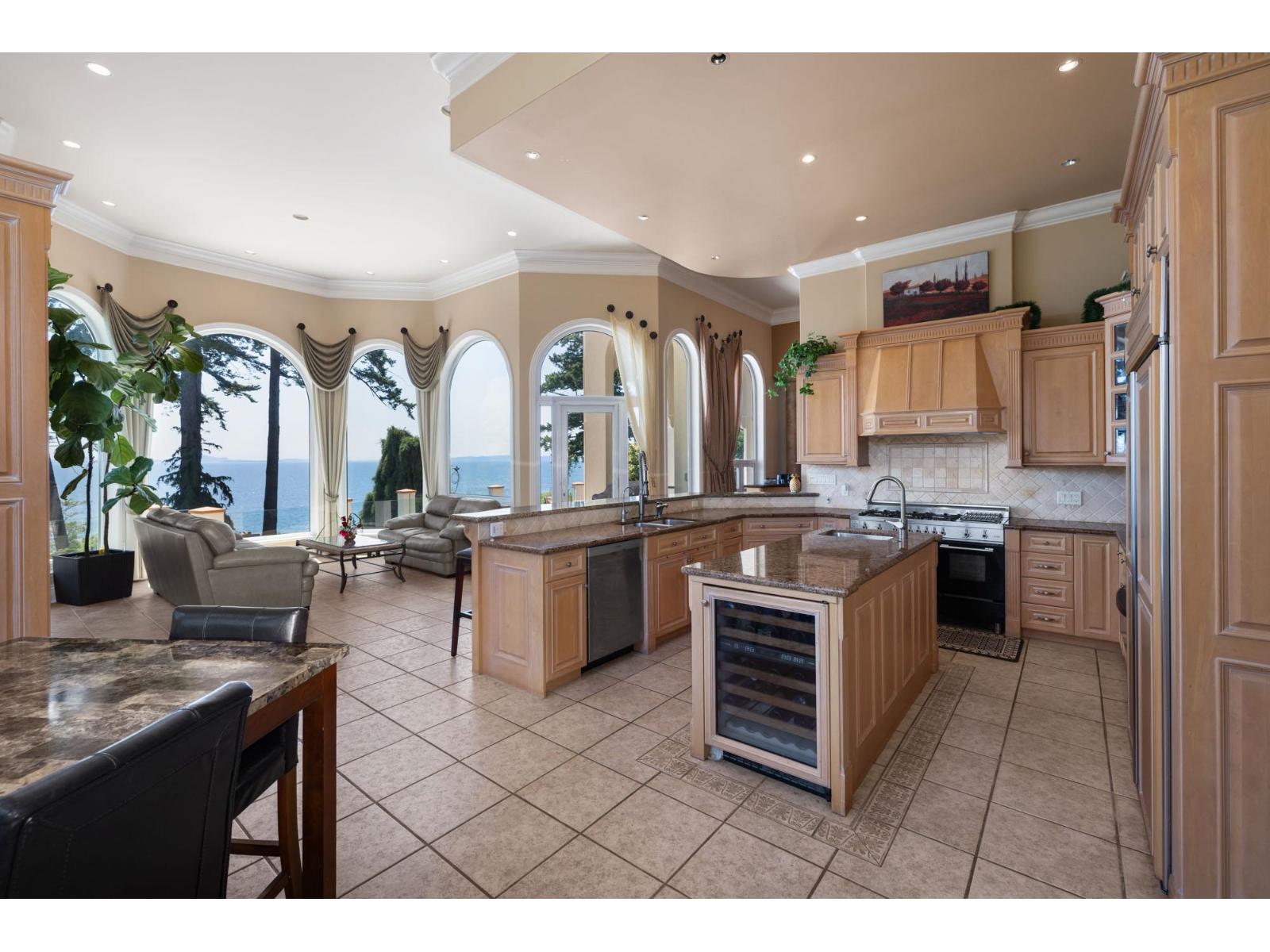 Spectacular Mediterranean inspired WATERFRONT Estate, situated in one of South Surrey & White Rock's most prestigious locations. Boasting grandeur and luxury with Panoramic Ocean and Gulf Island Views from principal living spaces. 7,000sqft of living space with expansive patios for indoor & outdoor living. Soaring ceilings and walls of beautifully curved windows and doors encapsulate the mesmerizing views. Grand foyer leads to the formal living and dining rooms with an adjacent eat-in Kitchen. Primary suite on its own wing on the main level. Walk-out basement built for entertaining. Unique features of this home include a four car garage and fully enclosed RV or boat parking. Meticulously landscaped and useable 27,000sqft bluff-front property with captivating vistas from every angle! (id:52823)