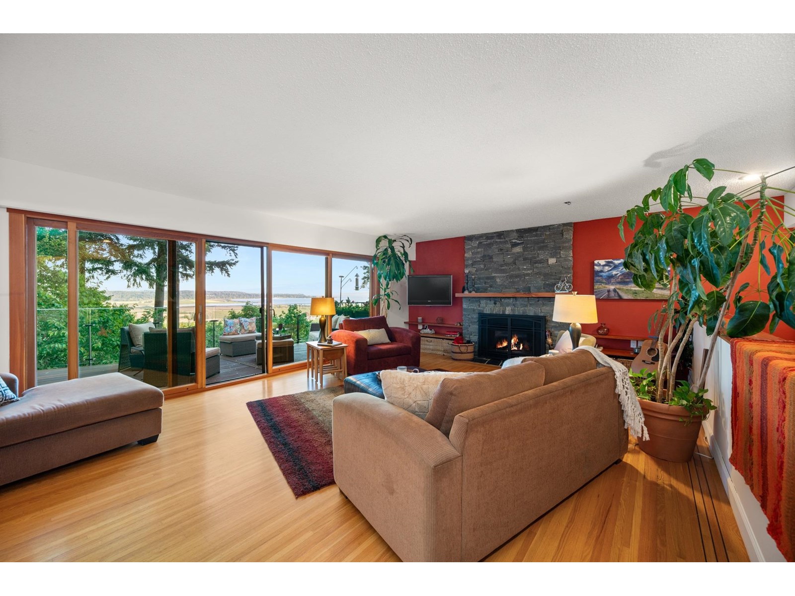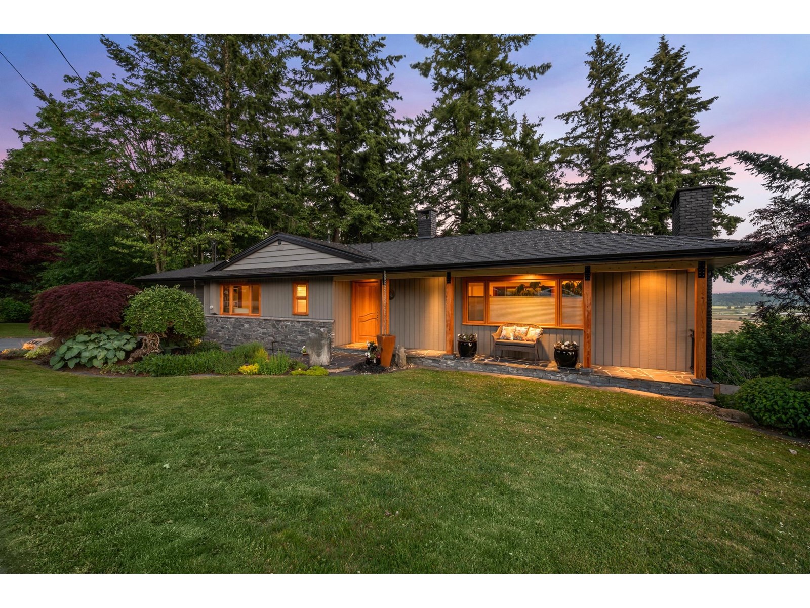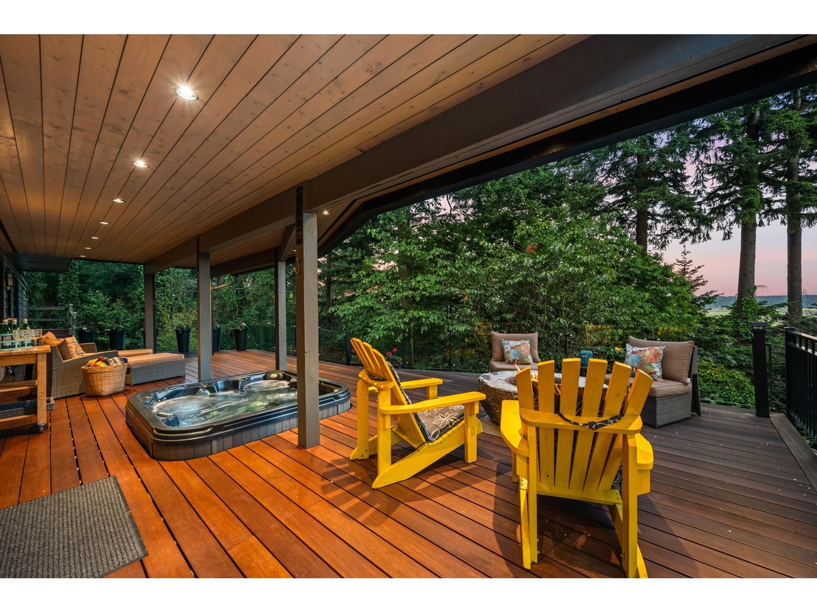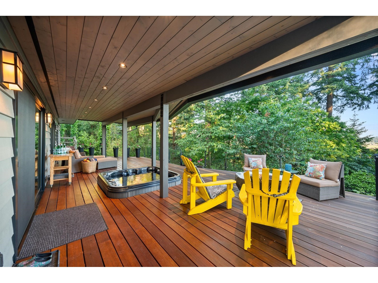 PANORAMA RIDGE OASIS! Discover this exclusive, 3-bdrm sanctuary perfect for executives or retirees. Enjoy unparalleled privacy with panoramic ocean & farmland views. Designed so all principal rooms are oriented to the view. Two tiers of spacious decks feature a firepit & hot tub, ideal for unwinding with a glass of wine as you watch stunning sunsets & nature all around you. Renovated with natural elements like fir, stone, and slate, the home offers a seamless indoor-outdoor flow. The primary suite boasts a spa-inspired ensuite & a spacious walk-in dressing room. Boasting artistic landscaping with rain chains leading into planter pots, thoughtfully designed pathways, & multiple decks that maximize the use of space. High-end appliances including Thermadore 6 burner cooktop, low-maintenance yard & easy access to commuter routes, this secluded haven is the perfect blend of luxury & convenience. Experience a perpetual holiday retreat every day! (id:52823)