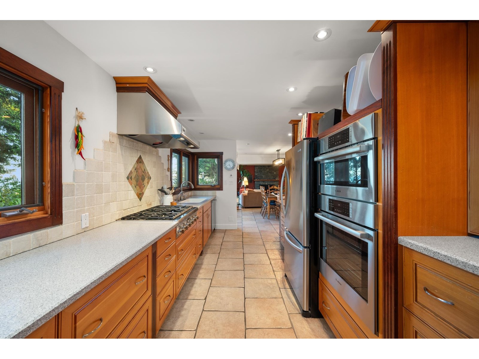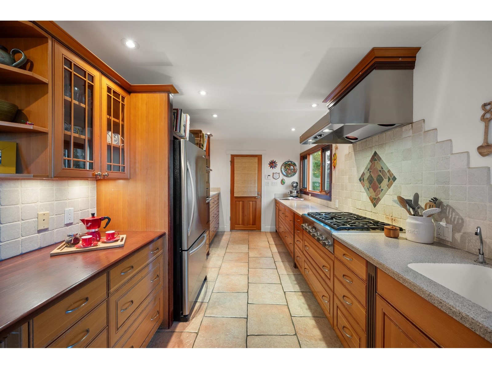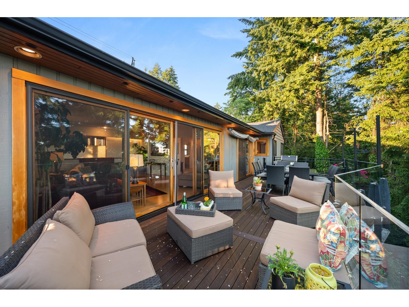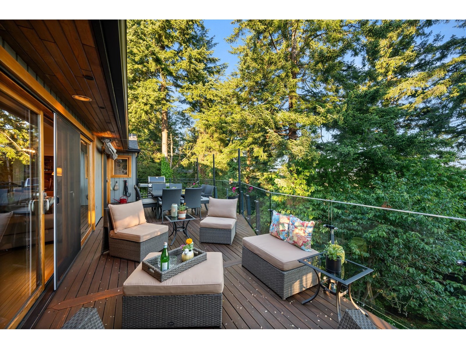 PANORAMA RIDGE OASIS! Discover this exclusive, 3-bdrm sanctuary perfect for executives or retirees. Enjoy unparalleled privacy with panoramic ocean & farmland views. Designed so all principal rooms are oriented to the view. Two tiers of spacious decks feature a firepit & hot tub, ideal for unwinding with a glass of wine as you watch stunning sunsets & nature all around you. Renovated with natural elements like fir, stone, and slate, the home offers a seamless indoor-outdoor flow. The primary suite boasts a spa-inspired ensuite & a spacious walk-in dressing room. Boasting artistic landscaping with rain chains leading into planter pots, thoughtfully designed pathways, & multiple decks that maximize the use of space. High-end appliances including Thermadore 6 burner cooktop, low-maintenance yard & easy access to commuter routes, this secluded haven is the perfect blend of luxury & convenience. Experience a perpetual holiday retreat every day! (id:52823)