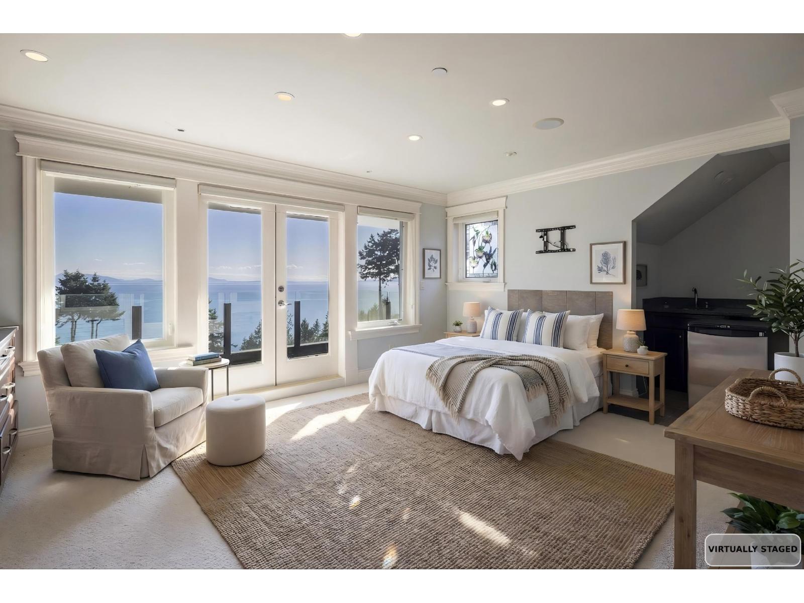 This one-of-a-kind waterfront French-style estate defines ultra-luxury coastal living, showcasing unobstructed panoramic ocean views-a breathtaking backdrop that feels like a private resort.Set on a 27,878 SF lot,this 6,800+ SF custom masterpiece offers grand scale,refined elegance, and exceptional craftsmanship.A rare private trail,seamless indoor-outdoor living,and a built-in elevator elevate everyday comfort.The main level features vaulted ceilings,wide-plank fir floors, and a stunning oceanfront gourmet kitchen with Sub-Zero, Wolf&Miele appliances.Upstairs offers 4 luxurious ensuites, including two spectacular primary retreats with incredible ocean views.Walk-out basement with suite,media room,wine cellar.Heated driveway,generator&triple garage.Don't miss this extraordinary dream home! (id:52823)