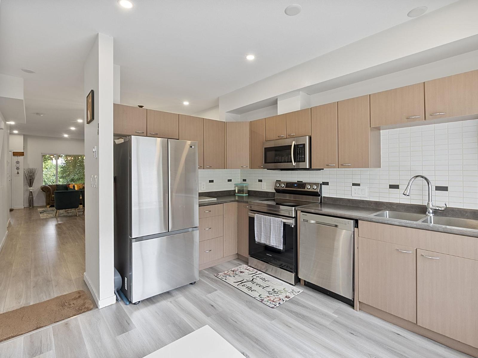 $424.90 MonthlyWelcome to Encore at Hillcrest! This updated 3 bed, 2 bath townhome offers a spacious layout with living room, dining area, eating area that doubles as a second sitting space, plus a rec room. Features include new flooring, new washer/dryer, 2 entrances, and a private patio. Steps to Save-On-Foods, restaurants, banks, and just 1 block from the upcoming SkyTrain station. Walking distance to Hillcrest Elementary. Enjoy fantastic amenities including a clubhouse with party room, movie theater, and guest suite. A perfect blend of comfort, convenience, and lifestyle in Cloverdale! 2 Pets allowed (no size or breed restrictions) (id:52823)