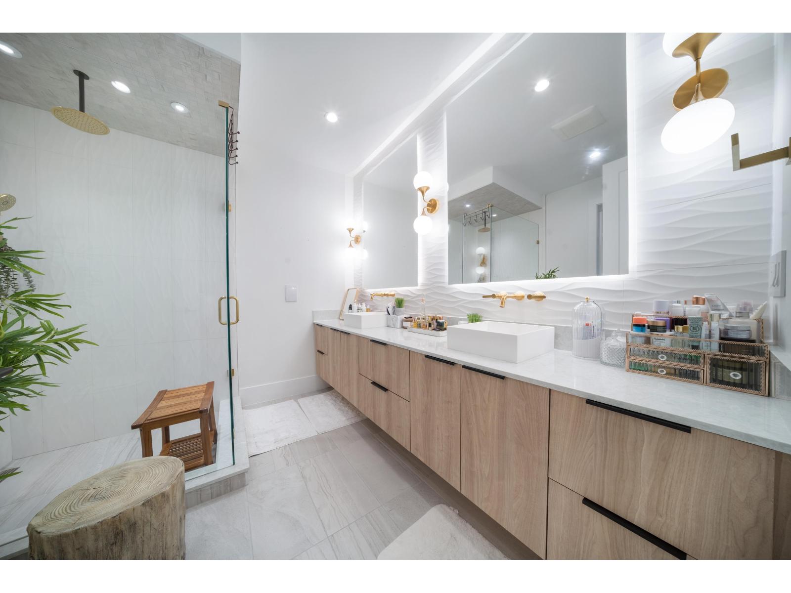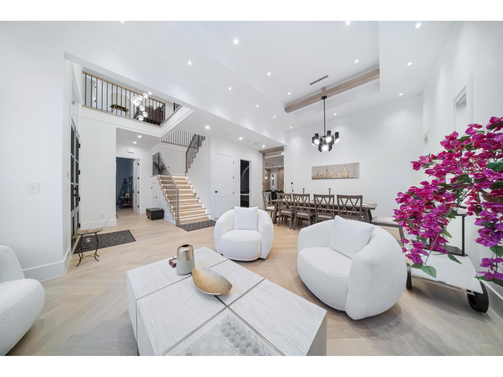 Luxury like-new 4,098 sqft home on an 8,438 sqft south-facing lot in sought-after Sunnyside Park. This 6 bed, 6.5 bath residence offers a bright, open layout with soaring ceilings, elegant living/dining, a modern kitchen + wok kitchen, and seamless indoor-outdoor flow-perfect for entertaining. The main floor includes an office/guest room with ensuite. Upstairs features 4 spacious bedrooms, each with a private ensuite + heated floors, plus an open den and laundry room. Other features incl. hardwood flooring throughout, oversized windows, A/C, hot water on demand, Culligan water filtration, fully fenced yard, gated entry, double garage and extra parking, and a legal above-ground suite for a mortgage helper. Located only steps away from transit, parks, schools and beaches. Call today! (id:52823)