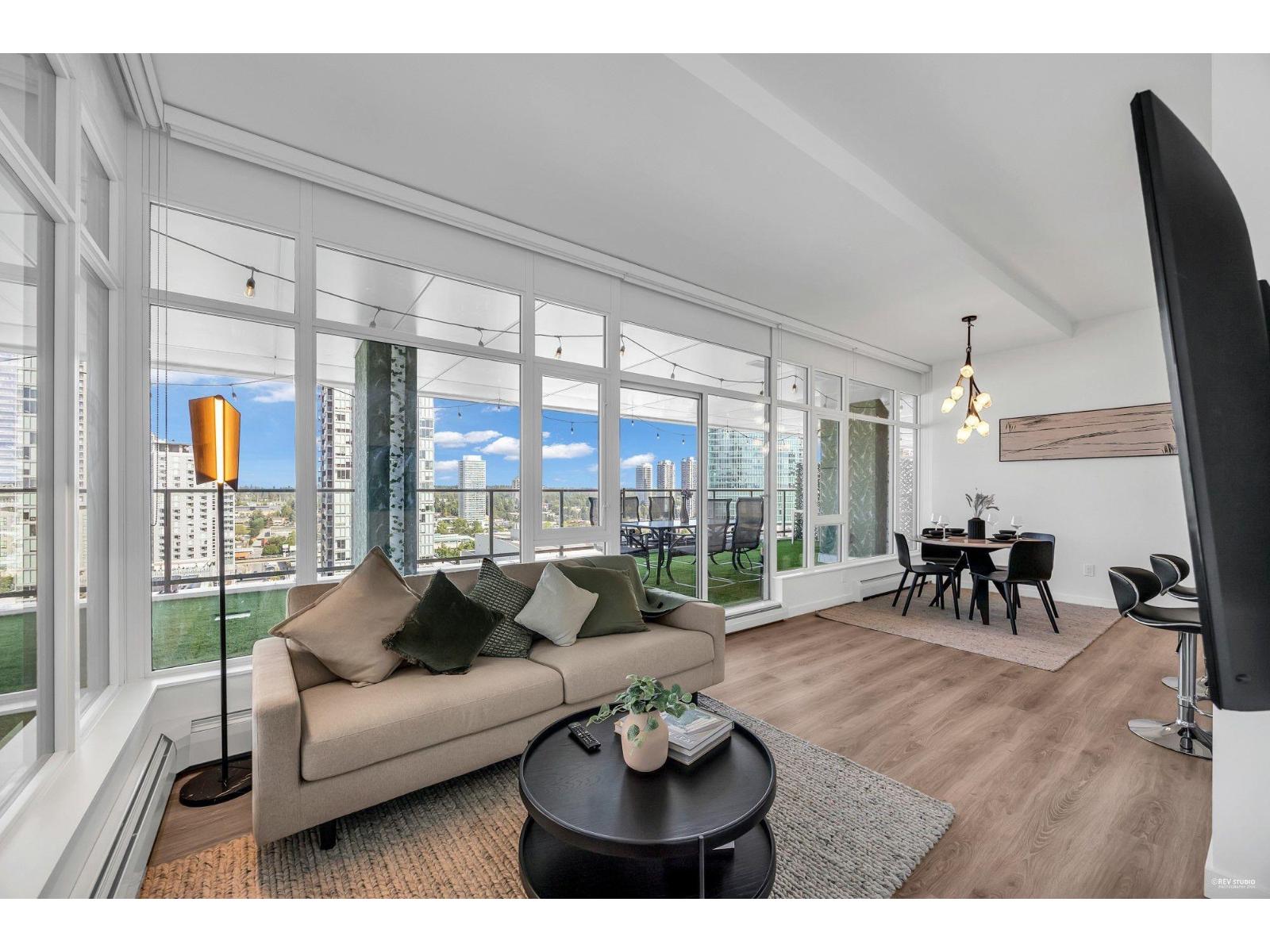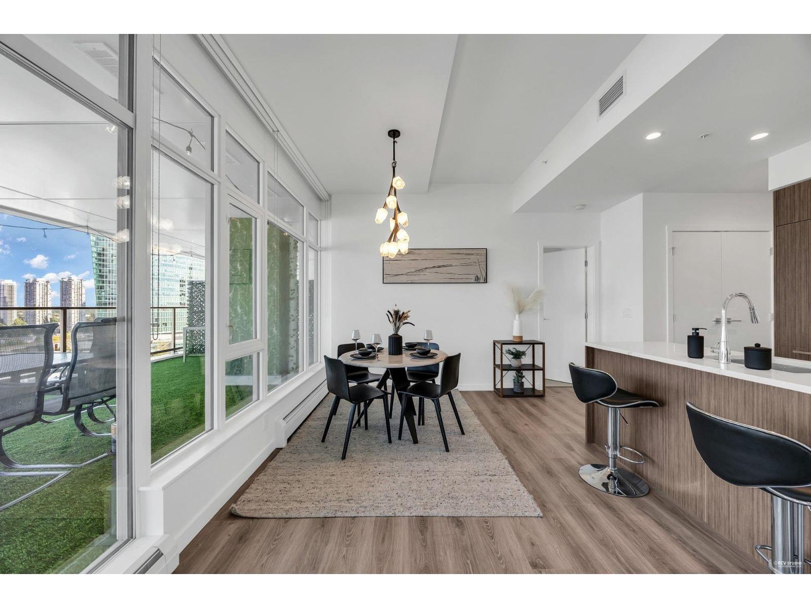 $580.74 MonthlyPresenting one of the most exceptional 2-bedroom, 2-bath residences in the heart of Downtown Surrey. This luxurious home offers soaring 12-ft ceilings and an expansive 1,200+ sq ft covered patio with premium artificial turf-perfect for year-round outdoor living. Positioned on the northeast corner, enjoy breathtaking panoramic views of the city skyline and Mount Baker. Truly one of a kind, with no comparison. Located in vibrant Surrey Central, residents enjoy access to the "One Club" on the 44th floor featuring 360° views, a full fitness centre, business lounge, party room, and dog run. Includes one parking stall and two oversized lockers. Book your private viewing today. (id:52823)