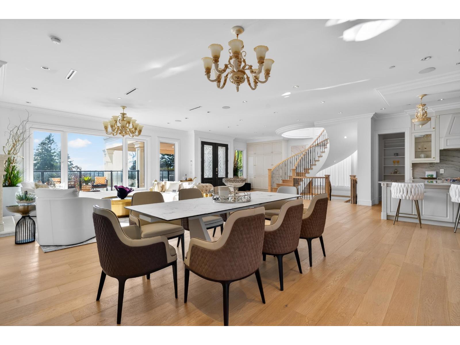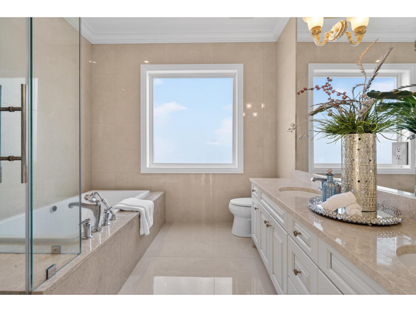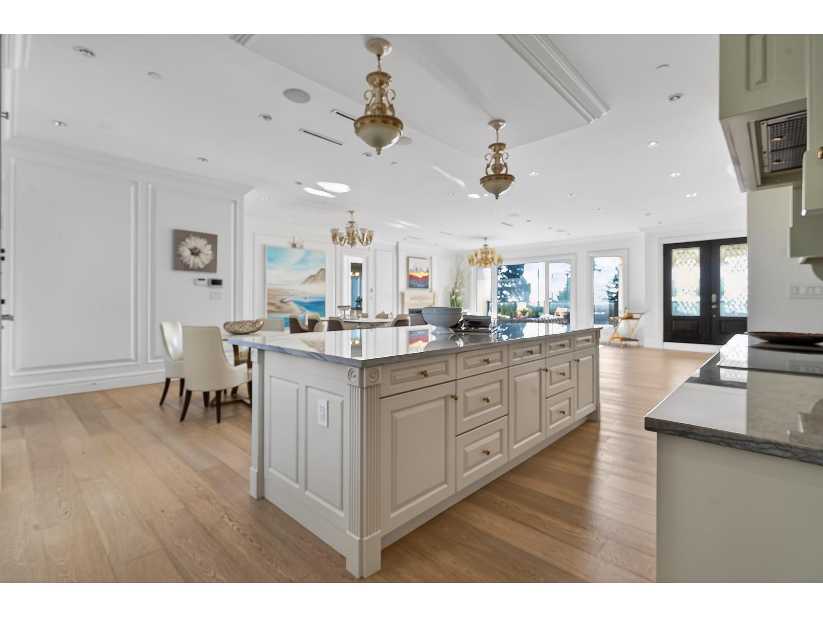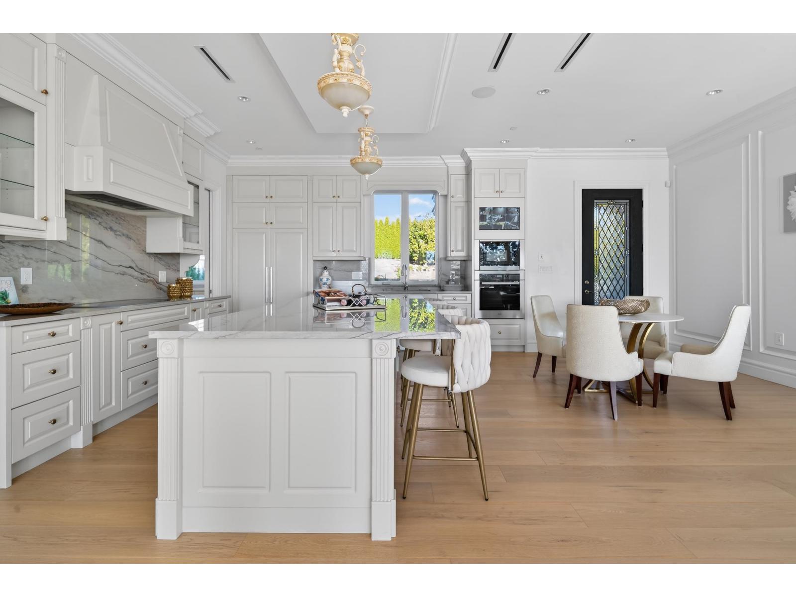 Exceptional custom-built 3-level ocean-view home in one of White Rock's most prestigious enclaves. Offering 7,000 sqft of refined living with ocean views from principal rooms on two levels. Main floor features open living and dining areas, gourmet chef's kitchen with premium appliances, separate wok kitchen, private office, and a main-floor primary/second master with patio access. Upper level offers three ensuited bdrm, including a primary suite with sitting area, two walk-in closets, and spa-inspired ensuite. Lower level includes a rec/media room, wet bar, gym, & guest bdrm. Expansive sun decks on main and upper levels total approx. 1,600 sqft (not included). Fully gated 13,939 sqft south-facing lot. Radiant heating, A/C, HRV, double garage, ample parking. Bayridge & Semiahmoo catchment. Open house Feb 14, 15 (Sat, Sun) 2 - 4 pm. (id:52823)