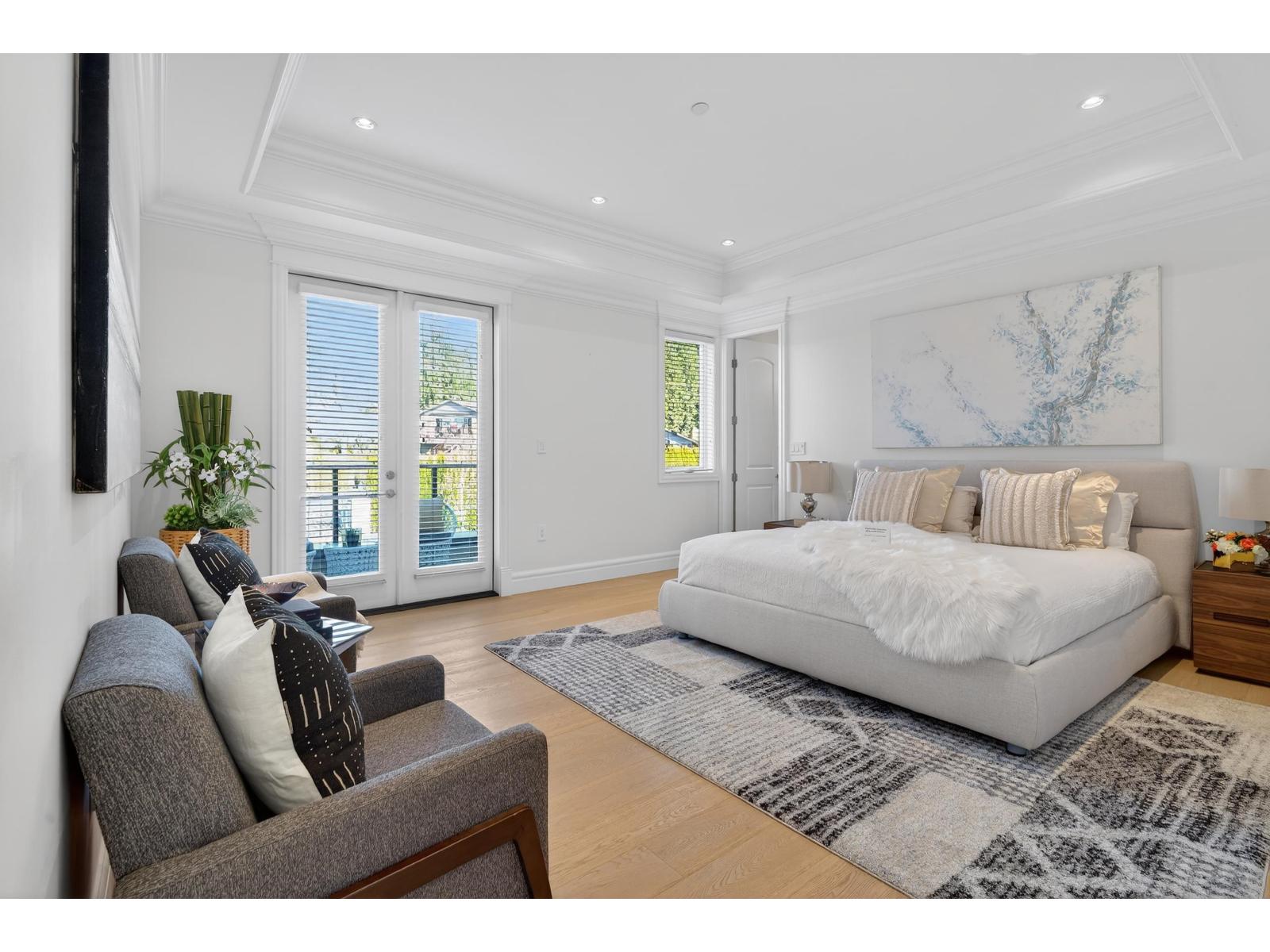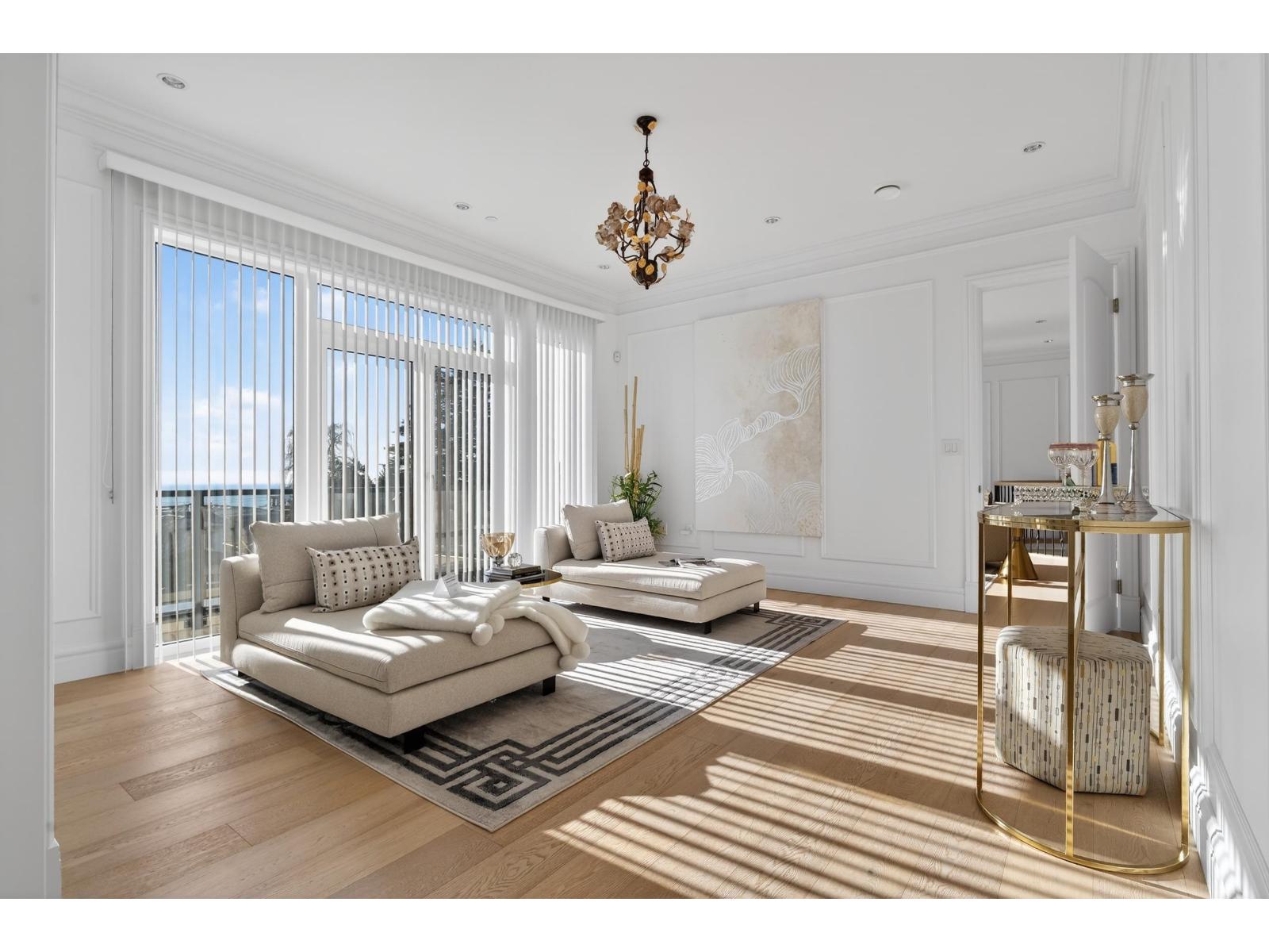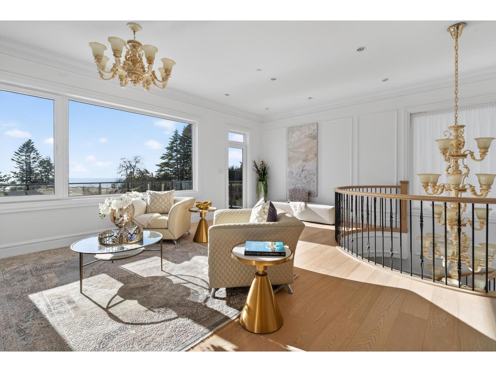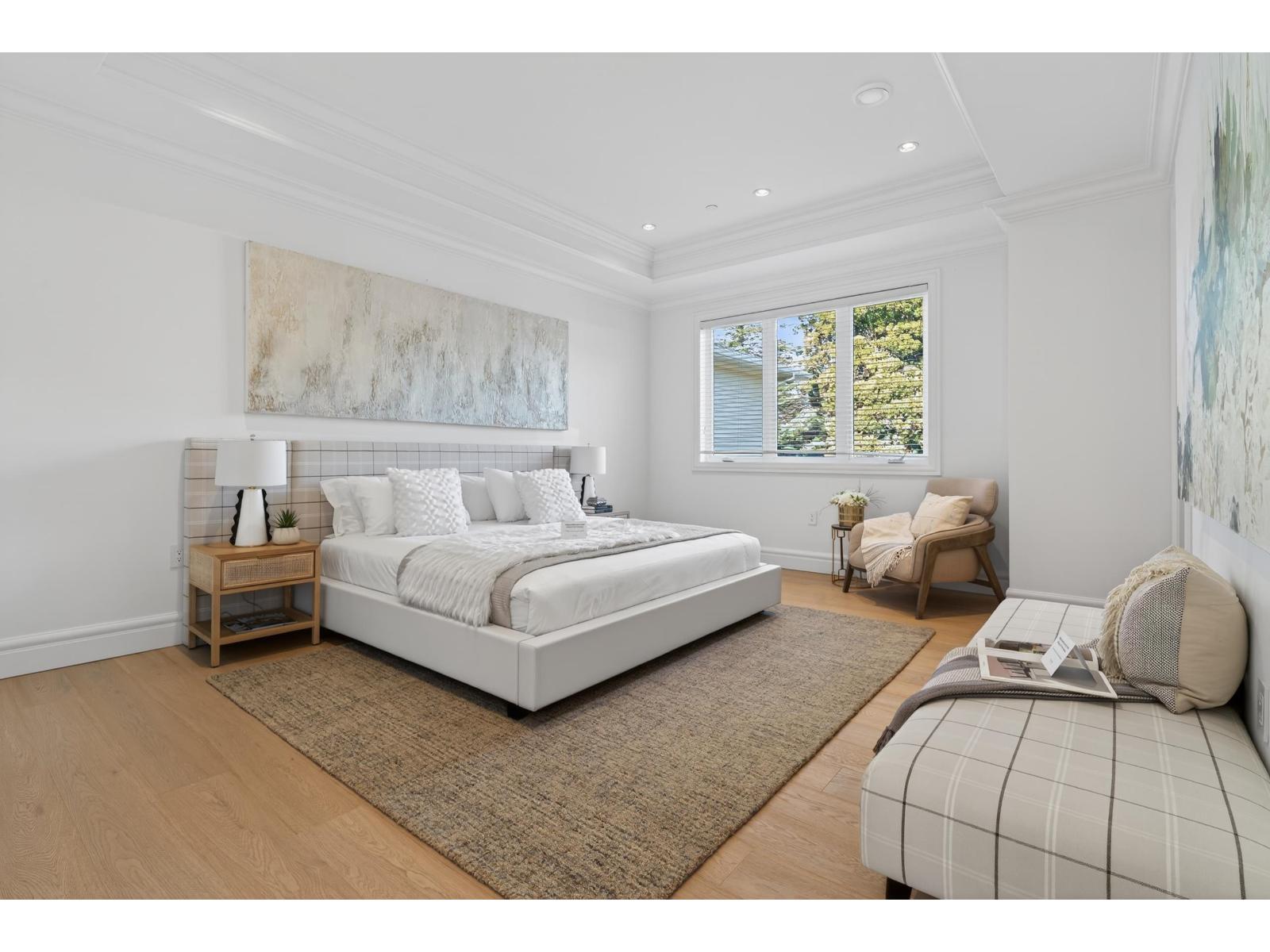 Exceptional custom-built 3-level ocean-view home in one of White Rock's most prestigious enclaves. Offering 7,000 sqft of refined living with ocean views from principal rooms on two levels. Main floor features open living and dining areas, gourmet chef's kitchen with premium appliances, separate wok kitchen, private office, and a main-floor primary/second master with patio access. Upper level offers three ensuited bdrm, including a primary suite with sitting area, two walk-in closets, and spa-inspired ensuite. Lower level includes a rec/media room, wet bar, gym, & guest bdrm. Expansive sun decks on main and upper levels total approx. 1,600 sqft (not included). Fully gated 13,939 sqft south-facing lot. Radiant heating, A/C, HRV, double garage, ample parking. Bayridge & Semiahmoo catchment. Open house Feb 14, 15 (Sat, Sun) 2 - 4 pm. (id:52823)