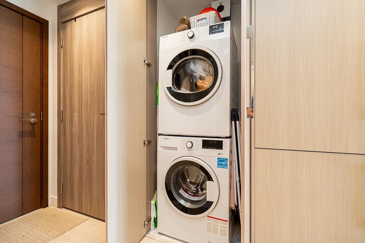 $370.40 MonthlyWelcome to Park Boulevard by Concord Pacific - this impeccably luxury built 1-bed and den high rise condo on the 14th floor features breathtaking valley and mountain views from your private 185 SQFT patio. This efficiently 544 SQFT laid out floor plan features: Air Conditioning, European-Blomberg appliances, soft close cabinets, quartz counter tops, gas stove, built-in microwave, built-in lighting in bathroom mirror, washer & dryer. Unparalleled amenities include free access to business & fitness centers, swimming pool, tepidarium, sauna, indoor badminton, gym, sports lounge, outdoor patio & garden lounge. Featuring concierge with security cameras in underground parking. 1 Parking. (id:52823)