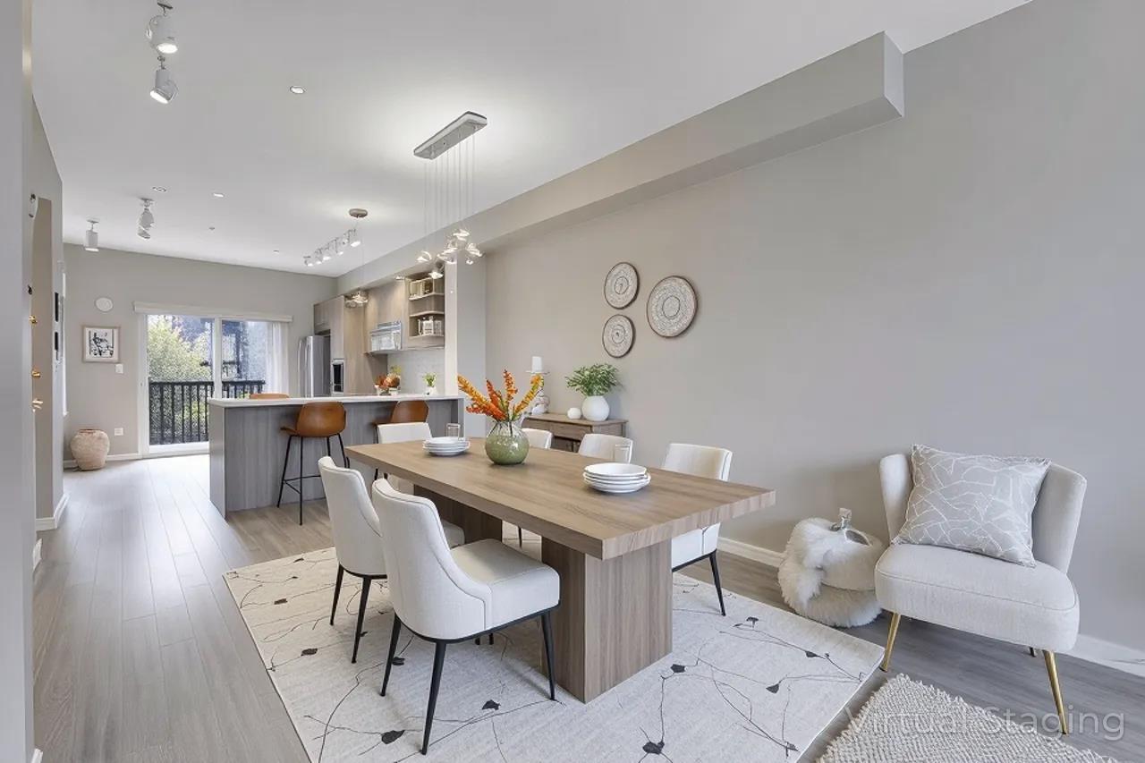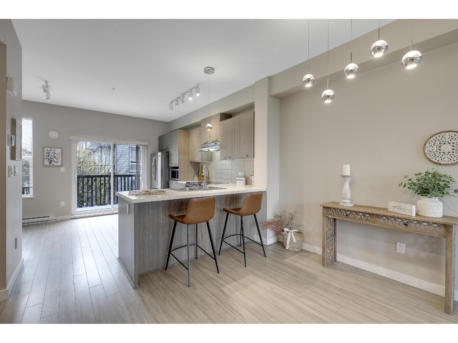 $323.41 MonthlyBeautifully updated townhouse in exclusive Red Maple Park. This stunning 2 bed/2 bath townhouse provides spacious and open layout in living room, dining area, kitchen and nook space which can be used as office space. 2 spacious bedrooms upstairs with 2 full baths. The open view from the deck off the kitchen offers a perfect place to relax. Lots of UPDATED features; Fridge,microwave (2021)/HWT (2024)/Freshly painted throughout, new laminate stairs and new faucet in the kitchen (2026)/updated dining room lighting. 3 parking (for small car on driveway) is a rare to find! Awesome amenities in the Maple Club, featuring outdoor pool, hot tub, exercise room, gym, movie room & amazing club house for your parties! A/C is possible with strata permit! (id:52823)