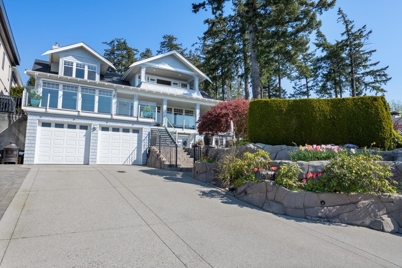 Ocean View Home Marine Drive West Side White Rock. Exquisite morning sunrises the view spans Blaine's Harbor across the Peninsula, Mount Baker, the pier, west to the islands & sunsets. Security gated property is 9,450 SF. Craftsman design home 4,965 SF. Main Flr Living Area: Massive kitchen w/ granite surfaces & eating area, walk-in pantry, formal LV & dining rm, office - ensuited. 3 nat/gas f/p, glass wall bar. Above: 3 bedrooms w/ ocean view balcony. Below: walk-out basement w/ 9' ceilings. Media room, games rm & storage & full bed/ bath. landscape w/ turf, water feature,1300 SF covered porch & Patios, glass railings & low voltage lighting. Backyard is fenced & landscaped w/ storage shed. Ample parking in driveway plus dbl garage. Schools: Semiahmoo & Bayridge. Walk to beach & transit.**OPEN HOUSE, SATURDAY AUG 09 & SUNDAY 10th AUG : 2-4 PM** (id:52823)