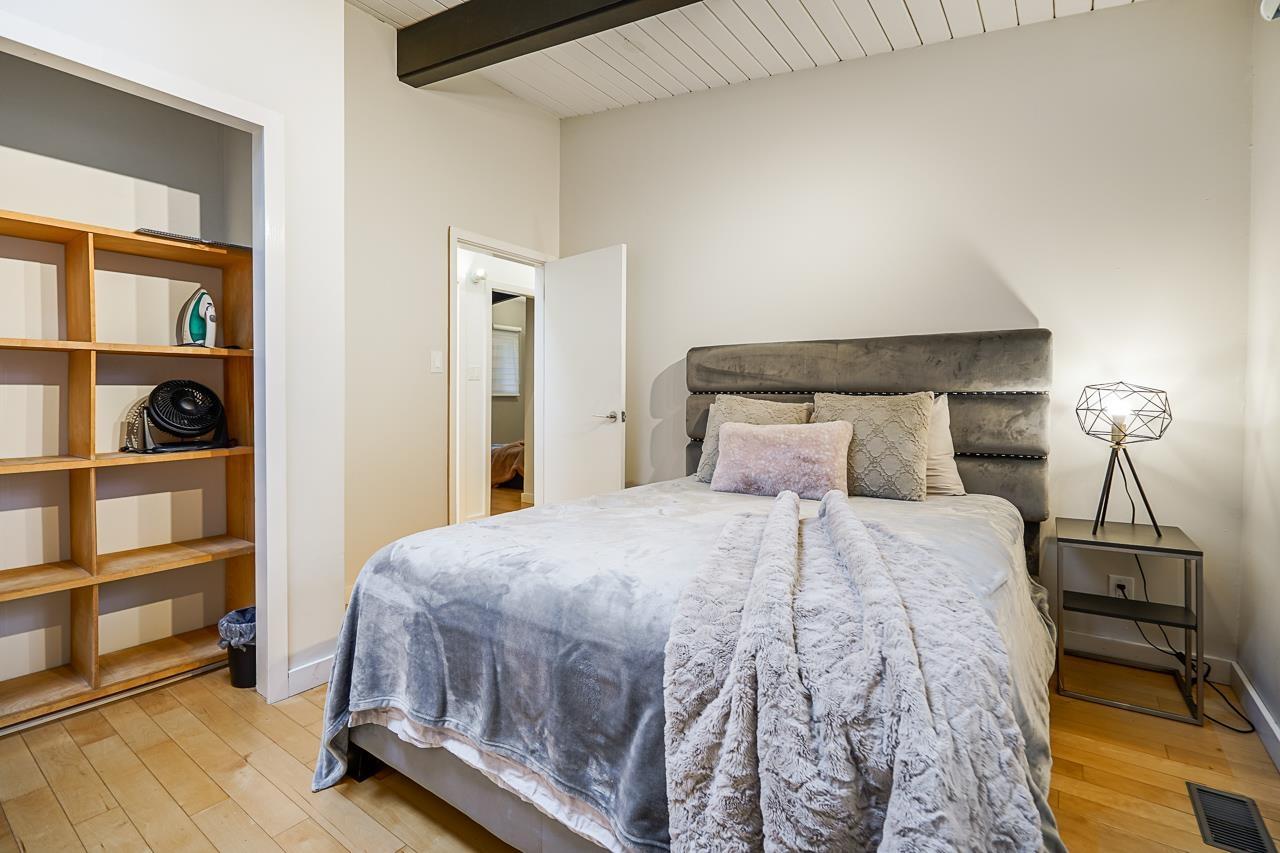 Cozy rancher on a large 10,000sqft Lot. Perfect for first time buyers/investors or build your dream home on this 60'x170' flat rectangular Lot located on a quiet street. No easements or right of ways. This charming 3 bed/1 bath home features timber beams thru-out, lovely wood floors, updated bathroom, tastefully painted, updated lighting and window blinds. Located in an outstanding family-friendly neighbourhood, with easy access to the Port Mann and Patullo bridges. Close to the schools, transit and shopping. BONUS: Large wired shop/shed in backyard. (id:52823)
