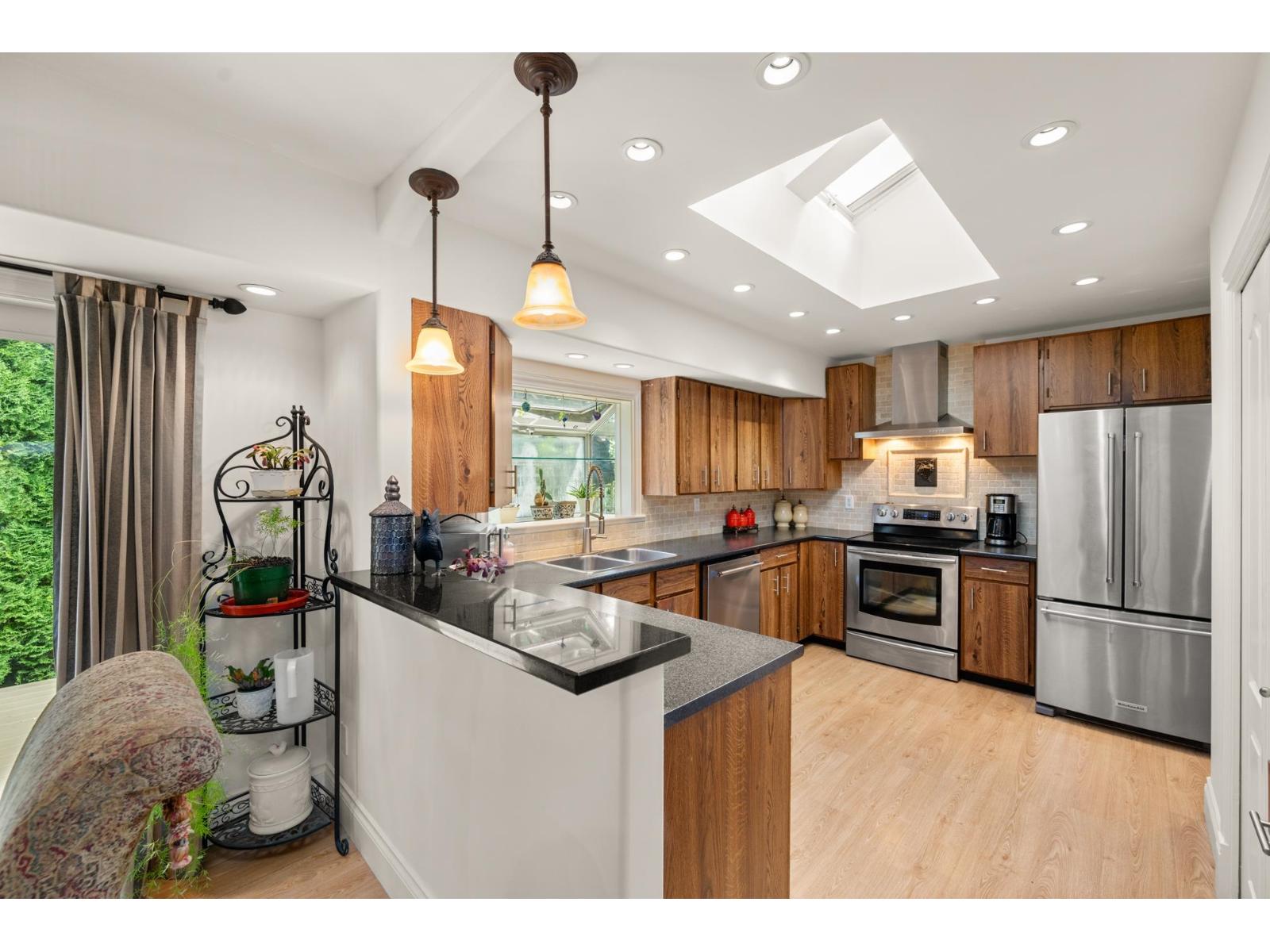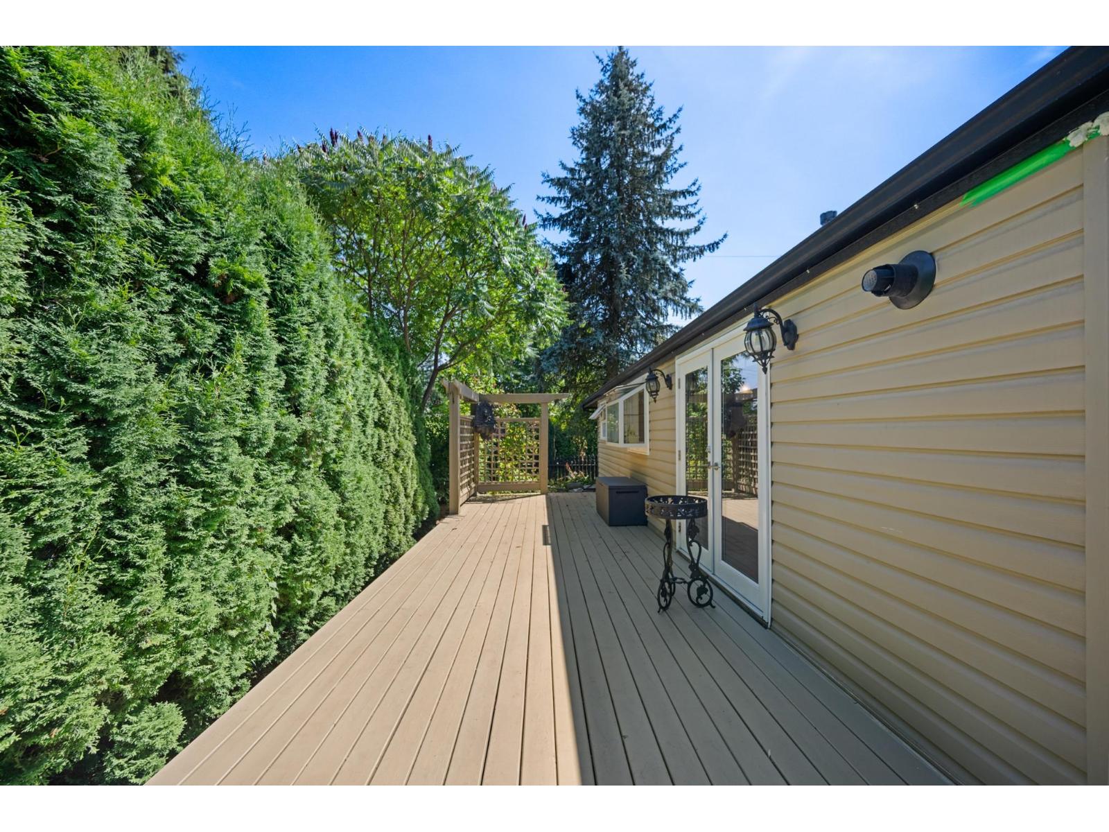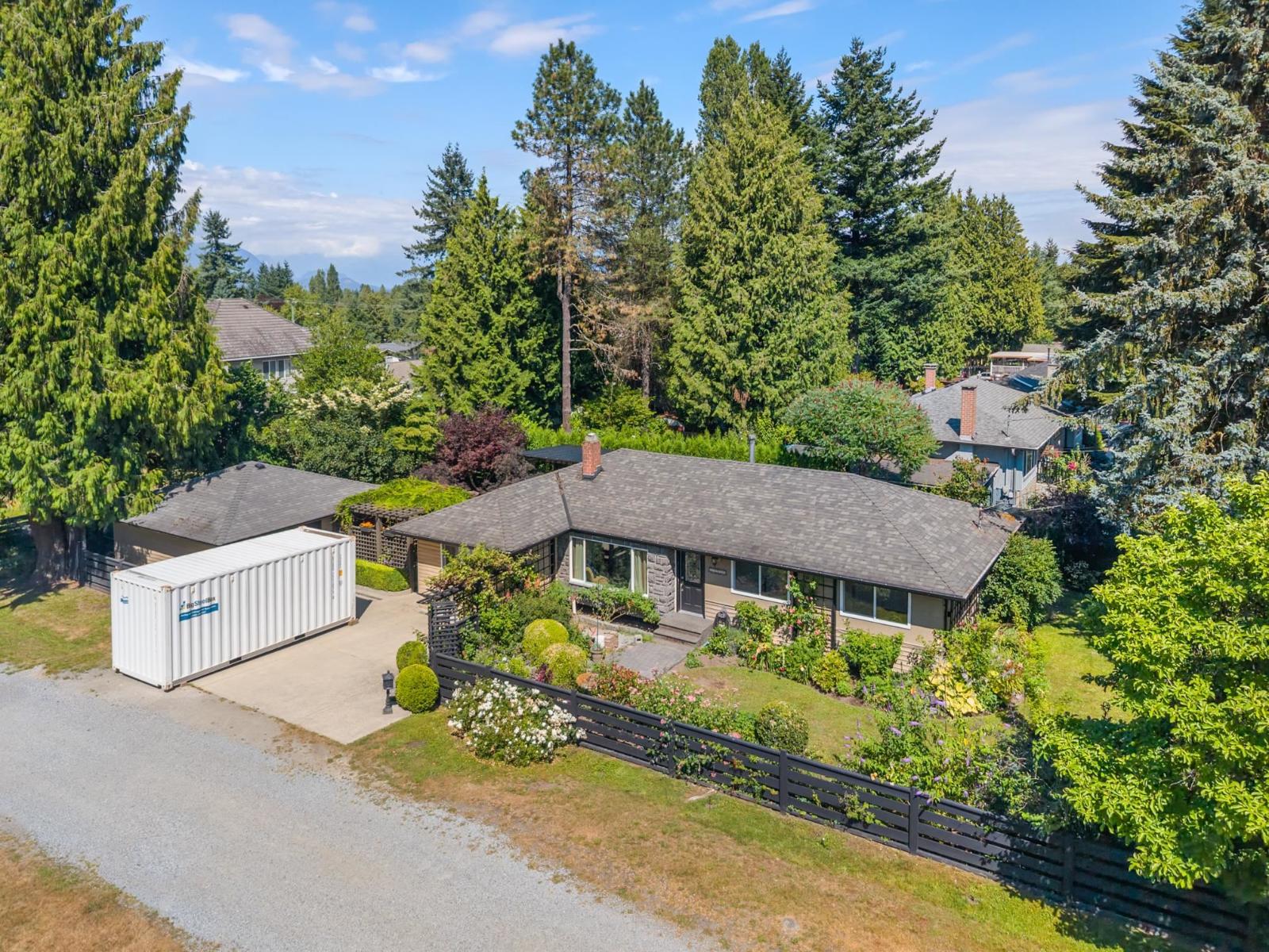 Private Corner Oasis with Workshop & Garden - Minutes to Hwy 1! This rare corner lot with lane access offers privacy, space, and flexibility. A charming 4-bedroom, 2-bath rancher featuring a bright layout with a cozy fireplace, a sunlit kitchen and eating area leading to a private deck, and French doors from the primary bedroom opening directly to the garden. The large laundry/mudroom makes family living easy. Outside, enjoy a fully fenced, beautifully landscaped yard with a workshop, mature trees, and room for entertaining or kids at play. Ample parking for RV or boat. Located just minutes from Guildford Mall, the Rec Centre, schools, parks, and Hwy 1. Whether you're right-sizing, starting fresh, or planning a future rebuild, this property is a rare find that combines comfort, privacy, and potential in one inviting package. (id:52823)
