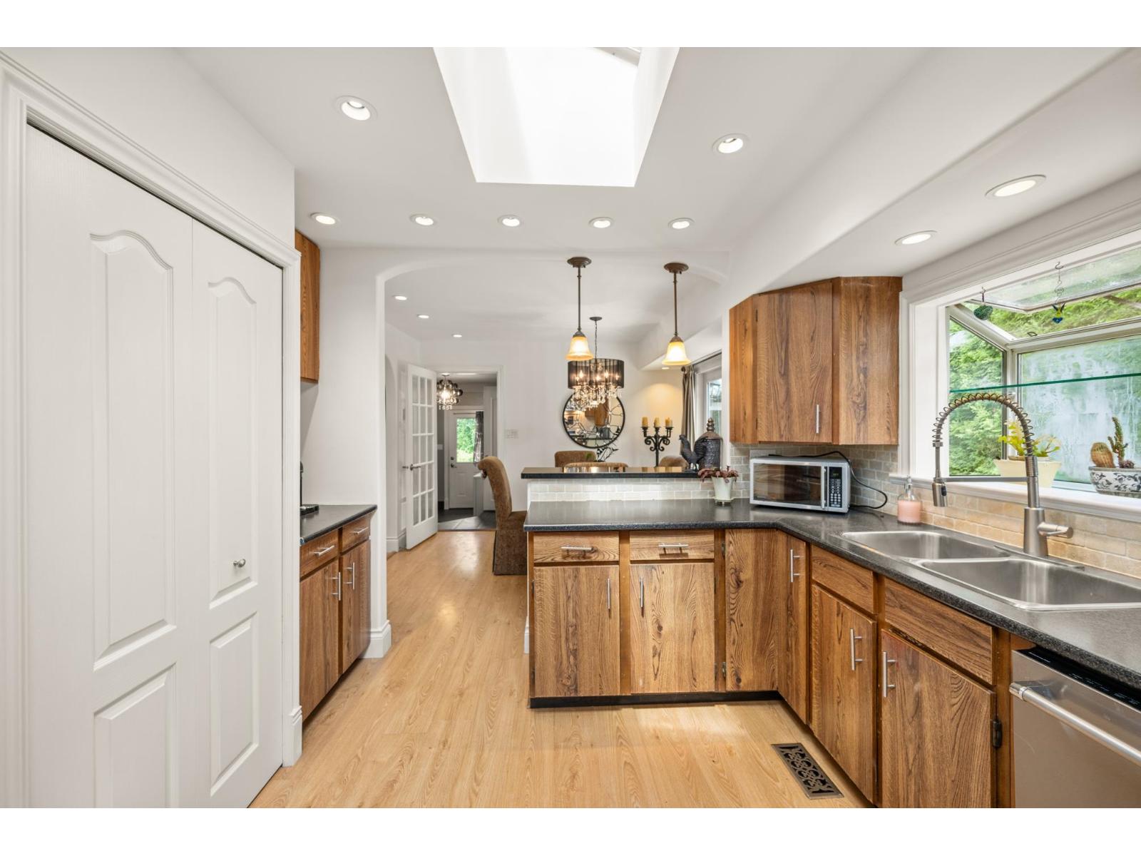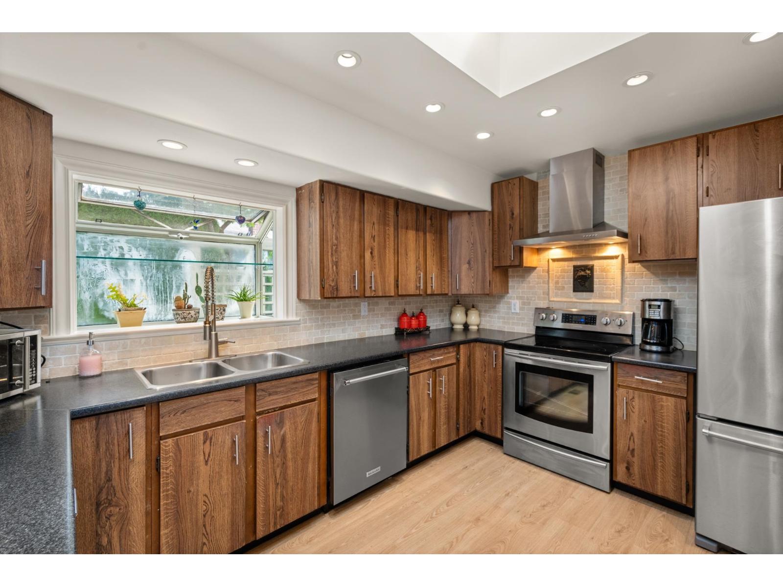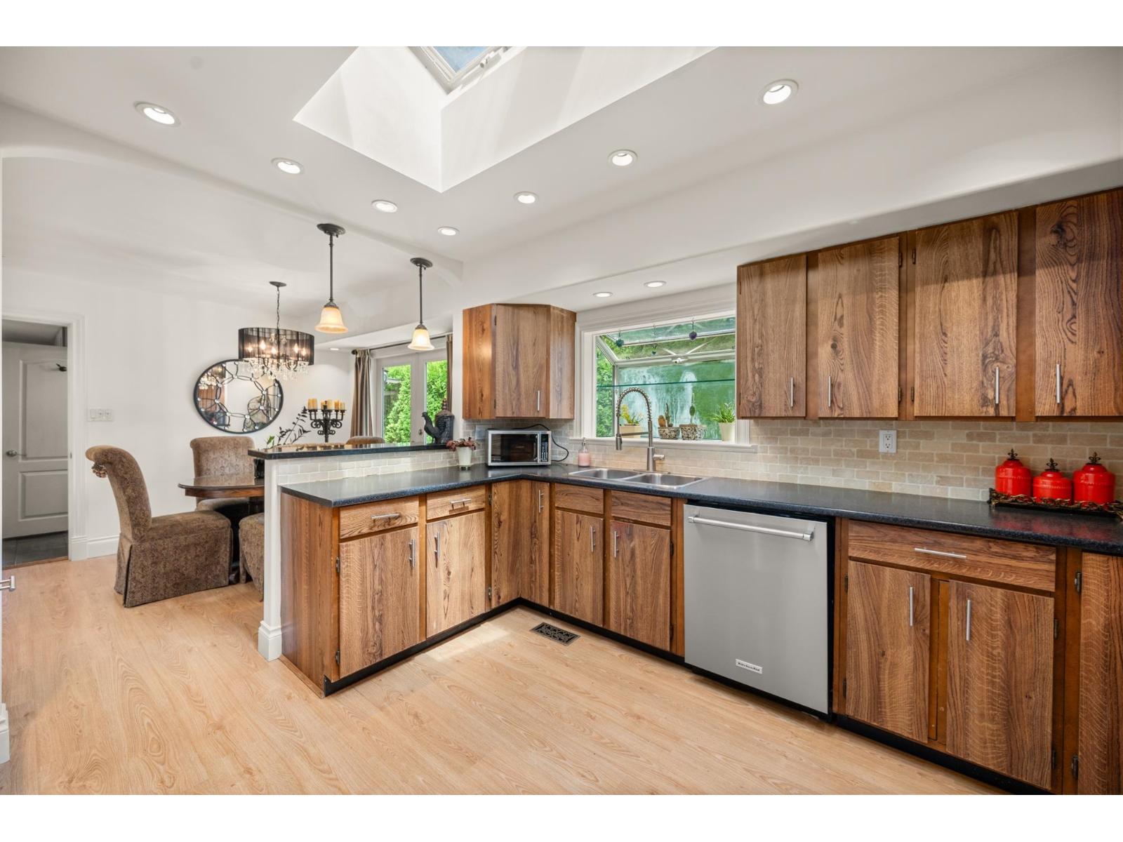 Private Corner Oasis with Workshop & Garden - Minutes to Hwy 1! This rare corner lot with lane access offers privacy, space, and flexibility. A charming 4-bedroom, 2-bath rancher featuring a bright layout with a cozy fireplace, a sunlit kitchen and eating area leading to a private deck, and French doors from the primary bedroom opening directly to the garden. The large laundry/mudroom makes family living easy. Outside, enjoy a fully fenced, beautifully landscaped yard with a workshop, mature trees, and room for entertaining or kids at play. Ample parking for RV or boat. Located just minutes from Guildford Mall, the Rec Centre, schools, parks, and Hwy 1. Whether you're right-sizing, starting fresh, or planning a future rebuild, this property is a rare find that combines comfort, privacy, and potential in one inviting package. (id:52823)