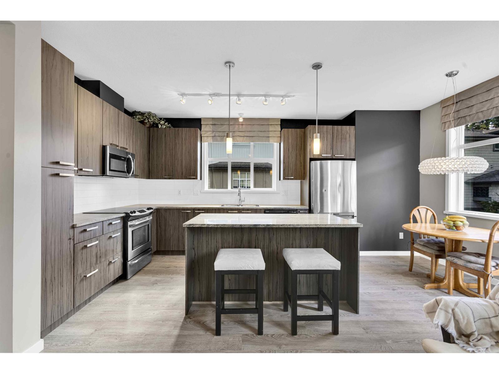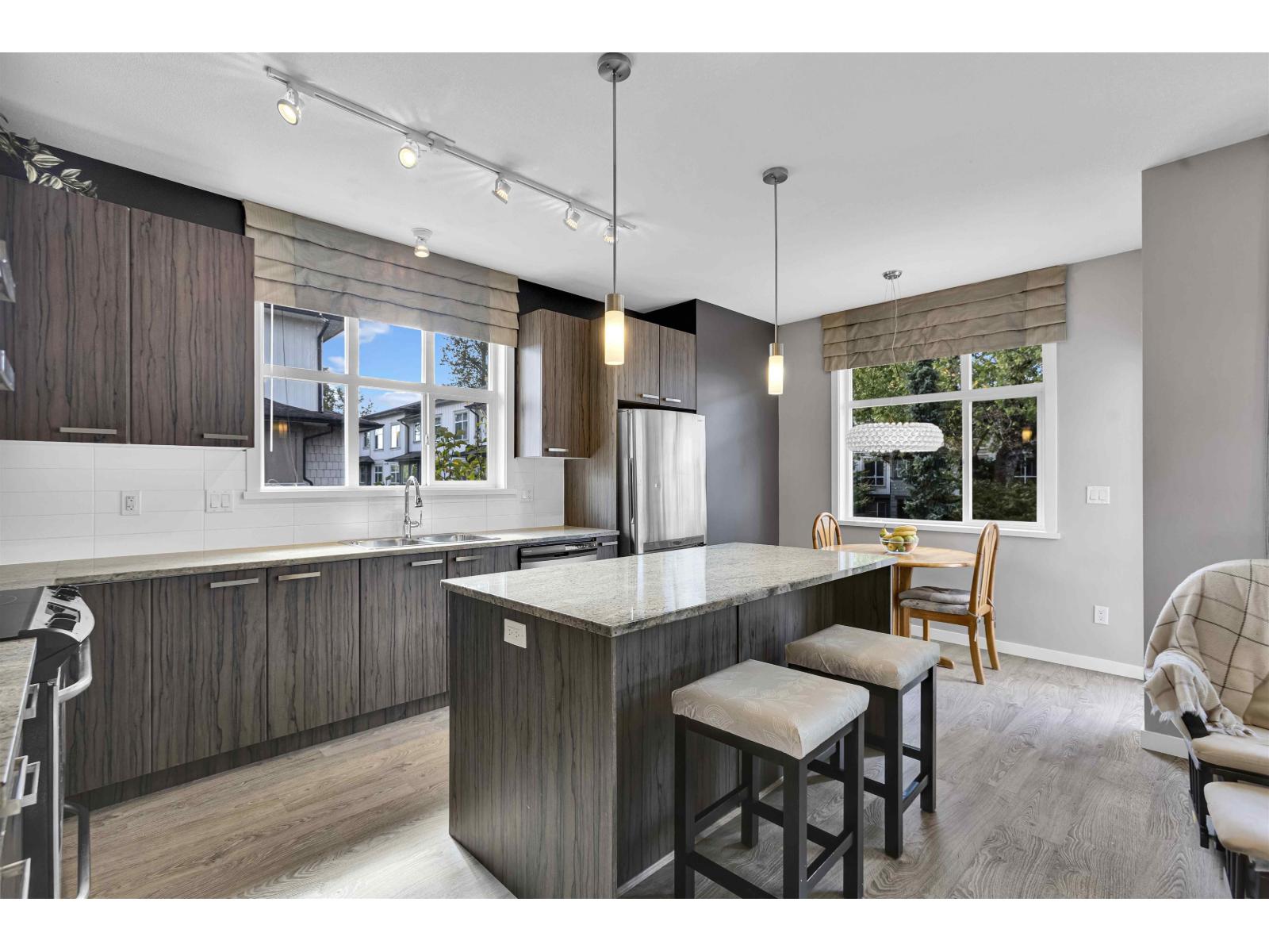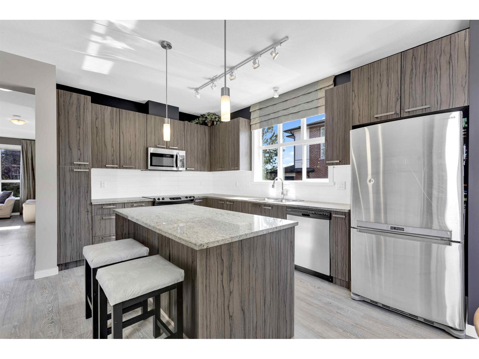 $417 MonthlyThis beautiful 1,907 sqft. corner end unit in Fleetwood, offering four spacious bedrooms and four bathrooms, was originally showcased as the presentation home for the development and features many of the builder's premium finishes, upgraded details, and thoughtful design touches. Designed in a West Coast contemporary style, this home features 9-foot ceilings with separate Living and Family room, a gourmet kitchen with double-thick granite countertops, stainless steel appliances, and elegant cabinetry. Additional highlights include a side-by-side double garage with extra parking available in front. Prime central location-just steps to shops, cafés, parks, top schools such as Frost Road & Holy Cross, Surrey Sports & Leisure complex and the Future skyTrain Station. (id:52823)