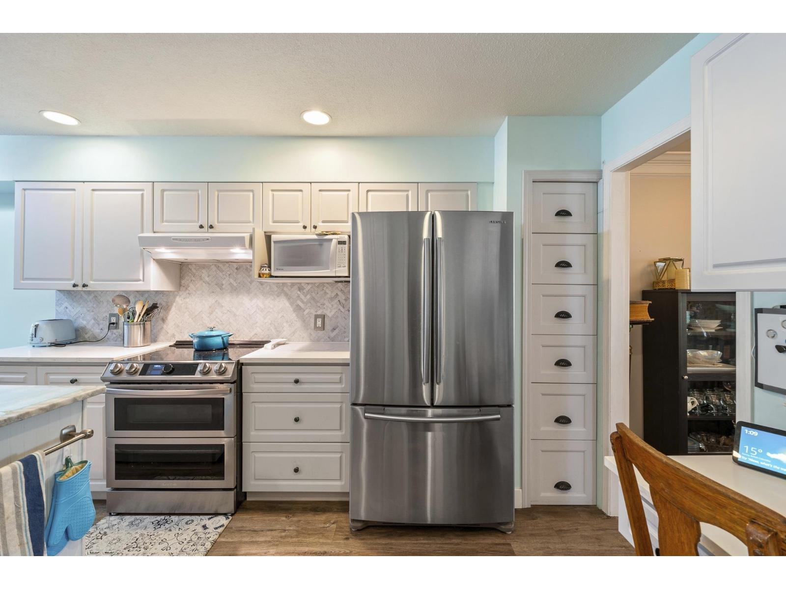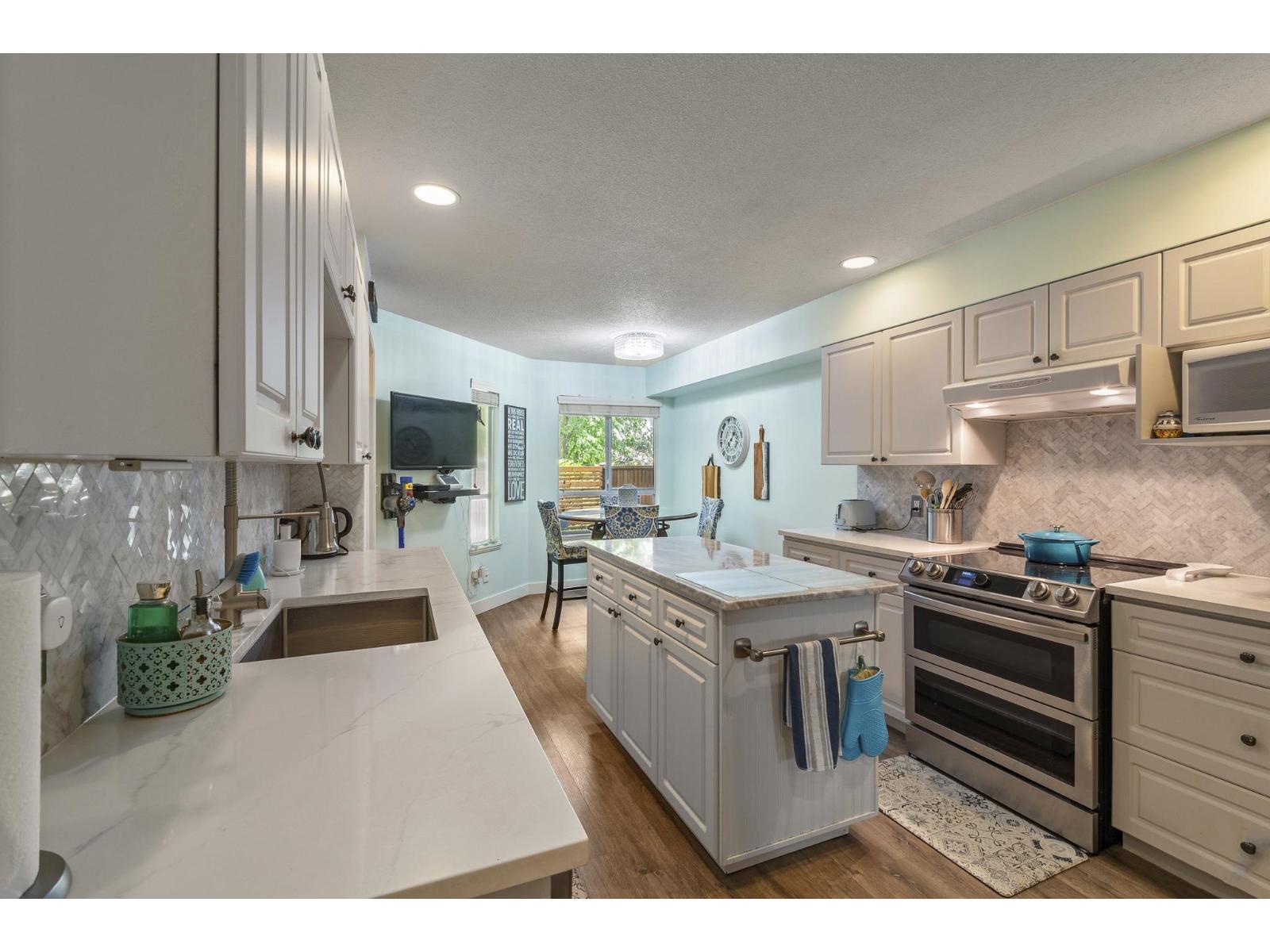 $580 MonthlyThis rarely available property in Sunnyside Gate features a private, tranquil backyard and offers 3 bedrooms plus a den. Recently renovated, it is conveniently located close to the beach, shopping, schools, and public transportation. The spacious gourmet kitchen boasts quartz countertops and an island, complemented by high-end appliances. Updated flooring throughout includes marble tiles in the newly renovated washrooms. The large primary bedroom is stunning, with a spa-like ensuite and its own south-facing private deck. The other bedrooms are generously sized, with one having an attached den. In floor heating on the bottom floor adds a warm, homey feeling. With plenty of storage space, this truly beautiful home is situated in a gated community across the from Sunnyside Park. (id:52823)