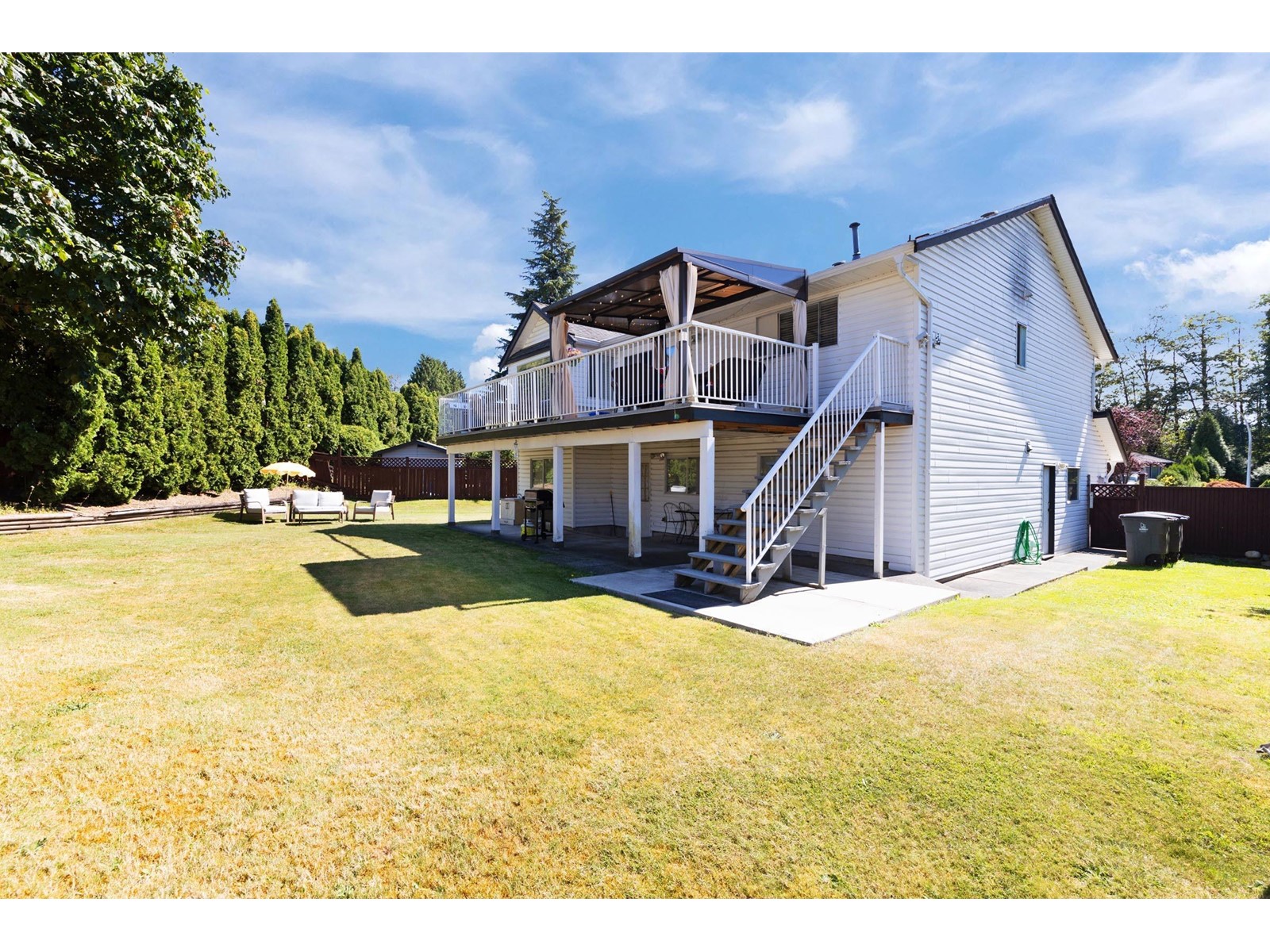 opeSituated in a private cul-de-sac Fraser Heights neighborhood on a huge 7285 s/f sits this beautifully updated family home with 5 bedrooms and 3 full baths. Living rm w/gas fireplace upgraded vinyl laminate flooring throughout the main floor w/open plan reno'd kitchen, eating area and family room with offers sliders leading to the entertainment sized sundeck with gazebo. 3 bedrooms upstairs, incl primary w/walk-in closet & updated ensuite. Walk-out above ground basement has 2 bedrooms, a generous size 1 bedroom mortgage helper with separate entrance & bedroom for upstairs use of guest bedroom. Sprawling fenced backyard offers endless outdoor play area & patio. Easy access to Hwy #1, Guildford Mall, Pacific Academy School, Fraser Heights Secondary & walking distance to Elementary. (id:52823)