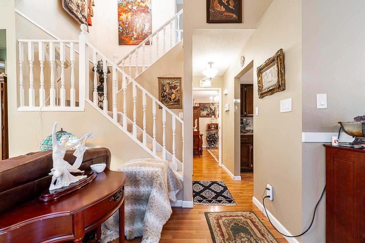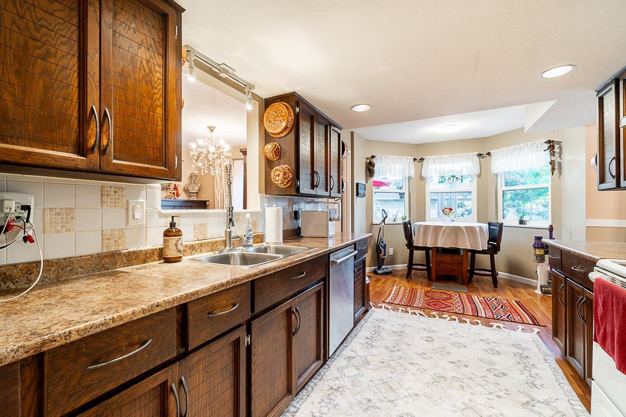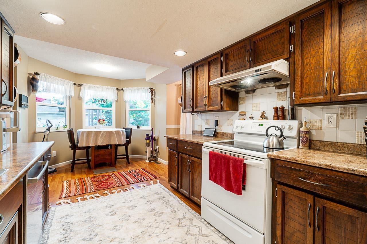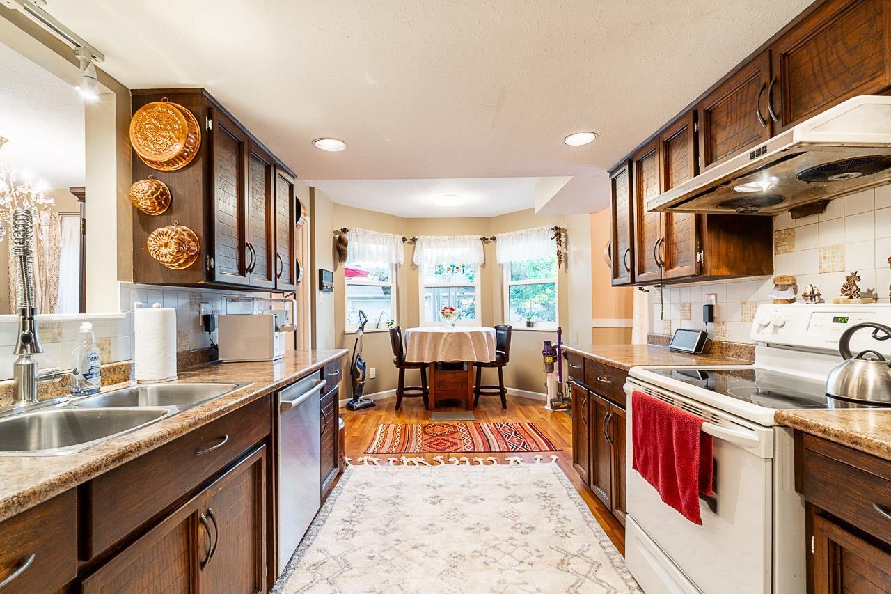 Welcome to your forever home in the heart of Guildford! This ideal family residence features 4 bedrooms, 3 bathrooms, and 2 kitchens across nearly 2,500 sq ft of well-planned living space. Situated on a large corner lot with a private, fully fenced yard-perfect for kids, pets, and entertaining. Extensive updates include roof, skylights, windows, bathrooms, stainless steel appliances, furnace, hot water on demand, A/C, fence, deck, exterior paint, and more. The beautifully landscaped, south-facing backyard is a peaceful retreat with numerous fruit trees-too many varieties to list! It's a serene space to relax, play, and enjoy nature year-round. Bonus: MORTGAGE HELPER with private entrance, 3' crawl space for storage, and 2 cozy fireplaces. Located in the Lena Shaw, Bonaccord, and Guildford Park Secondary catchments. Walking distance to Guildford Town Centre and Green Timbers Urban Forest, with easy access to transit, SkyTrain, and Hwy 1. A perfect blend of comfort, convenience, and community awaits you here! (id:52823)