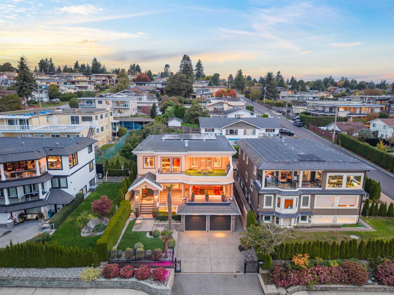 A Spectacular Custom-Built Hillside Oceanview Estate showcasing exceptional craftsmanship and scale. Spanning three levels with 4 bedrooms and 4 bathrooms, this stunning property offers panoramic ocean and Mt. Baker views. Blending timeless design with modern comfort, every detail has been meticulously curated to create warmth, elegance, and sophistication. Upper: Designed for family living and entertaining, featuring a grand living room with fireplace and a chef-inspired kitchen opening to ocean vistas. Includes executive media room and a flexible bedroom/office. Main: Two bedrooms, including the primary retreat with spa-inspired ensuite and access to a spacious ocean view terrace, a sanctuary for relaxation. Lower: A well-appointed one-bedroom self-contained suite. A/C, infrared sauna, solar panels, secure gated driveway with ample parking, and lush oasis-like setting make this an extraordinary place to call home. (id:52823)