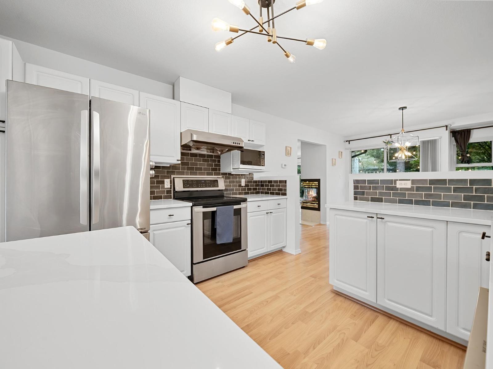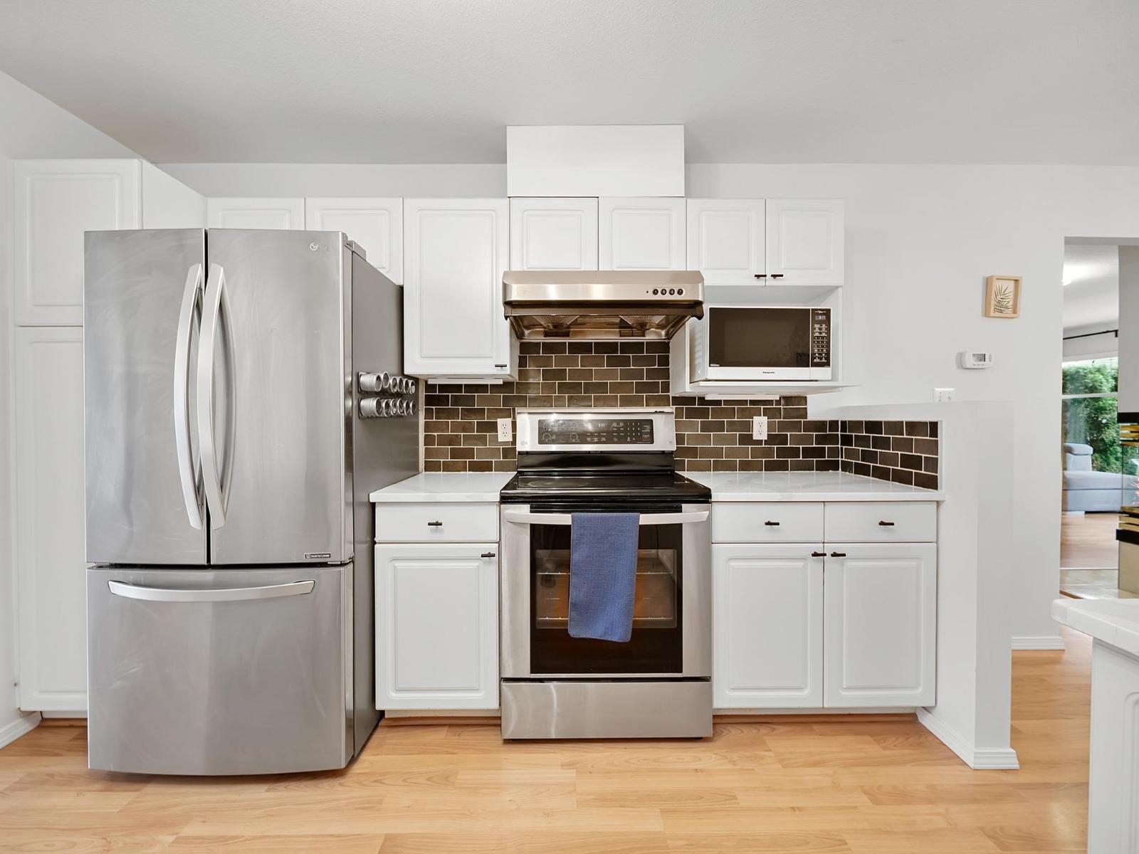 $401.85 MonthlyBeautifully renovated & exceptionally maintained, this spacious 2-storey townhouse sits in the prestigious gated community of Ponderosa Estates. Backing onto lush green space for privacy, it offers a generous floor plan with defined spaces for kitchen, dining, living & recreation. Enjoy a walkout backyard off the main floor. Updates include a renovated kitchen (2025), bathrooms (2024), fresh paint (2025), hot water tank (2023), plus all new lights & fixtures throughout. Large windows fill the home with natural light & garden views. Enjoy a private backyard, 3 parking spots & quality finishes that make it feel more like a detached home. Walking distance to schools, parks, library, shopping, recreation & future SkyTrain. School Catchment: Walnut Road Elementary & Fleetwood Park Secondary (id:52823)
