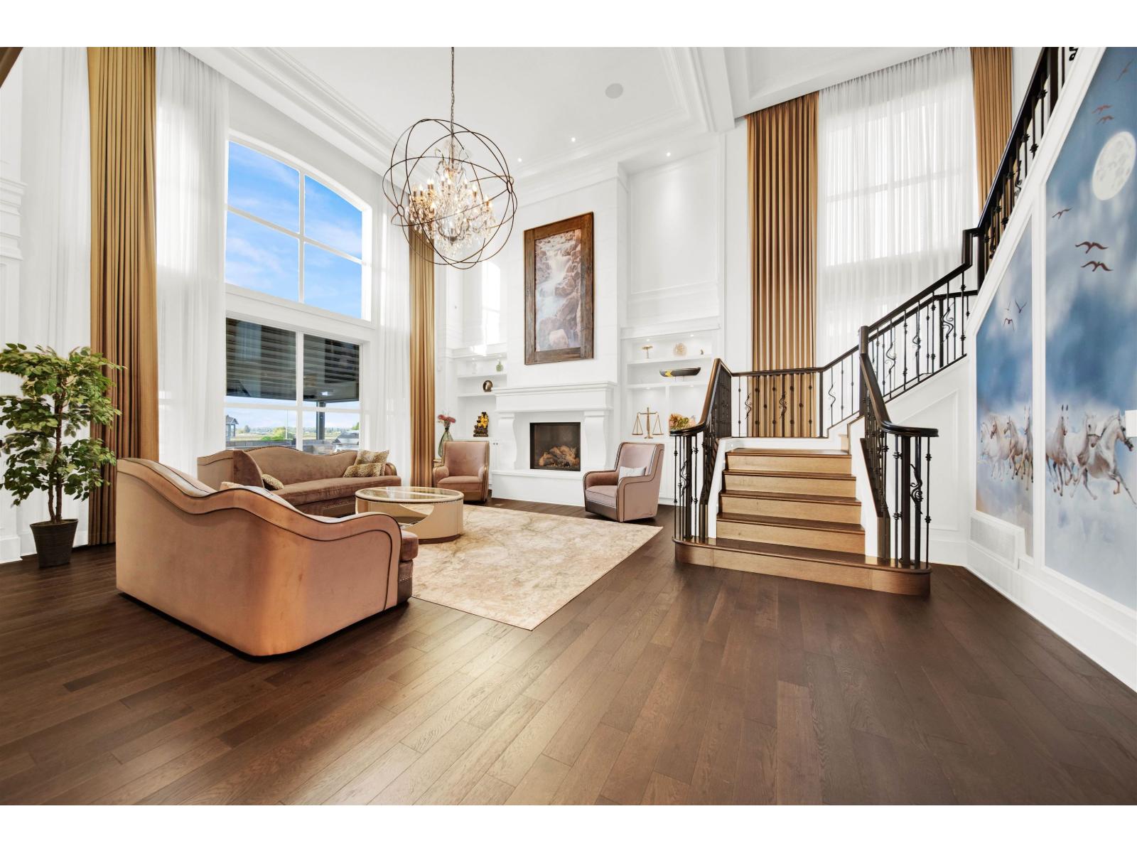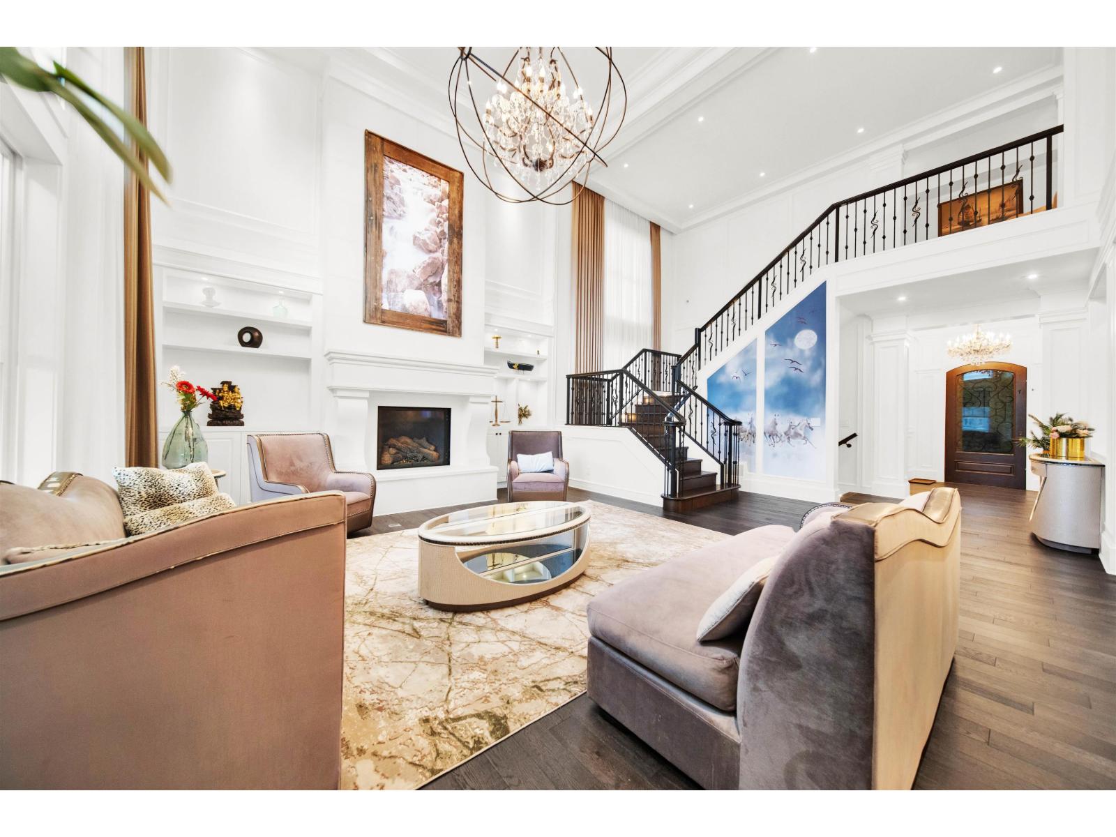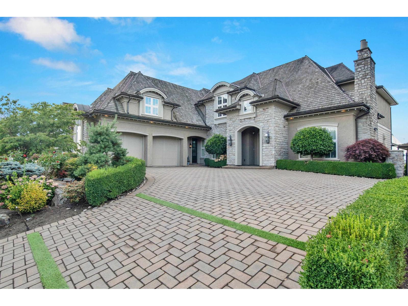 Experience luxury living in this modern 5-bedroom, 7-bathroom château nestled in prestigious Morgan Creek. Spanning 6,640 SQFT, this architectural masterpiece features custom woodwork, rich cabinetry, and premium finishes like Bedrock stone, cedar shake roofing, Euro gutters, and detailed mouldings. The grand interior showcases a soaring two-story cast-stone fireplace, a stylish Barista/liquor bar, and a chef-inspired kitchen with dual islands, a 48" Wolf range, Sub-Zero fridge/freezers, and a separate wok kitchen. The basement offers a full gym, sauna, bar, and a concrete home theatre with 120" screen and surround sound. Smart home systems include automated lighting, music, CCTV, central vacuum, Somfy exterior shades, and a retractable patio cover-perfect for year-round enjoyment. (id:52823)