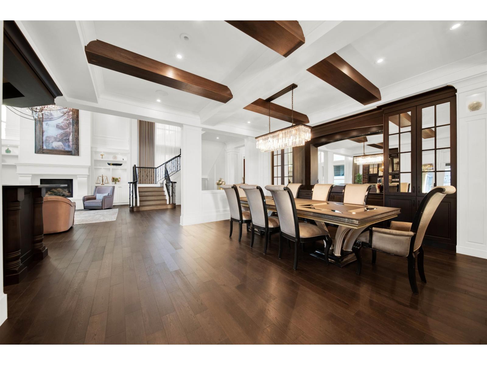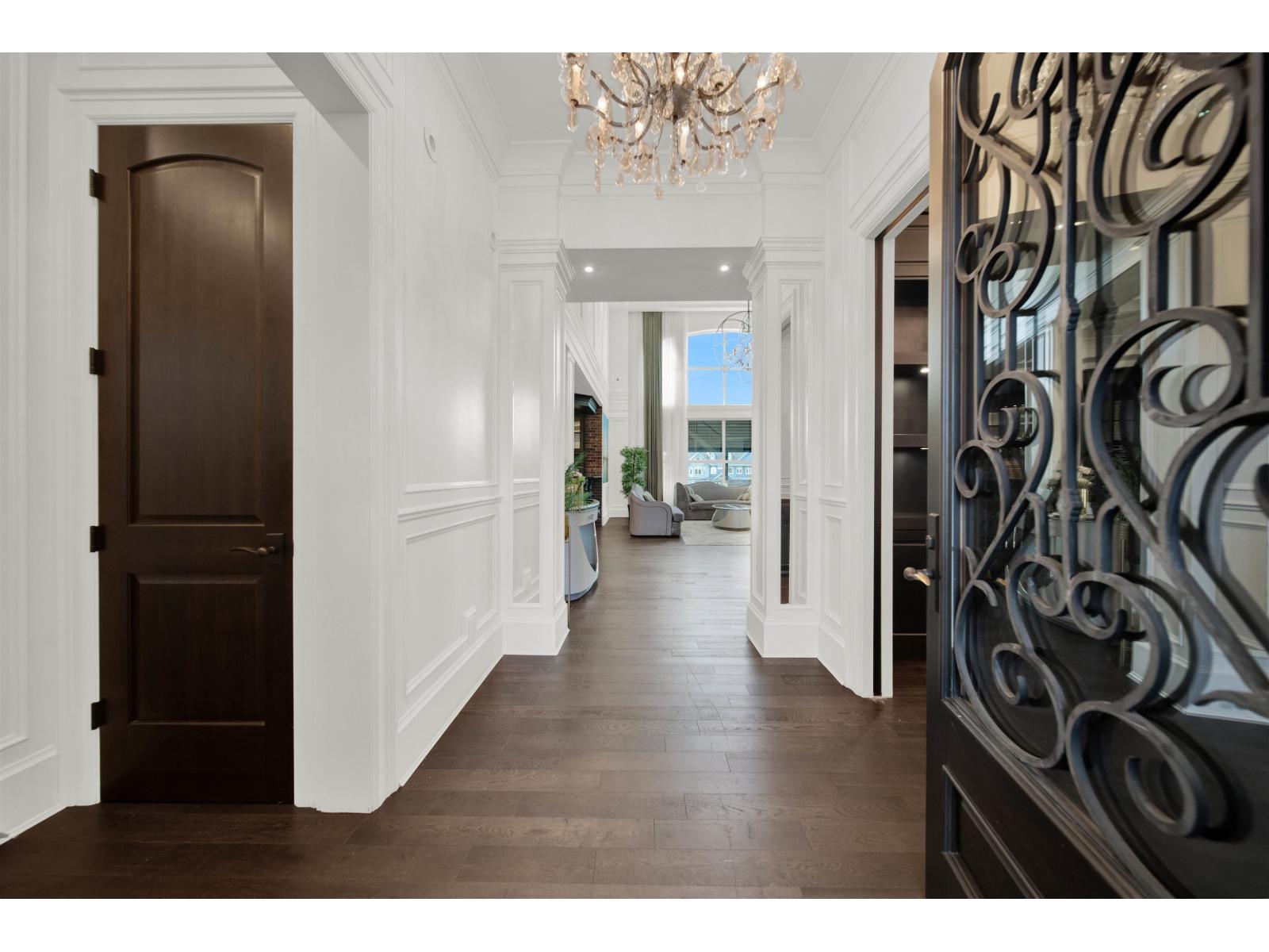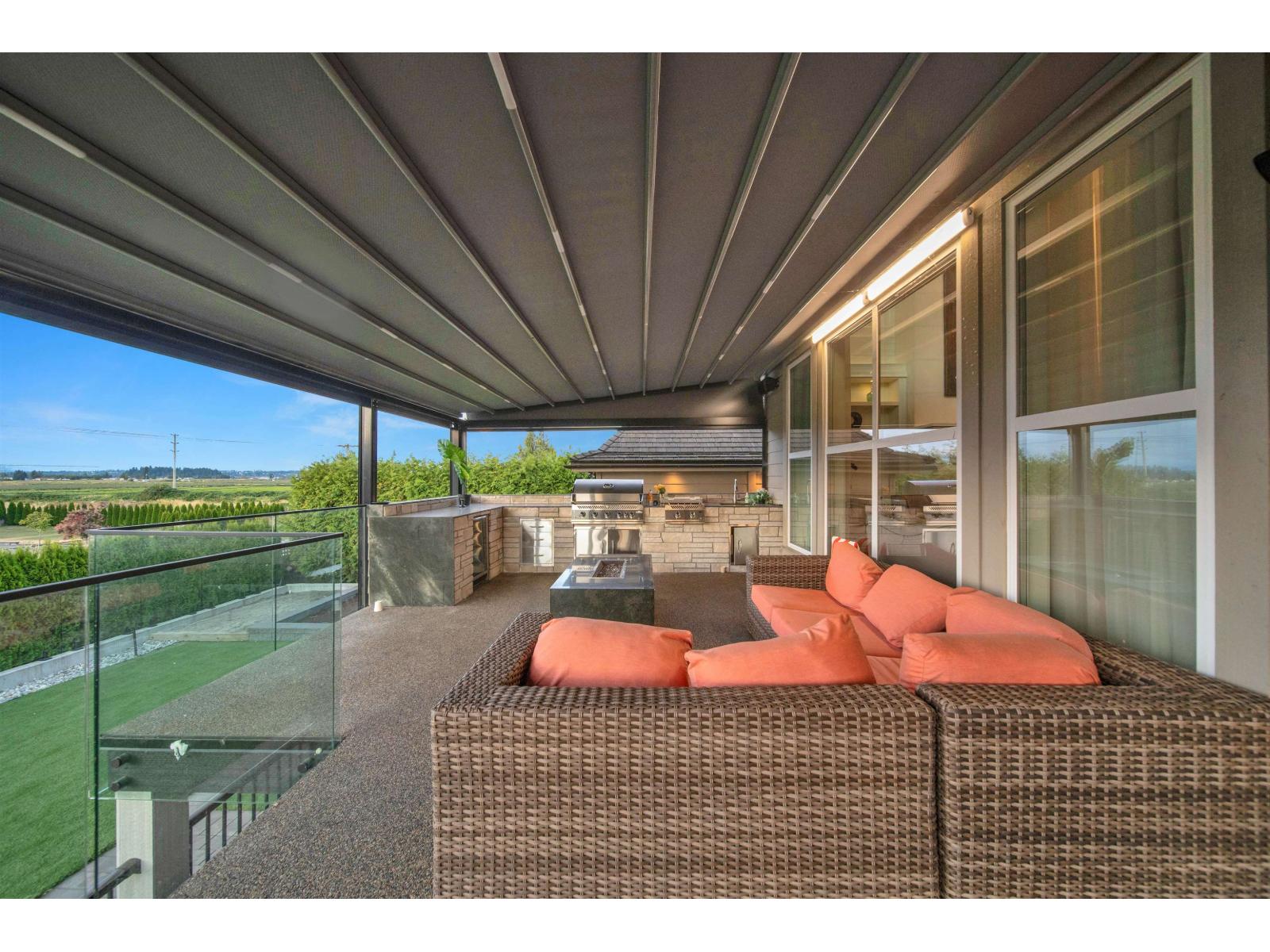 Experience luxury living in this modern 5-bedroom, 7-bathroom château nestled in prestigious Morgan Creek. Spanning 6,640 SQFT, this architectural masterpiece features custom woodwork, rich cabinetry, and premium finishes like Bedrock stone, cedar shake roofing, Euro gutters, and detailed mouldings. The grand interior showcases a soaring two-story cast-stone fireplace, a stylish Barista/liquor bar, and a chef-inspired kitchen with dual islands, a 48" Wolf range, Sub-Zero fridge/freezers, and a separate wok kitchen. The basement offers a full gym, sauna, bar, and a concrete home theatre with 120" screen and surround sound. Smart home systems include automated lighting, music, CCTV, central vacuum, Somfy exterior shades, and a retractable patio cover-perfect for year-round enjoyment. (id:52823)