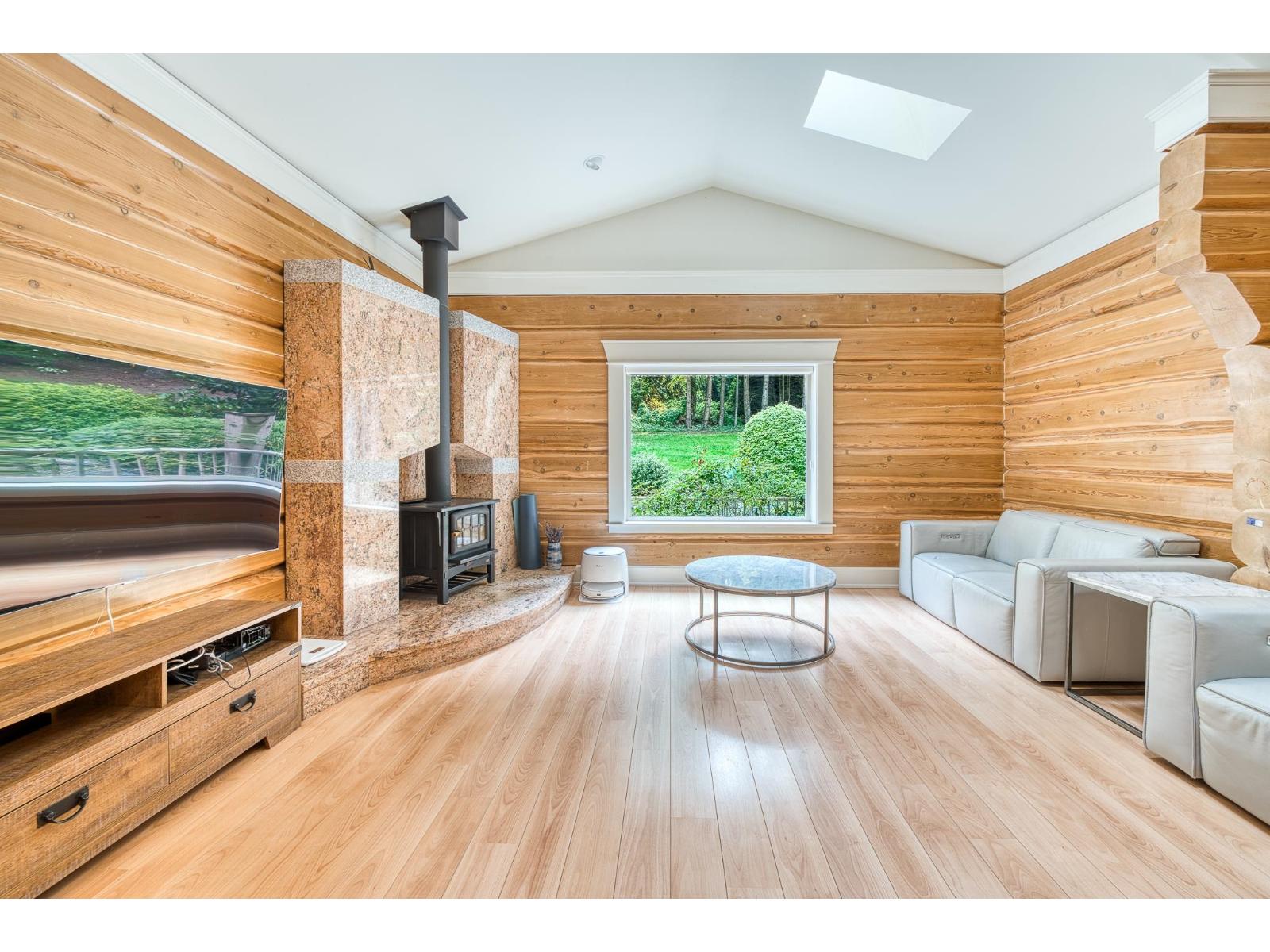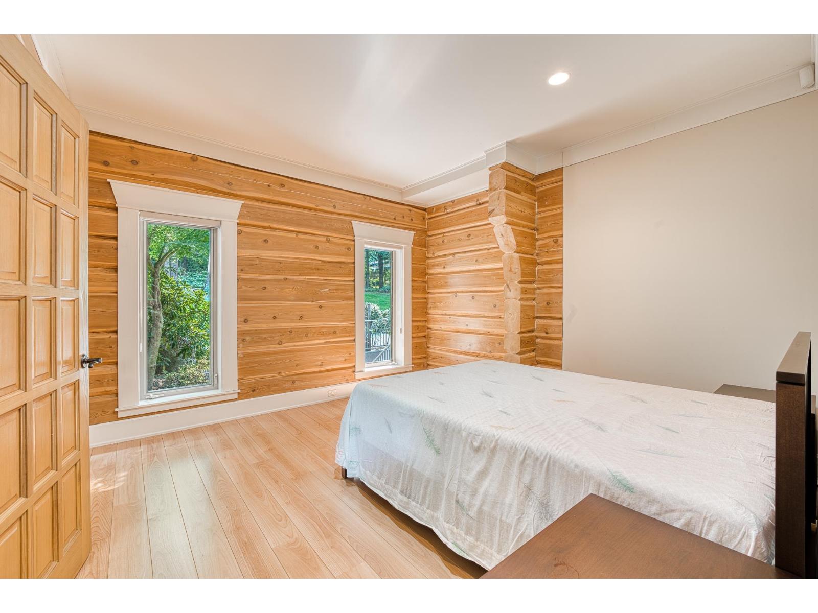 Over 1 acres of land (45250 sqft). This home is uniquely crafted almost entirely from solid logs, giving it the warm and timeless charm of a luxurious log cabin. The architecture emphasizes harmony with nature-large wooden beams, natural stone accents, and expansive windows that offer serene views of the surrounding greenery. The spacious grounds provide plenty of privacy and room to explore, while the structure itself exudes both rustic elegance and modern comfort. It's a rare and beautiful sanctuary in one of South Surrey's most desirable areas. Open house: Sun, Oct. 5th, 2-4pm (id:52823)