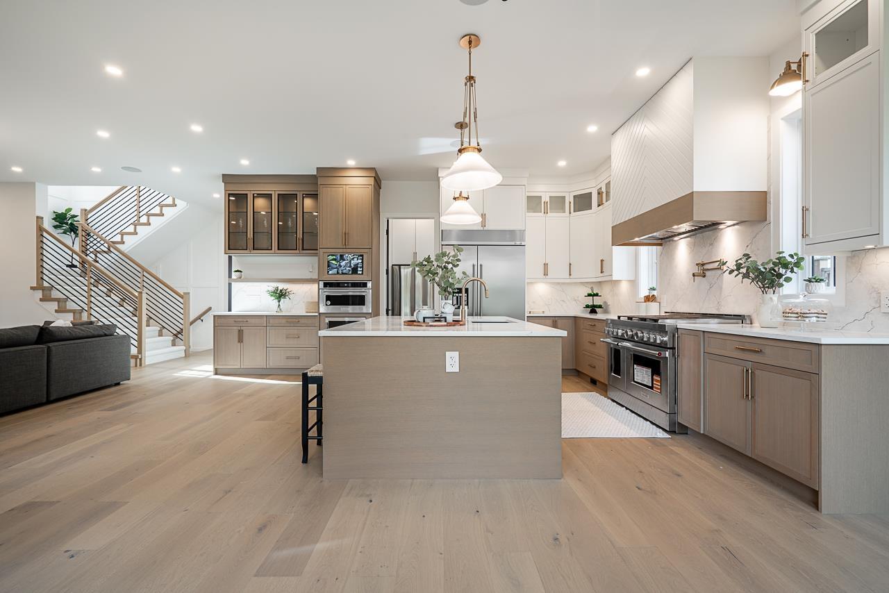 This breathtaking designer home blends Craftsman architecture with Farmhouse elegance, offering 5,560 sq ft of luxurious living in sought-after West Cloverdale. Bright, airy interiors feature expansive windows with automatic blinds, exquisite millwork, and premium flooring. The showstopping great room centers around a stunning fireplace and a custom two-tone white oak kitchen with top-tier appliances, a spice kitchen, and walk-in pantry. Upstairs boasts 4 generous vaulted bedrooms including a dreamy primary ensuite with soaker tub. The lower level features a 2-bed legal suite, media room with wet bar, 3-pc bath, storage, and mudroom. Enjoy central A/C, designer details & the 2/5/10 New Home Warranty-a perfect blend of sophistication, comfort, and functionality. (id:52823)