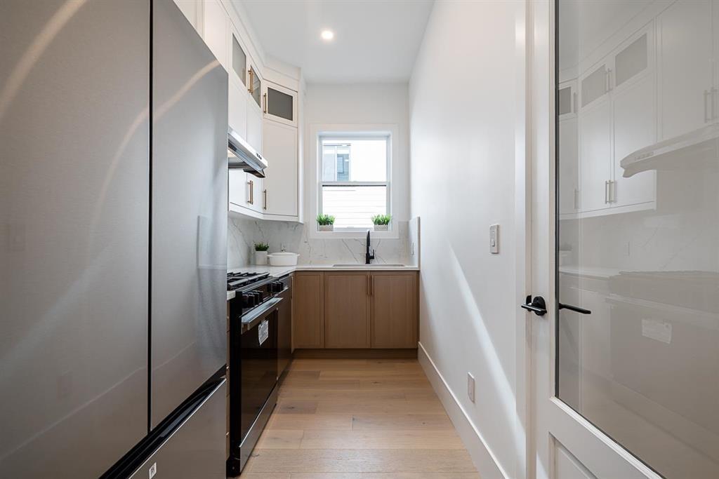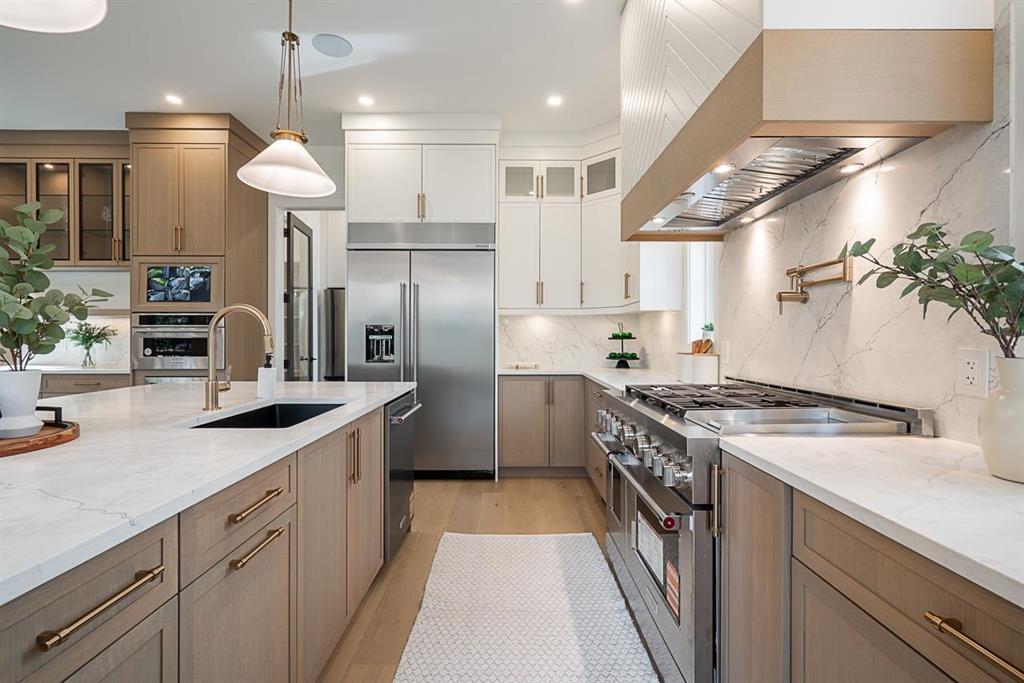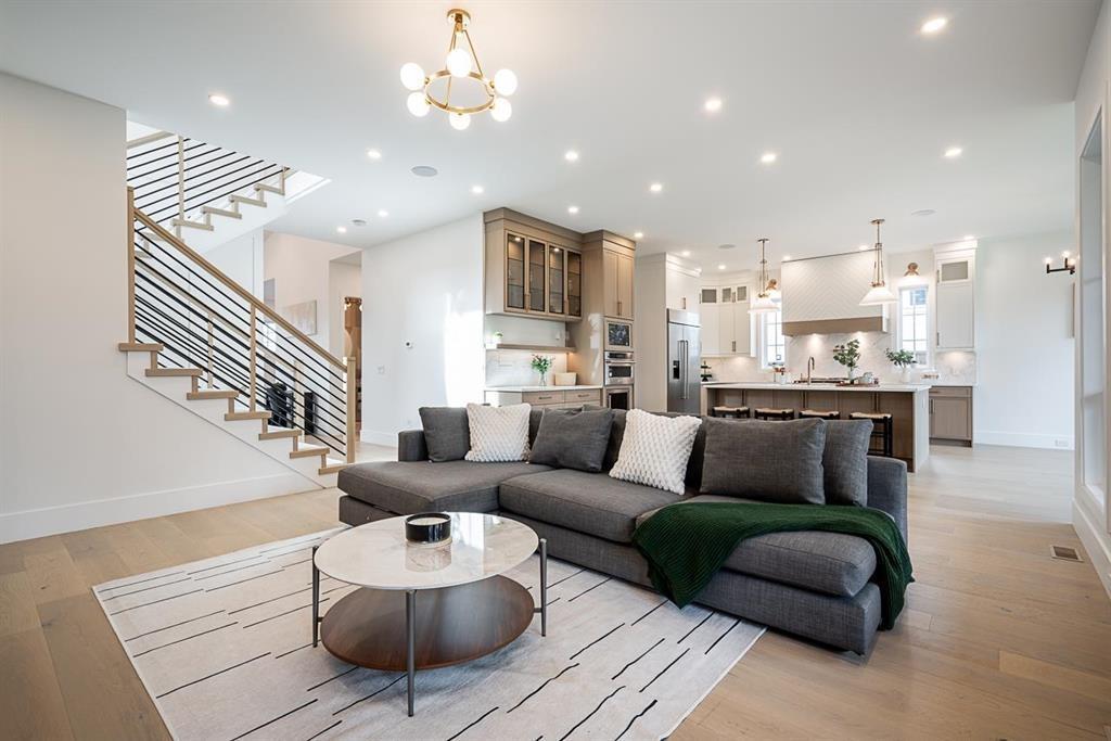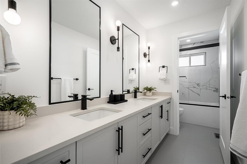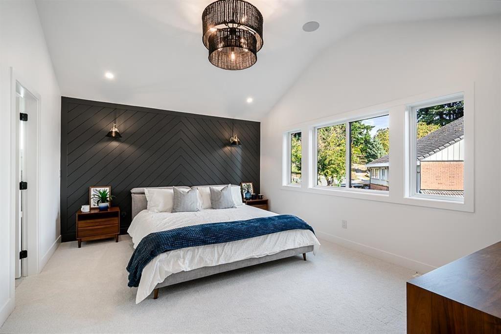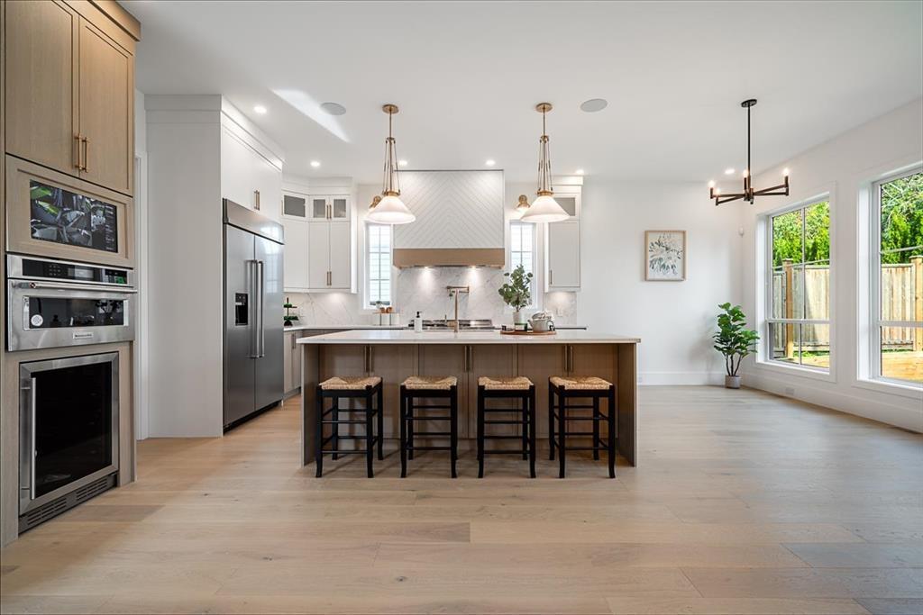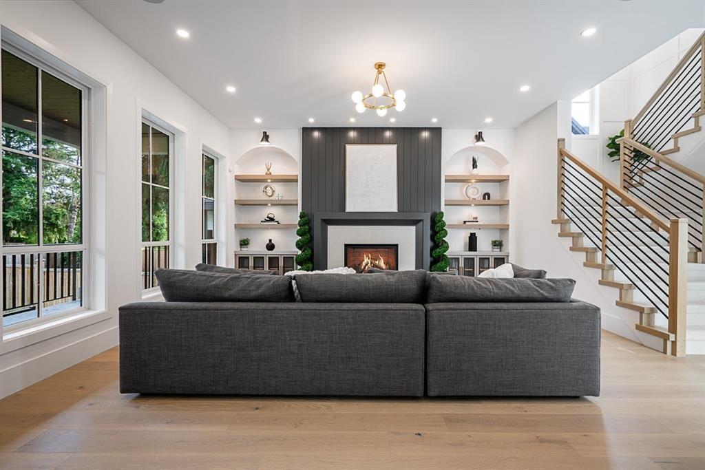 This breathtaking designer home blends Craftsman architecture with Farmhouse elegance, offering 5,560 sq ft of luxurious living in sought-after West Cloverdale. Bright, airy interiors feature expansive windows with automatic blinds, exquisite millwork, and premium flooring. The showstopping great room centers around a stunning fireplace and a custom two-tone white oak kitchen with top-tier appliances, a spice kitchen, and walk-in pantry. Upstairs boasts 4 vaulted bedrooms including a dreamy primary suite, plus a main-level bedroom. The lower level features a 2-bed legal suite, media room with wet bar, 3-pc bath, storage, and mudroom. Enjoy central A/C, smart home features, and the 2/5/10 New Home Warranty-a perfect blend of sophistication, comfort, and functionality. (id:52823)