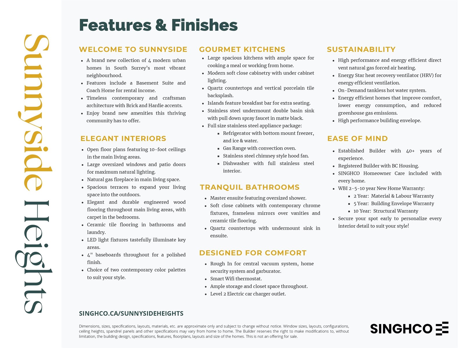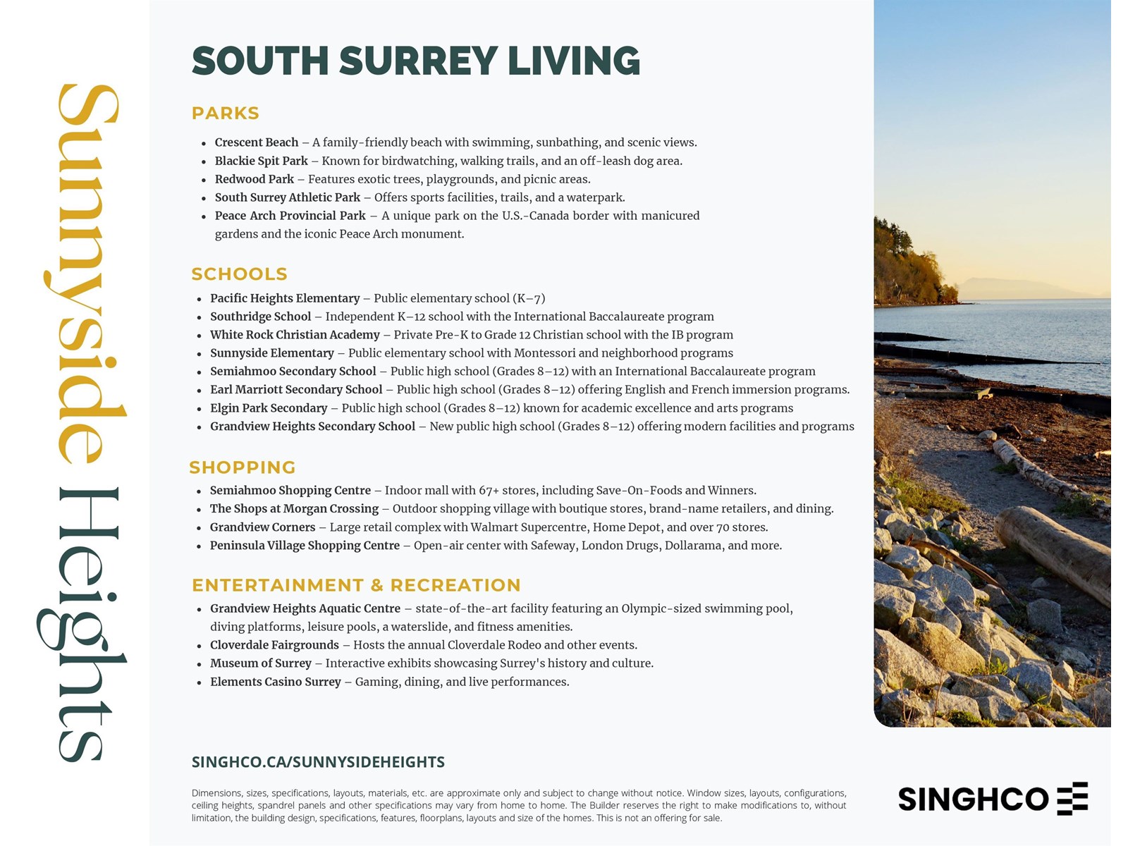 Welcome to SUNNYSIDE HEIGHTS: 4 MODERN HOMES in one of SOUTH SURREY'S MOST SOUGHT-AFTER NEIGHBOURHOODS! 10 FT CEILINGS, EXPANSIVE WINDOWS & PREMIUM FINISHES, GOURMET KITCHENS with QUARTZ countertops, SOFT-CLOSE cabinetry & STAINLESS STREEL appliances. Master ENSUITE with oversized shower & CONTEMPORARY fixtures. Detached COACH HOUSE and optional 2 bedroom BASEMENT SUITE perfect for up to $5k/month RENTAL INCOME or extended family! SMART HOME FEATURES with WiFi thermostat & EV charger. Just steps from EXCELLENT SCHOOLS, SHOPPING, BEACHES & PARKS. BRNAD NEW Tata 'Lu Elementary School 4 min walking distance. Move-in this summer 2025. ESTABLISHED BUILDER with over 35 years experience and included 2-5-10 Warranty Up to 8 BEDROOMS at Buyer's option. Call for appointment. (id:52823)