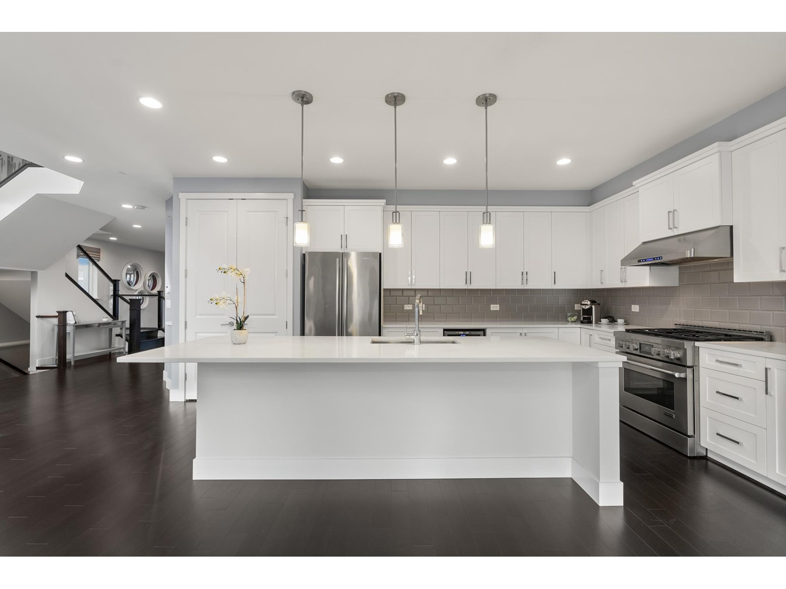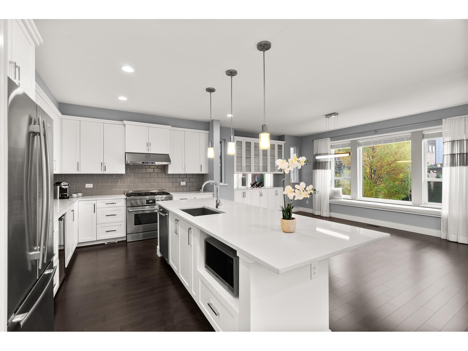 This luxury 3513 SQFT home is elegantly built, located in the most popular Pacific Heights neighbourhood. It is characterized by every impressive detail of craftsmanship with a South exposure back yard. The home is bright and functional, featuring high ceilings, 4 bedrooms and 3.5 bathrooms, huge open kitchen & pantry, s/s appliances, quartz countertops, glass stair railing, wide-plank hardwood flooring. The vaulted-ceiling master bedroom w/a south-facing balcony, spa-like ensuite w/ seamless glass shower and separate tub make this home special & different. The walkout basement has an entertainment space and a suite. It's equipped AC, irrigation system, fenced and low-maintenance yards, and much more! No lawn work in backyard is a bonus! Ta'talu Elementary & Earl Marriott Second catchment. (id:52823)