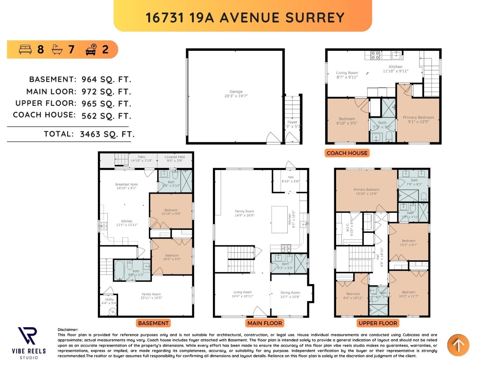 Imagine your dream home coming to life!!! This stunning 7 Bed, 7 Bath modern residence offers luxurious living space, featuring a chef-inspired gourmet kitchen with High End Appliances, a spa-like primary retreat, and sun-filled open-concept living areas. The detached 2-bed, 1-bath coach house is perfect for rental income and separate entry, and a fully finished basement for your large family - versatility at its finest. Designed with high-end finishes, this property is a true entertainer's paradise. Nestled in sought-after South Surrey, you're moments from top schools, parks, shopping, and transit. Plus, enjoy peace of mind with a comprehensive 2-5-10 warranty, ensuring quality and protection for years to come.Contact today for details. Open House on Saturday Sep 13 @ 2pm - 4pm. (id:52823)