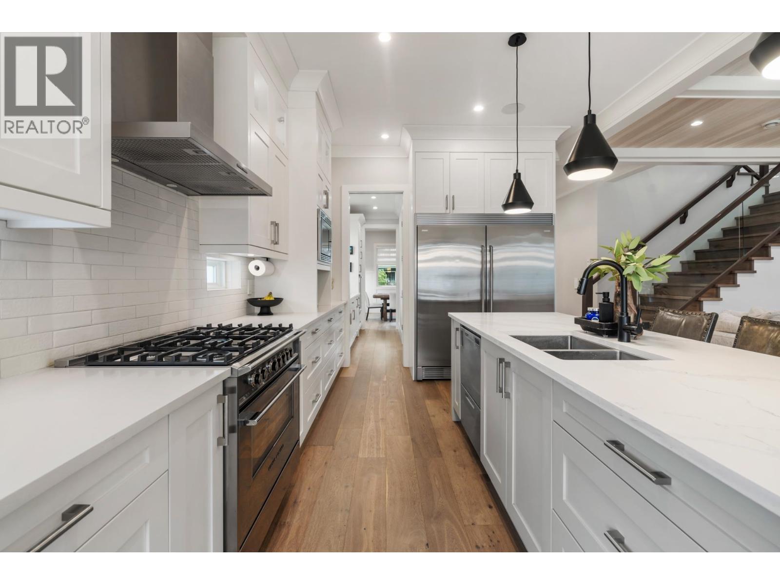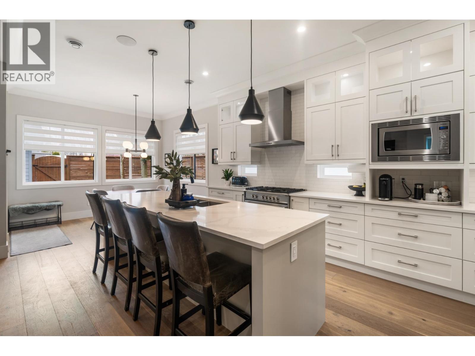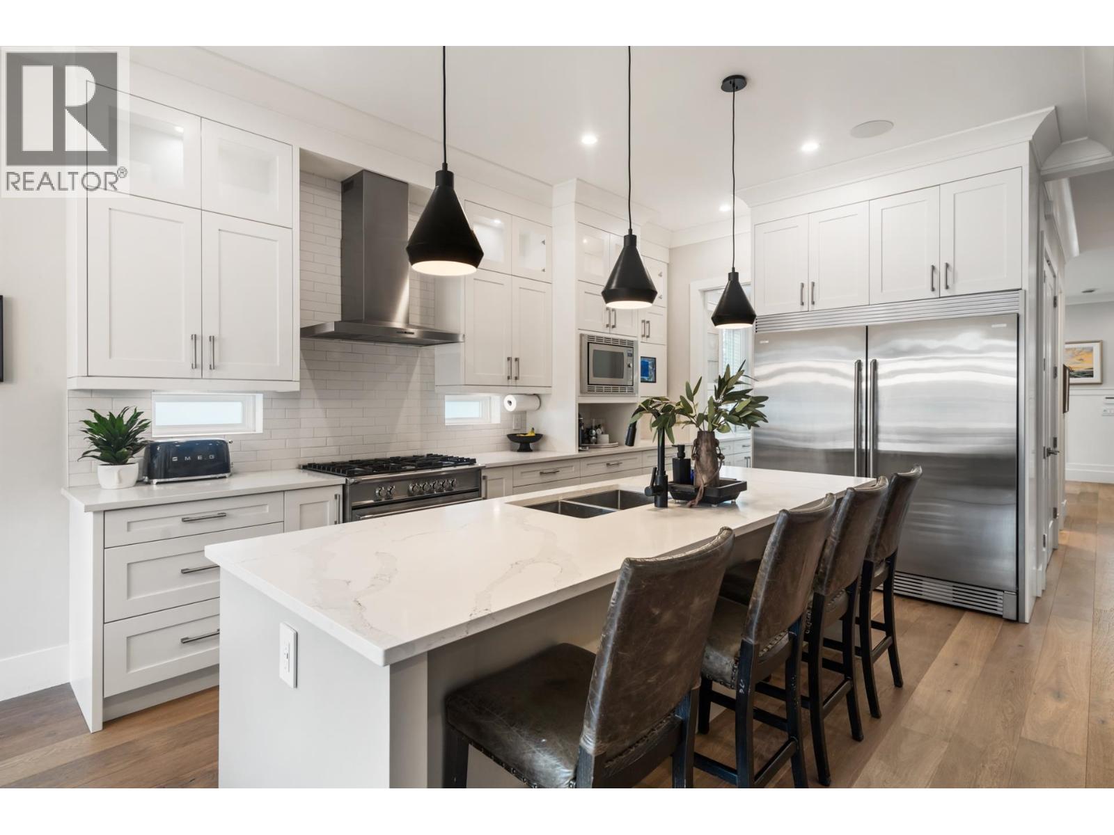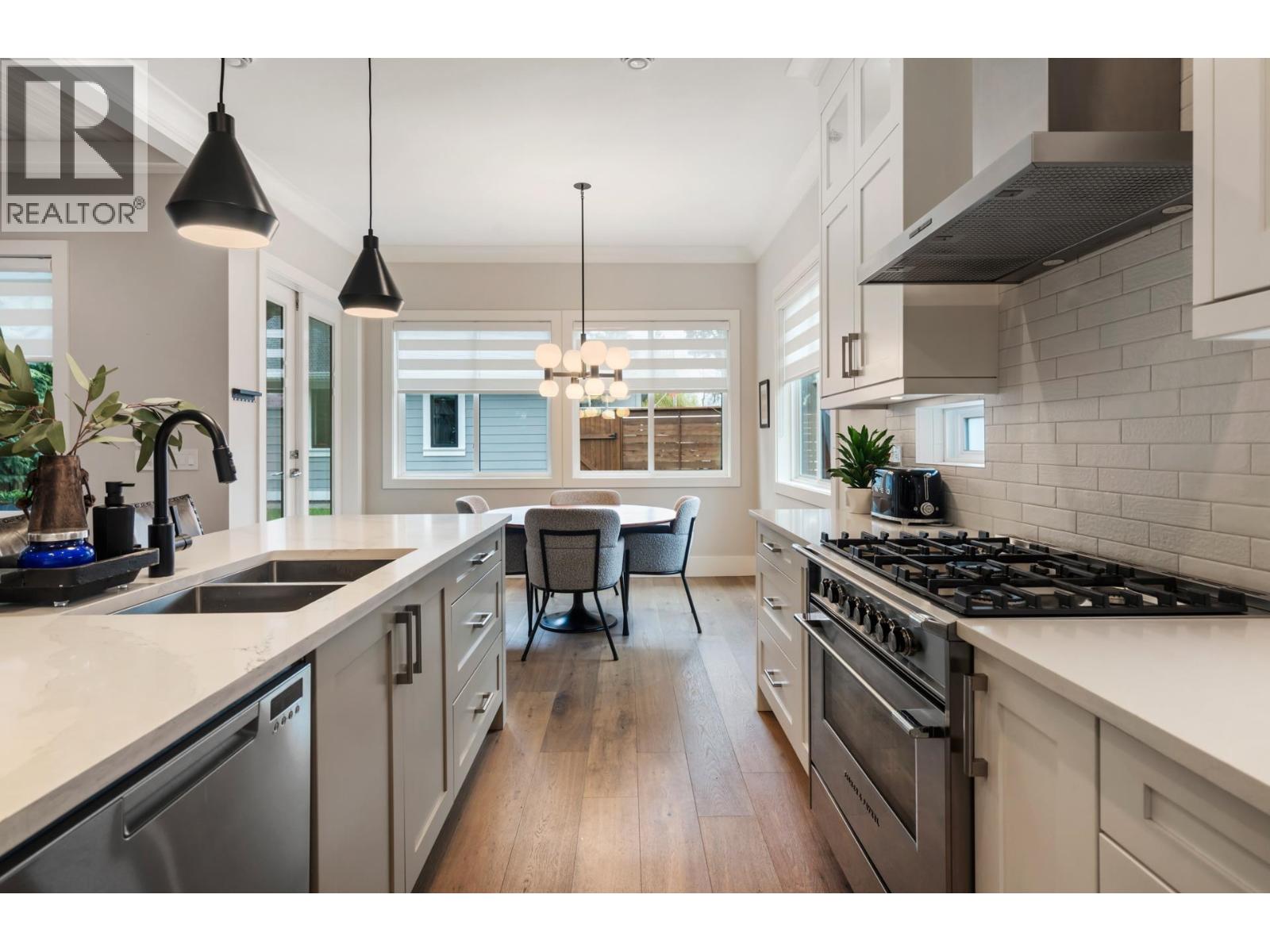 Discover the perfect blend of luxury and comfort in this exceptional 4-bedroom Beach Grove home, designed for flexibility with a primary bedroom on either level. The main floor boasts a bright, open-concept layout with soaring 10´ ceilings, wide-plank hardwood floors, and a gourmet kitchen featuring premium appliances, a spacious island, and a butler´s pantry-ideal for entertaining. Upstairs, the primary suite is a private retreat with vaulted ceilings, a secluded deck, and a spa-inspired ensuite. Additional features include in-floor heating, A/C, HRV, Hunter Douglas blinds, and custom millwork. A private west-facing backyard, detached double garage, and extra parking complete this home. Ideally located just steps from the beach, schools, trails, and local amenities. (id:52823)