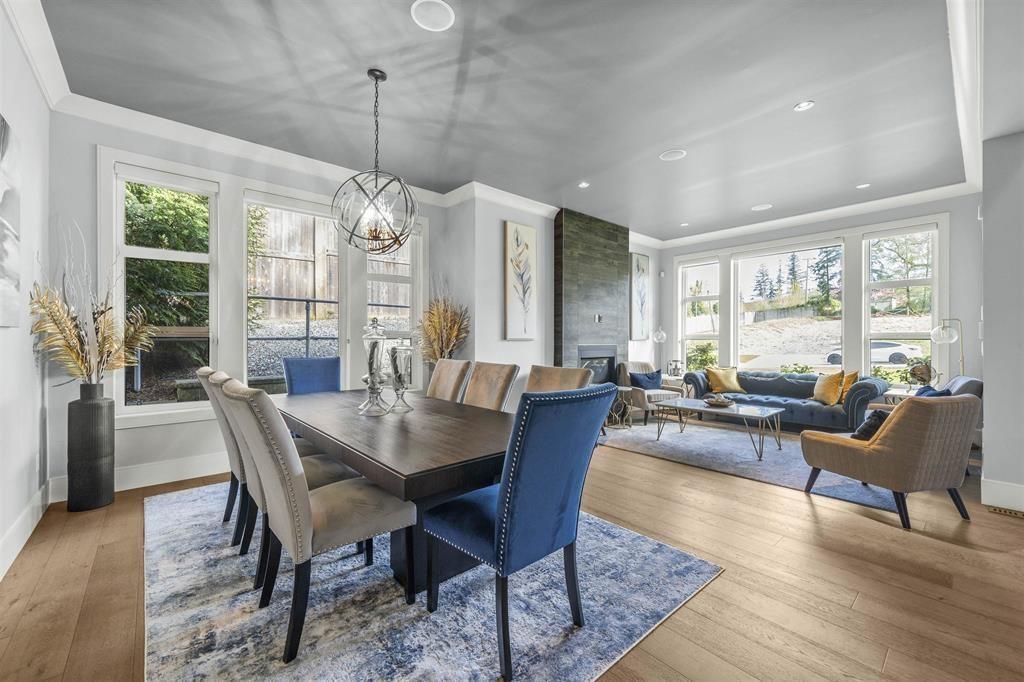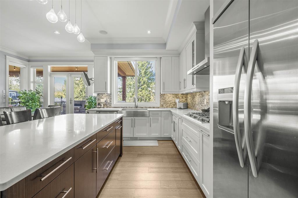Custom-Built luxury home on a RARE 1/2-acre CORNER LOT in Fraser Heights! This 6,532 sq. ft. home features 7 bedrooms, 6 bathrooms, soaring ceilings & hardwood floors. Gourmet kitchen boasts an oversized island, KitchenAid appliances, and a full spice kitchen. Enjoy a spacious family room with custom cabinetry and gas fireplace that opens to a large, covered deck boasting an entertainment center & outdoor kitchen. Private backyard is fully fenced and offers stunning views of the surrounding mountains. Upstairs, the grand primary suite offers a private balcony, two-way fireplace, and spa-inspired ensuite. Two separate suites below (2+1 bed) providing excellent rental income. Also featuring a 3-car garage w/ample parking in spacious driveway. Minutes to top schools, parks, & shopping, Hurry! (id:52823)