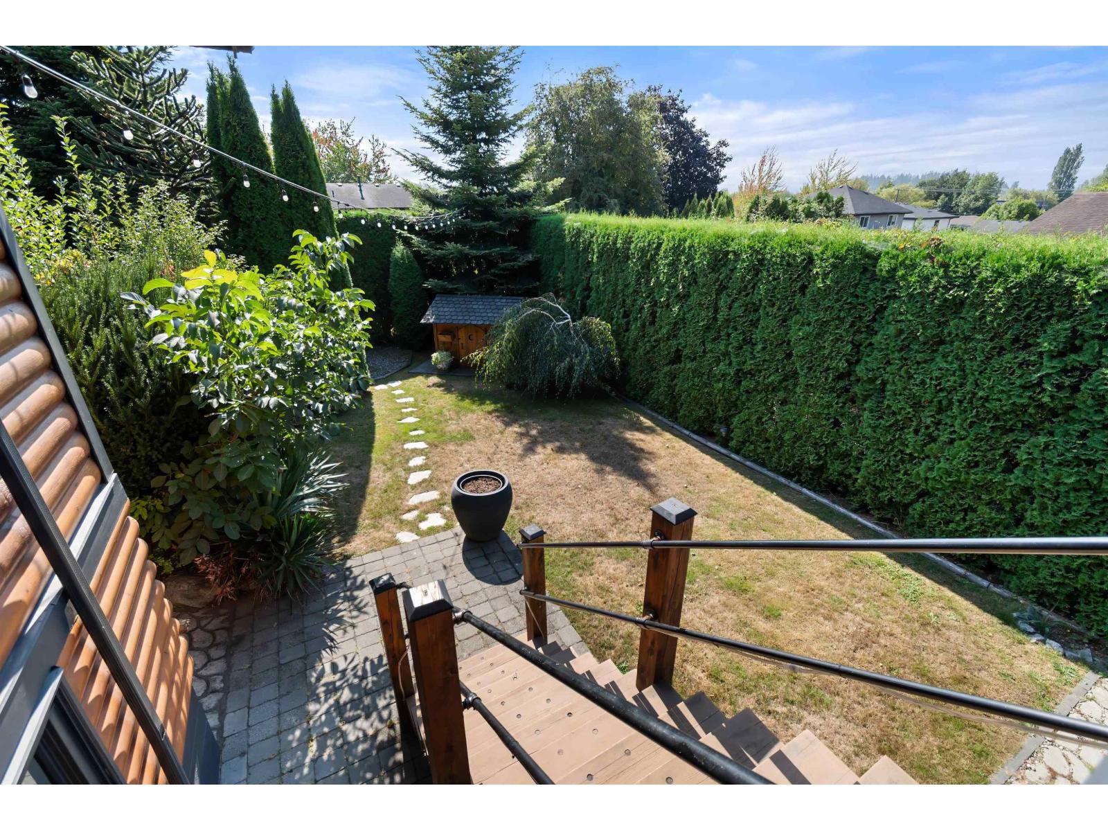 Welcome to this stunning home in Cloverdale's sought-after Hillside area! Sitting on a rare 9,800+ sq. ft. lot with 78 ft. of frontage and LANE ACCESS, this unique property offers incredible privacy and beautiful views. This 5-bedroom, 2-bath home has been exceptionally cared for. The main floor features a bright kitchen with plenty of natural light, a spacious living area, and a primary bedroom on the main. Downstairs offers excellent SUITE POTENTIAL with 3 bedrooms, an updated bathroom, large rec room, laundry, and SEPARATE ENTRY. Step outside to your park-like backyard, complete with mature trees, a spectacular rock water feature, and a custom hand-crafted detached workshop with loft. Out front you'll find loads of parking with spots available on both sides. A truly special property (id:52823)