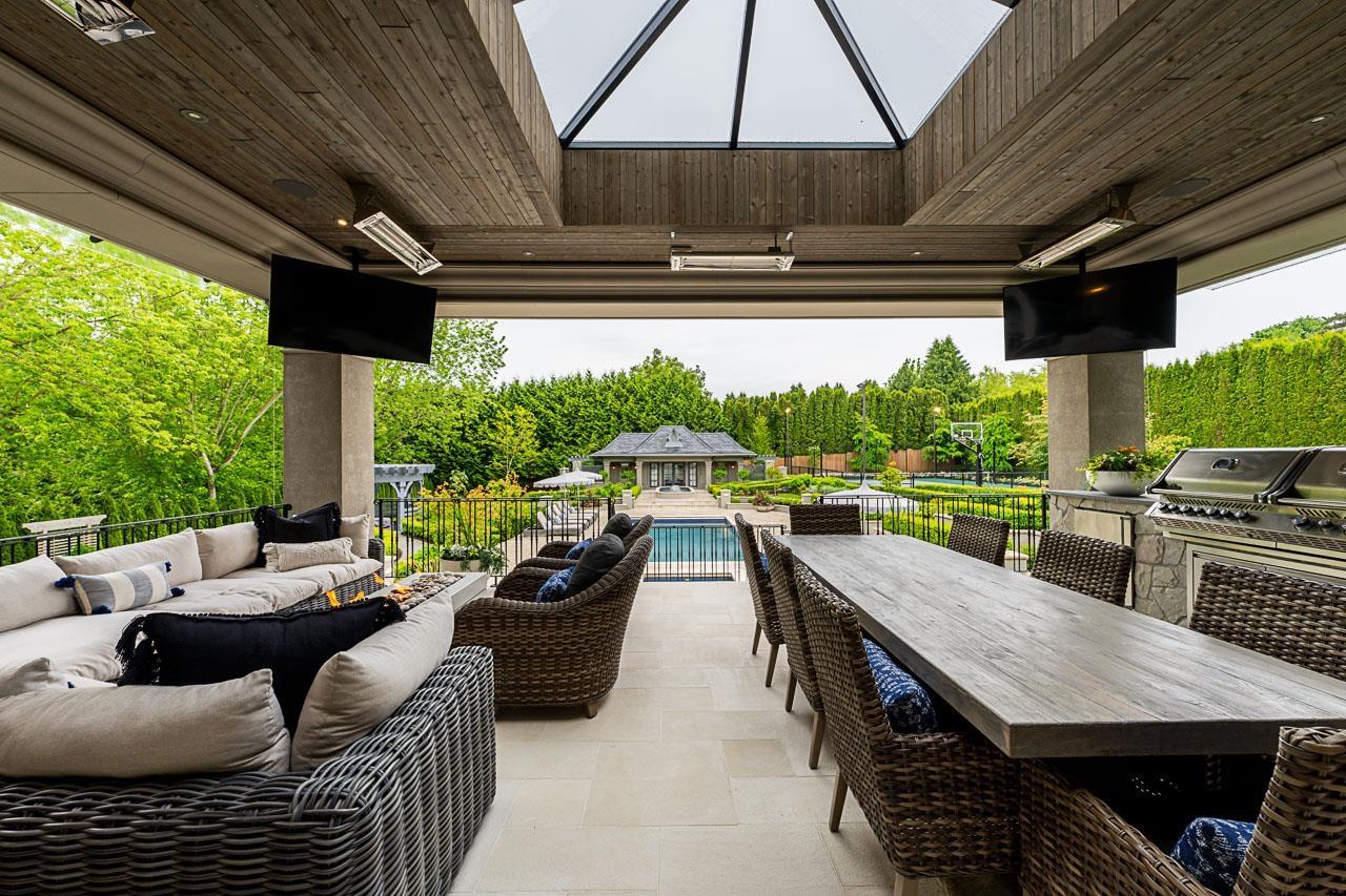 GRAY OWL MANOR; the Finest Estate Offering in the Lower Mainland. This 12,000+ sqft estate is the pinnacle of luxury living. Designed in a timeless French inspired aesthetic & situated on a gated acre manicured to perfection. Custom finishes inside and out for year-round entertaining. Full home automation, an elevator, rich millwork details, limestone fireplaces, temperature controlled wine room, home theatre, and a separate pool house complete with a golf-simulator. Open-concept great room, beautiful kitchen with a striking La Cornue range, and additional prep kitchen, formal dining room with a bar. 8 bedrooms total with the primary suite tucked away on the main floor, plus a two bedroom guest suite. Resort-like outdoor pool and hot tub, with a full sports court. A True Masterpiece! (id:52823)