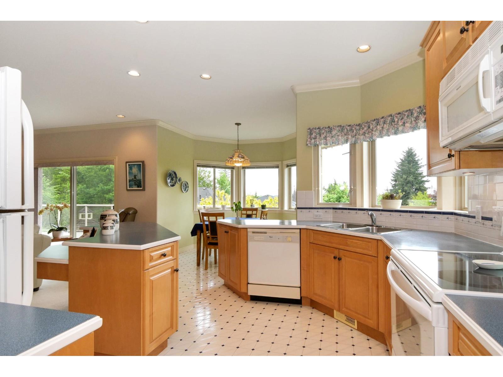 First time on the market. These original owners had this home custom built and it shows. Meticulously cared for Rancher with beautiful views from the main floor, plus a walk out basement. Ample space on the main floor with over 2100 square feet, master bedroom which has access to the deck that overlooks a fully landscaped yard plus the gorgeous view. There are 2 more bedrooms plus oversized living dining and family room. Lots of possibilities in the finished basement ( last floorplan picture is of a possible suite layout in the walk out basement). Great quiet location, yet only minutes to golf shopping schools and transit. Quick possession possible! (id:52823)