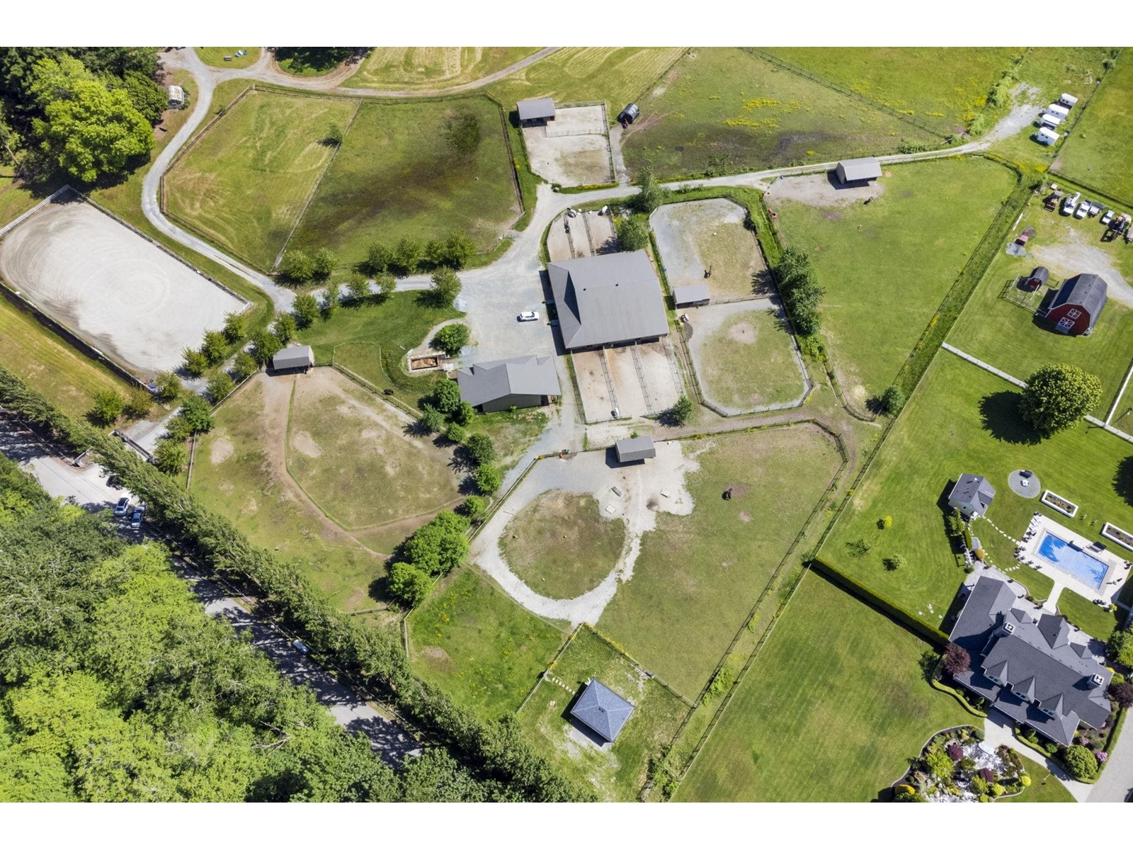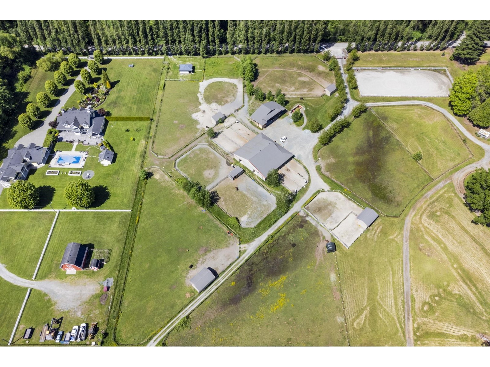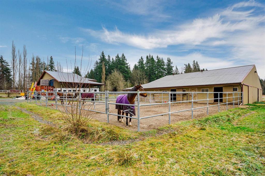Situated on a peaceful neighbourhood in South Surrey - this exceptional 4.77 Acres offers a rare opportunity to own a spacious and flat parcel in a prime location of South Surrey White Rock. Enjoy the privacy of the serene setting while remaining just 6 to 10 minutes drive from key amenities like Grandview Aquatic Centre, Grandview Shopping, and Morgan Crossing. This property is perfect for building your dream Home or as a valuable investment with a possible future Industrial development Potential. A fantastic opportunity to build your dream home plans are available for an 8,118 sqft estate home, with a bldg permit already issued. This property is perfect for a hobby farm or equestrian facility, featuring 3 buildings: a 15-stall barn, a storage barn, and a charming 401 sqft cottage. (id:52823)