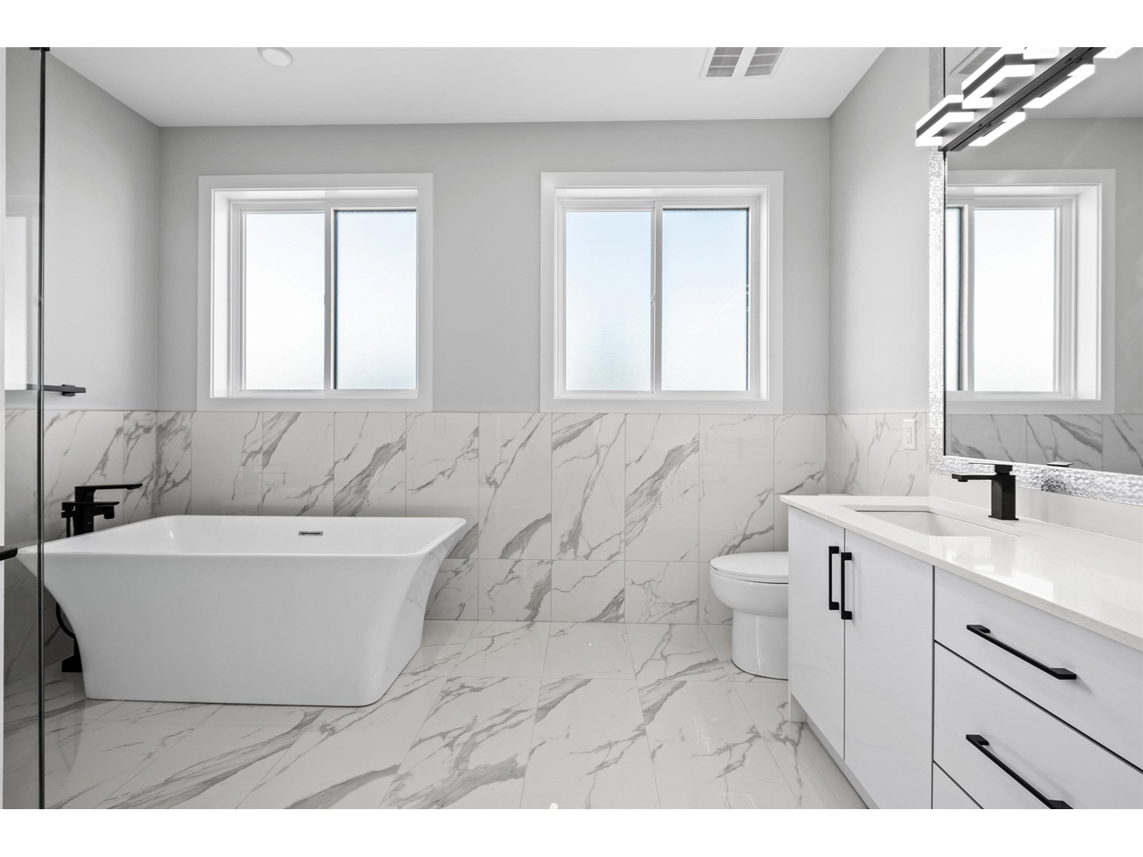 Brand-new 8bed/9bath luxury home in Cloverdale-your dream investment! Stunning modern design with open-concept living/dining featuring high ceilings and natural light. Gourmet kitchen with high-end appliances, quartz counters, and separate spice kitchen. Main-floor master bedroom with ensuite. Upstairs: four master suites, each with walk-in closets and private baths, plus convenient laundry room. Two self-contained basement suites (2bed + 1bed) offer excellent mortgage-helper income. Plus, a rec room with wet bar-perfect for entertaining or future customization. Located on a quiet street minutes from the future SkyTrain, quality schools, parks, shopping, restaurants, and major routes. Double garage, landscaped yard, ideal for families or investors. (id:52823)