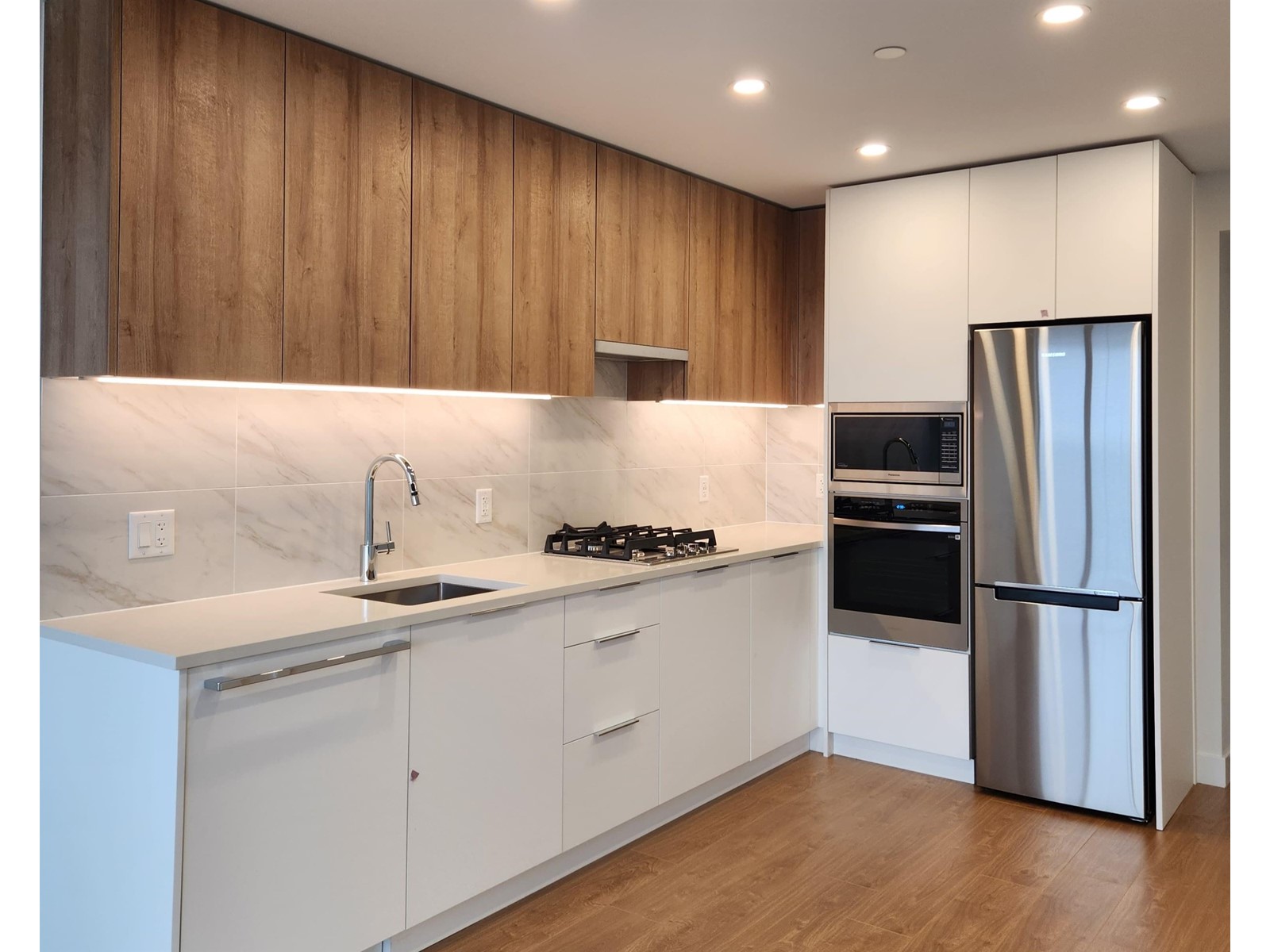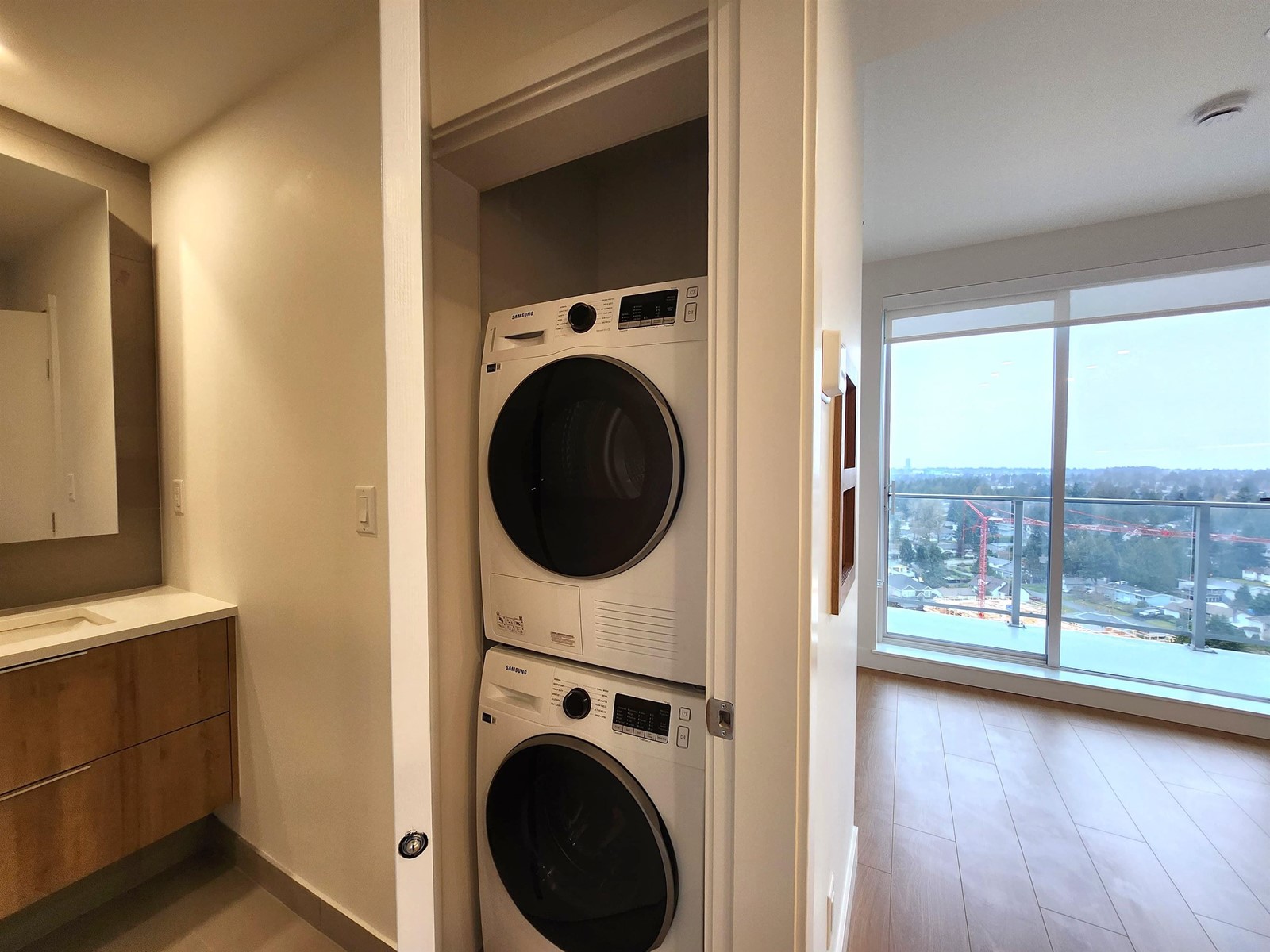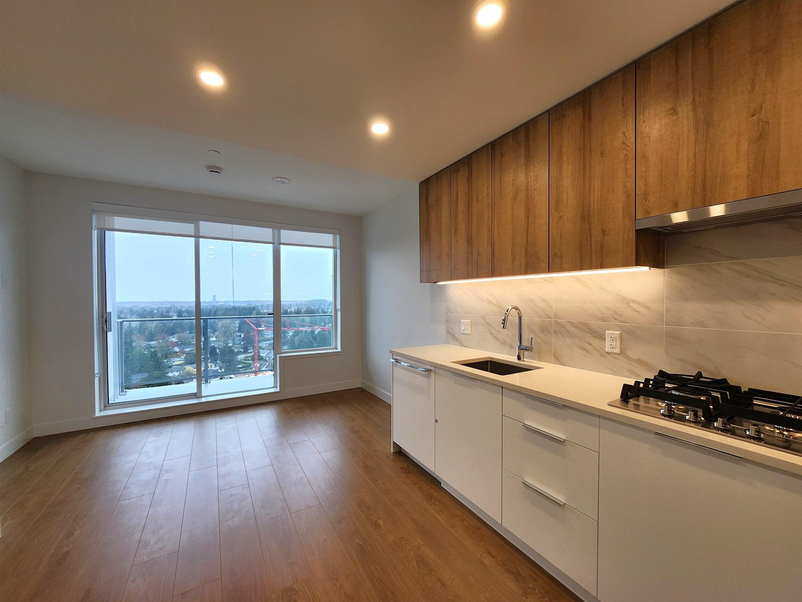 Brand New Luxury Condo at Holland Two - Top Floor with Stunning Views! modern 1 bed, 1 bath home (449 sq.ft living+ 57 sq.ft) in the heart of Surrey City Centre. Enjoy a bright open layout with engineered hardwood floors, quartz countertops, gas range, and stainless steel appliances. Large windows and a spacious covered balcony offer breathtaking city views.Located just steps from Holland Park, Surrey Central SkyTrain, Mall, SFU, the future UBC campus, and countless dining and shopping options. The building features over 19,000 sq. ft. of amenities including a gym, coworking space, and more. Air Conditioning, In-Suite Laundry, 1 Parking + 1 Locker. Experience Parkside Living in Surrey's Urban Core-this is luxury, location, and lifestyle combined. Book your private showing today! (id:52823)