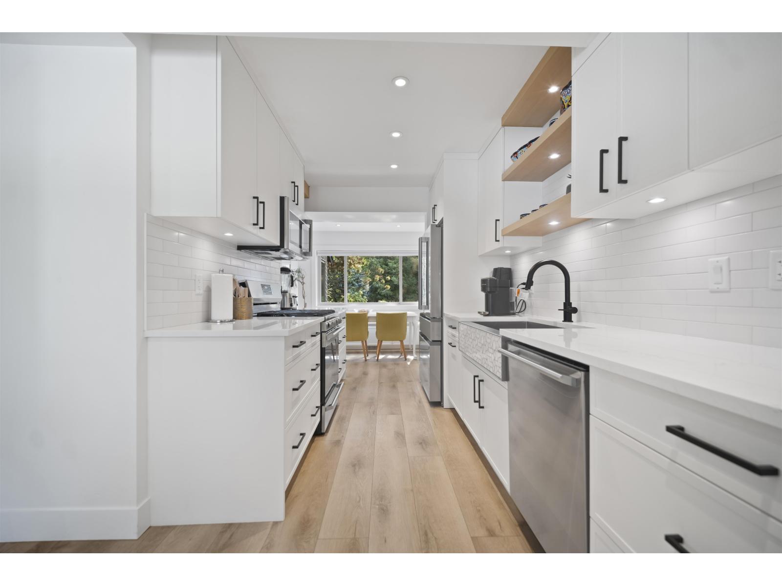$394 MonthlyPark-front Alderwood townhome renovated and move-in ready. The main level features a bright, open kitchen with quartz counters, under-cabinet lighting and a built-in dining seating, new lighting. Upstairs offers three bedrooms, a renovated bath and a handy laundry centre. The finished lower level adds real flexibility: An office/den, a family/media room, a home gym space and a new full bathroom. Upgrades also include vinyl plank flooring throughout, hot water on demand and popcorn ceilings removed. Park facing patio with a short walk to trails, courts (tennis and basketball) and ponds. Parking for 2 and ample visitor parking. ~5-min walk to Earl Marriott Secondary; near Peace Arch Elementary, shops and transit. Pet-friendly (2) and rentals allowed. Open House: Sat, March 4, 1 to 3 pm (id:52823)