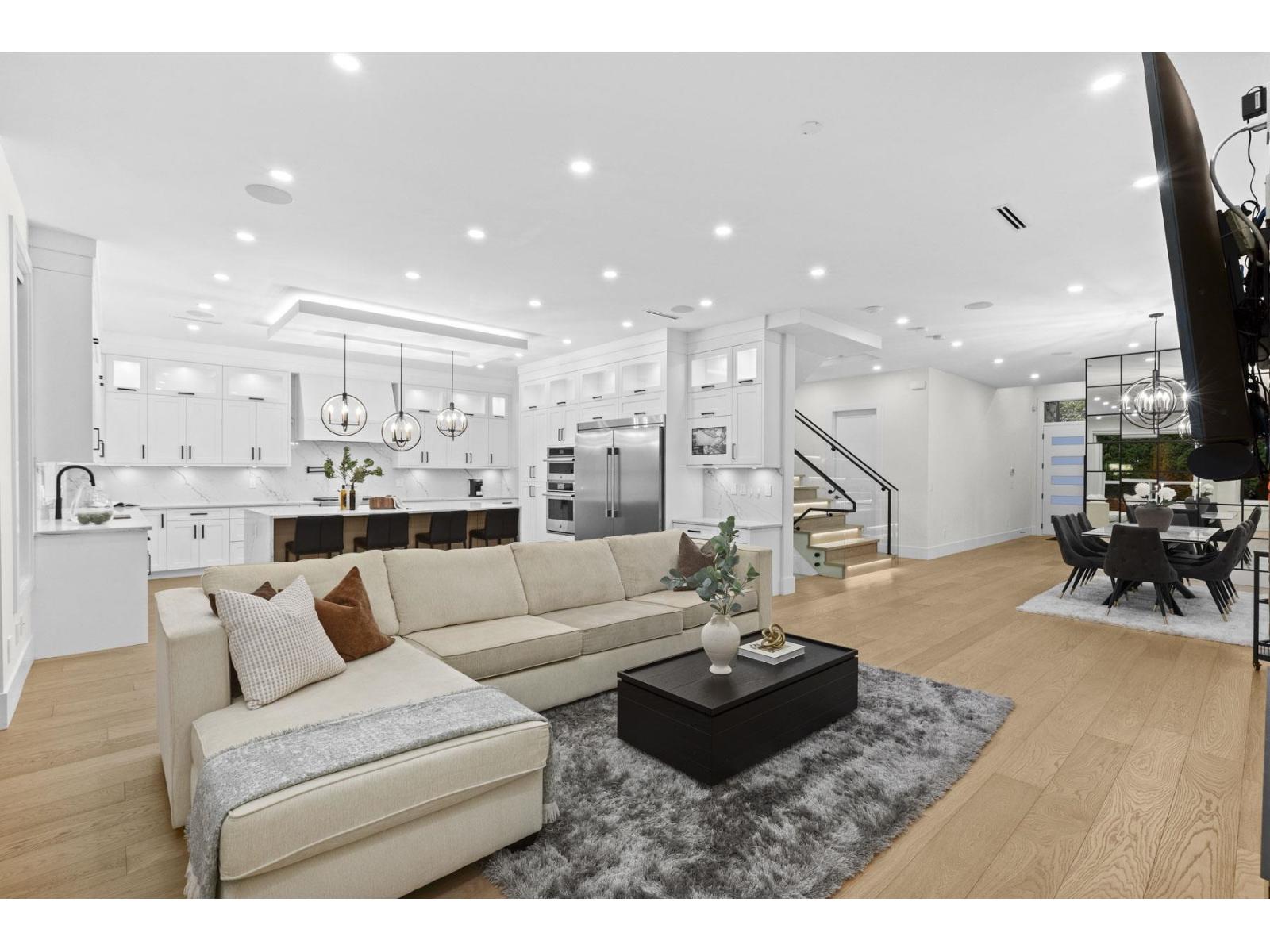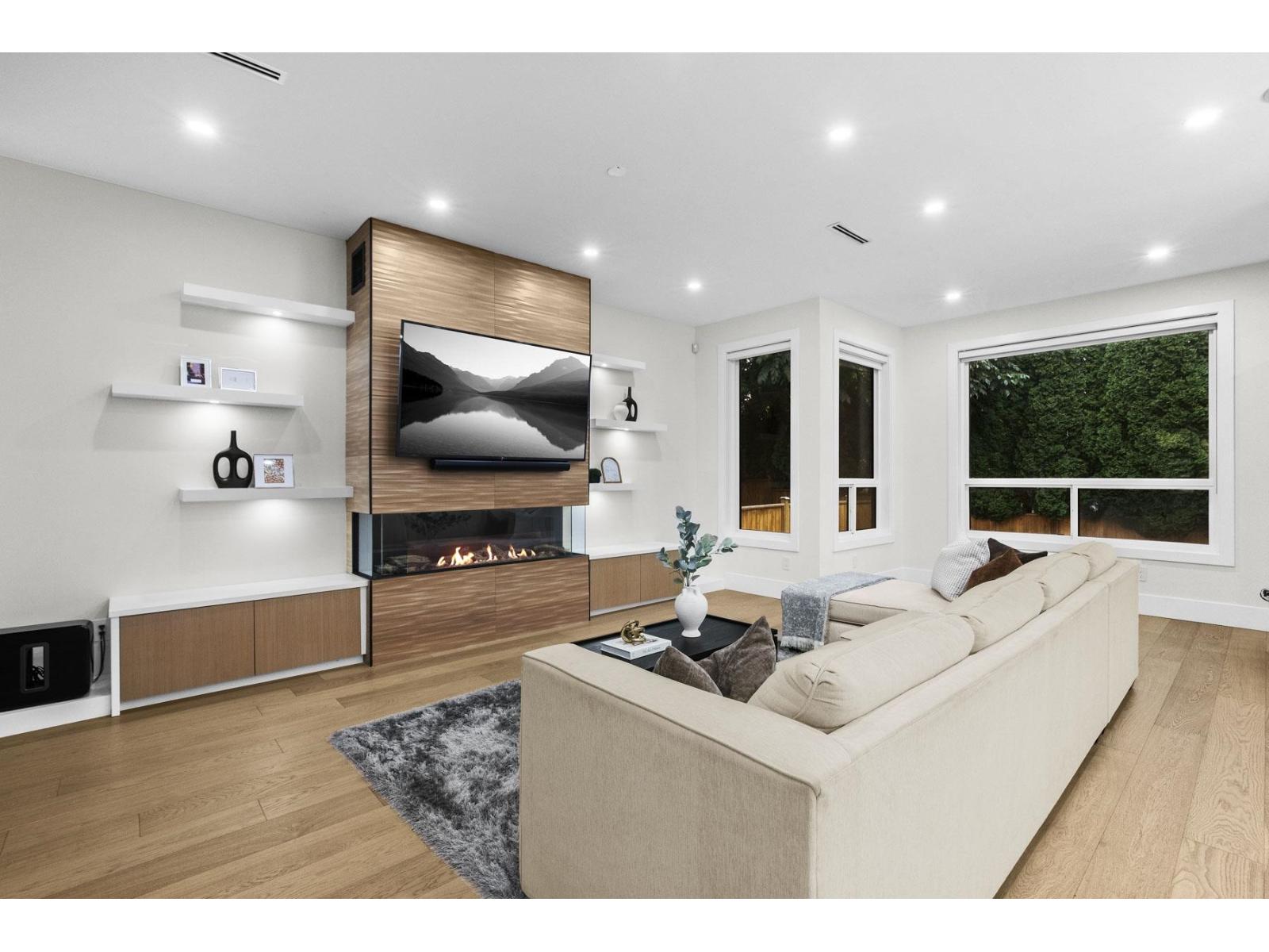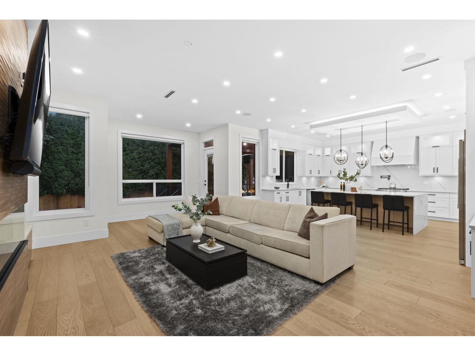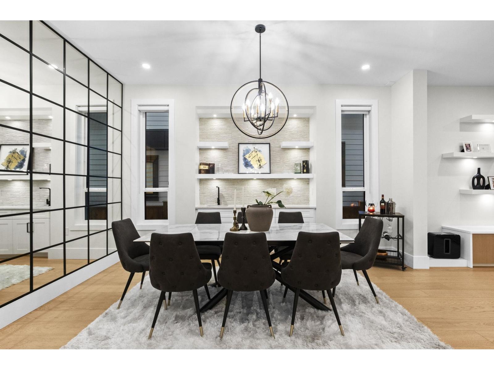 Welcome to The Haven, beautifully crafted custom-built home in Cloverdale! This contemporary beauty is finished with designer picked colours, high-end cabinetry, ultra-modern lighting system with modern design influences. The main floor features a seamless open concept layout with hardwood flooring, radiant heating & AC. The formal dining room adjacent to the family room features the gourmet kitchen along with a wok-kitchen and full-size commercial fridge. The nook leads to your south facing covered patio space featuring your custom-built outdoor BBQ kitchen. The upper level contains 4 large bedrooms with ensuites including the luxurious primary bedroom with double sink vanities. Below you will discover the theatre room with a full kitchen along with an additional 2 BDRM SUITE (2+1). (id:52823)
