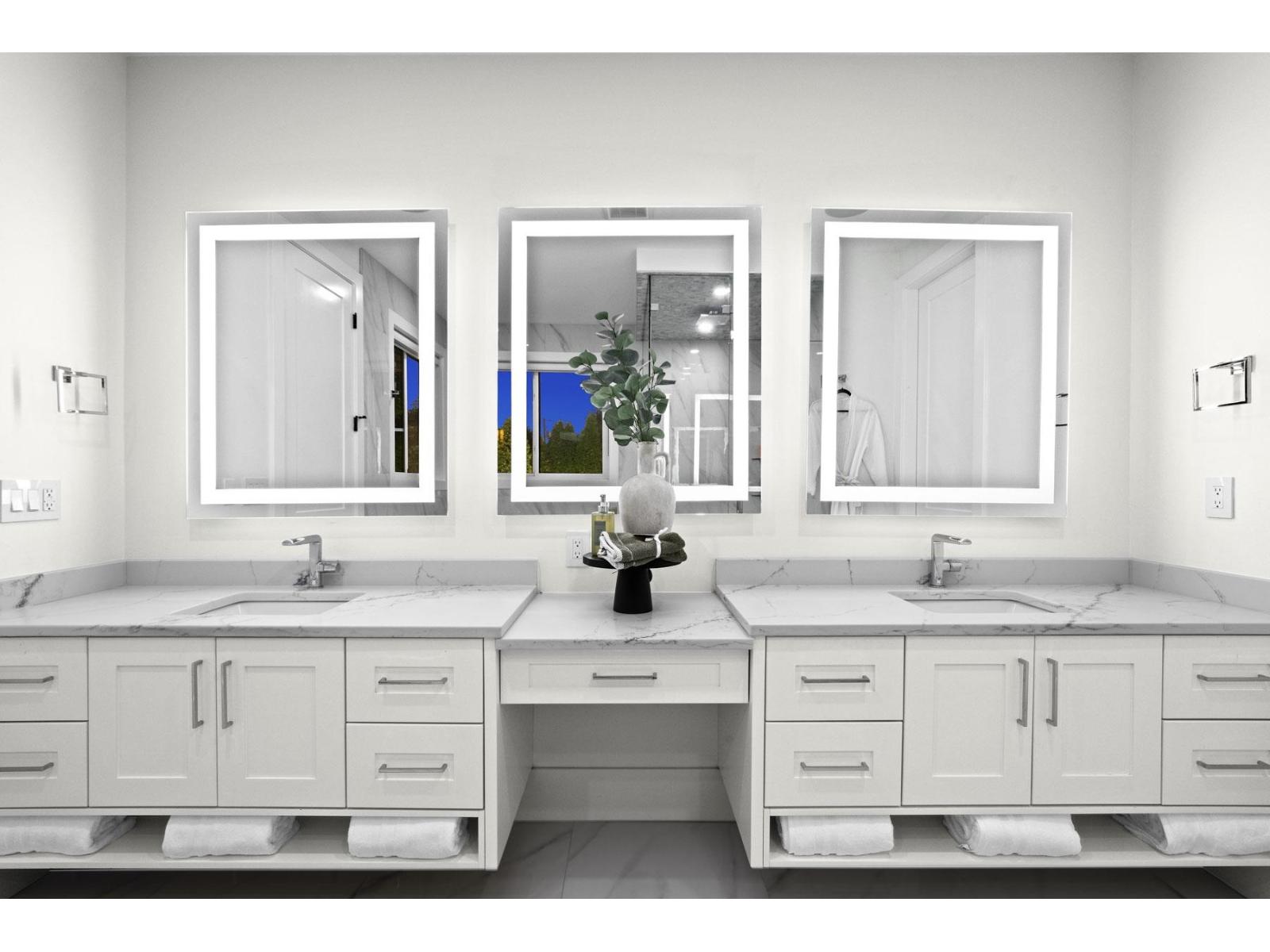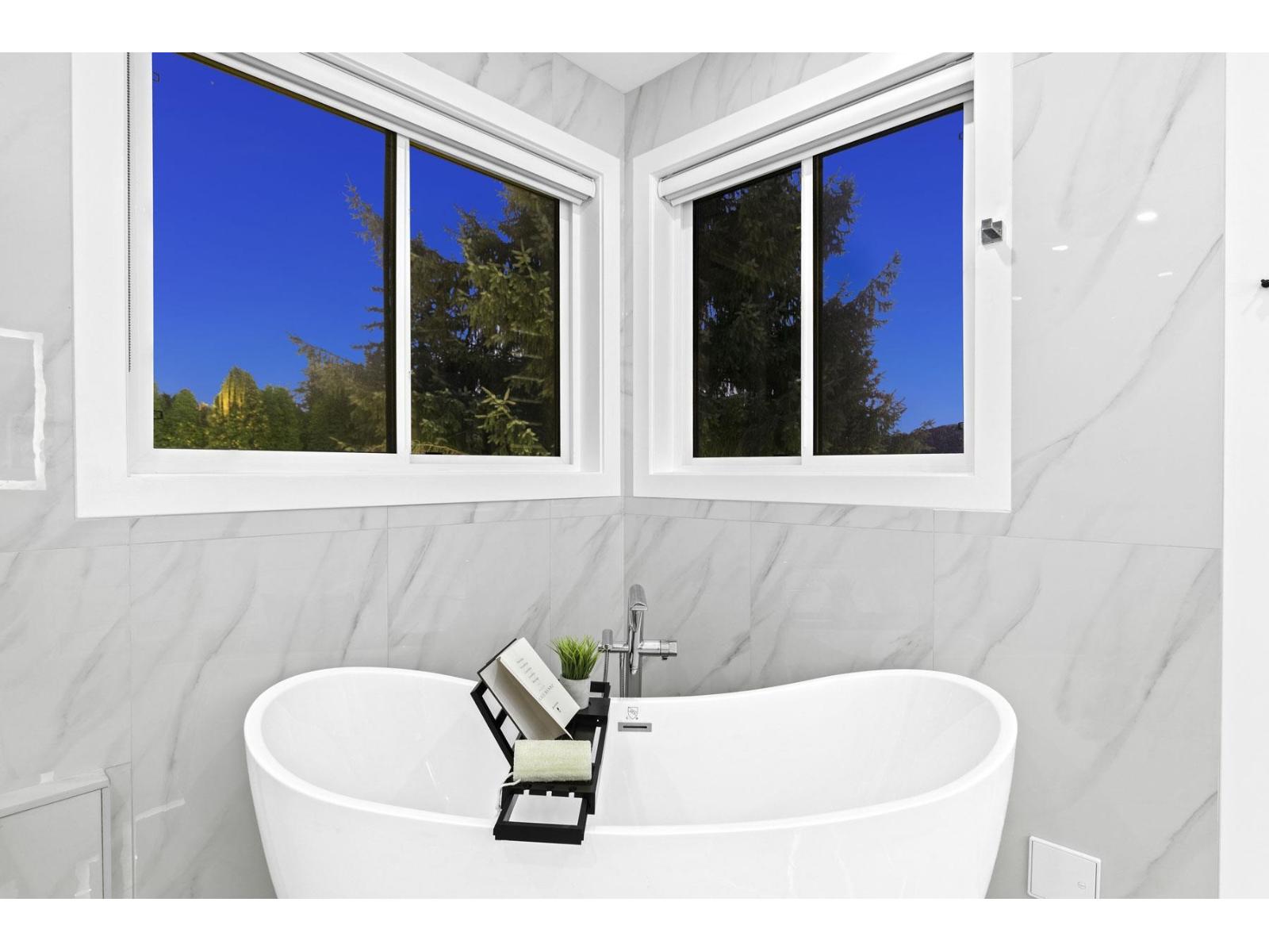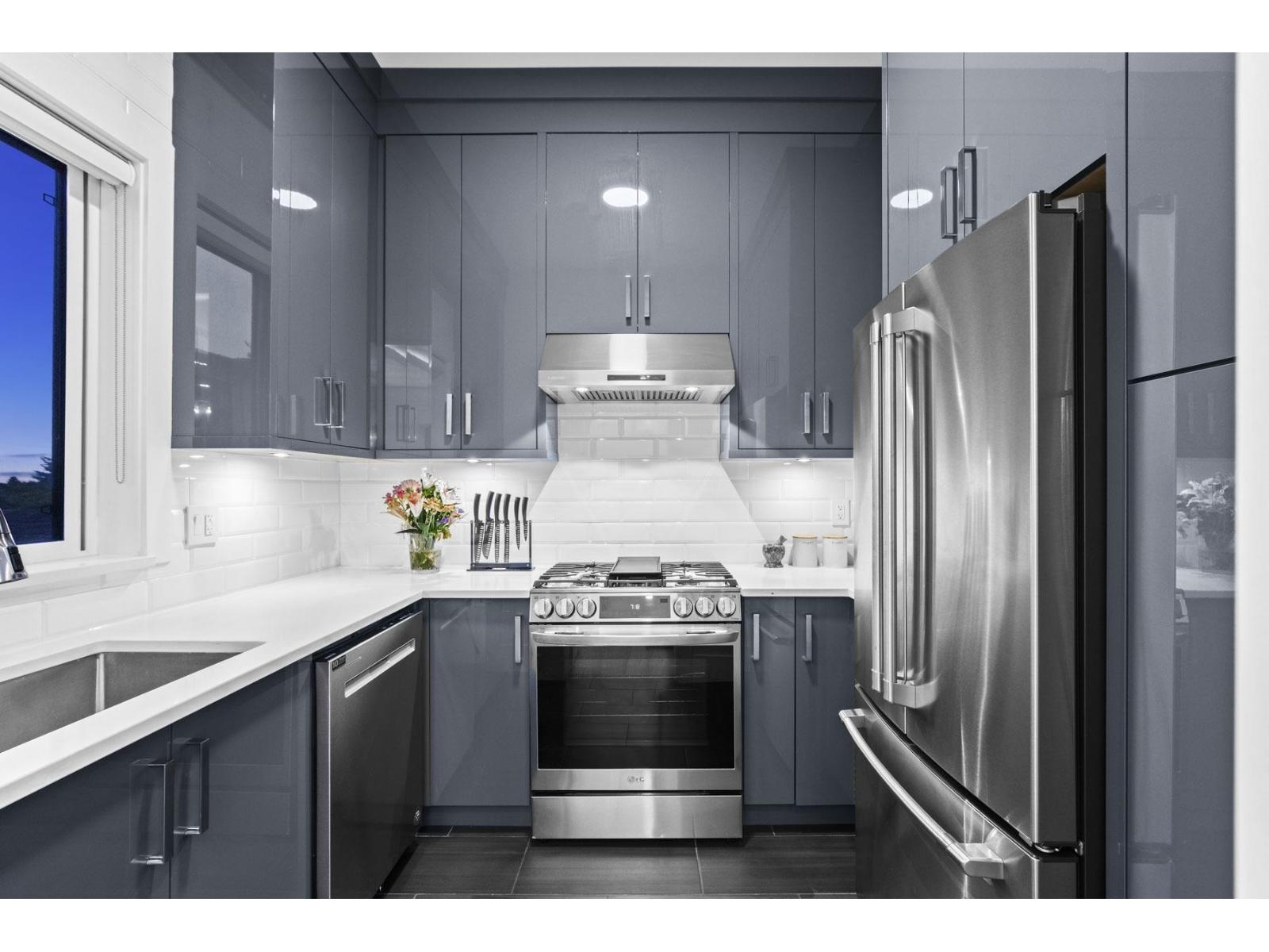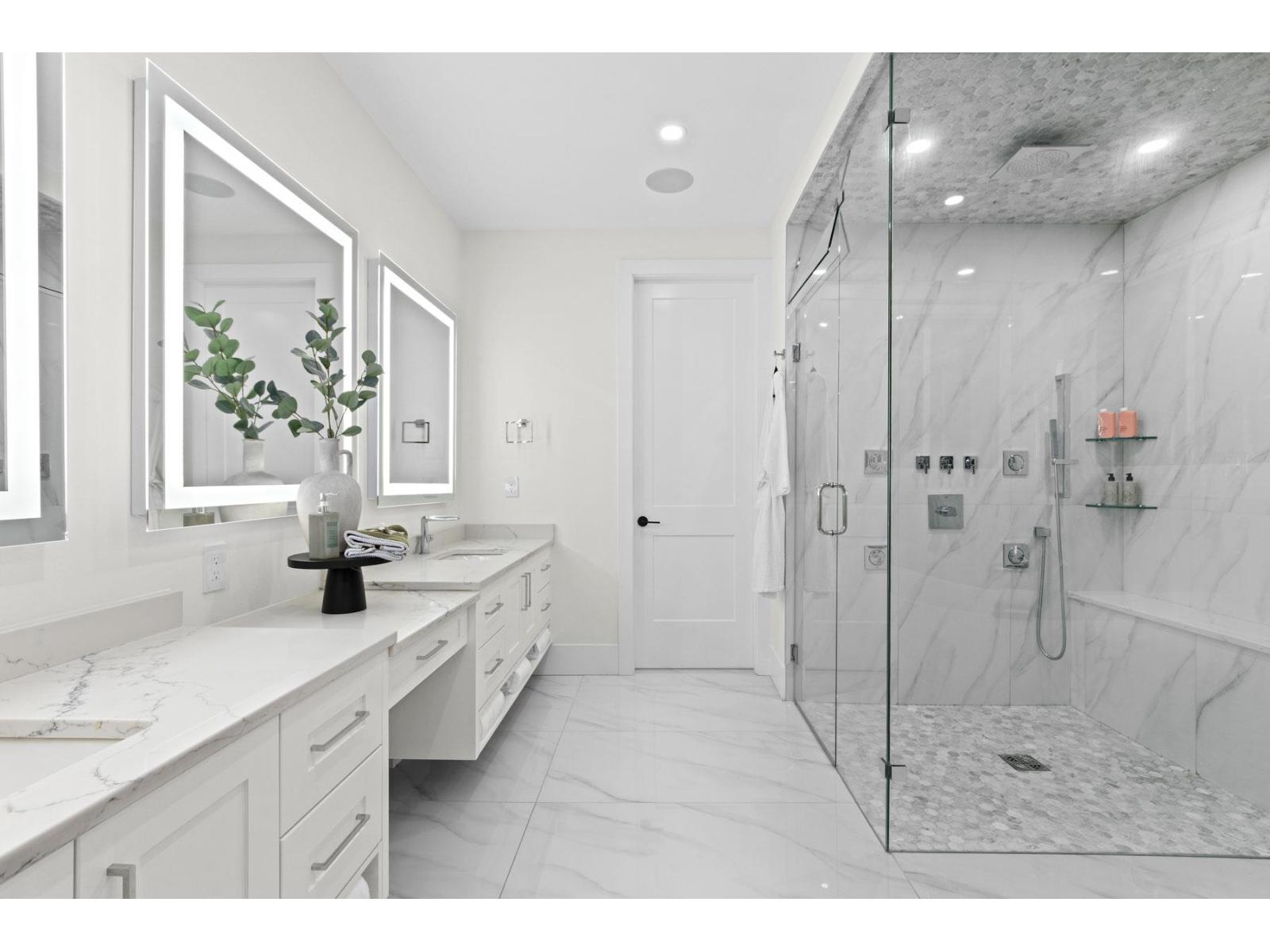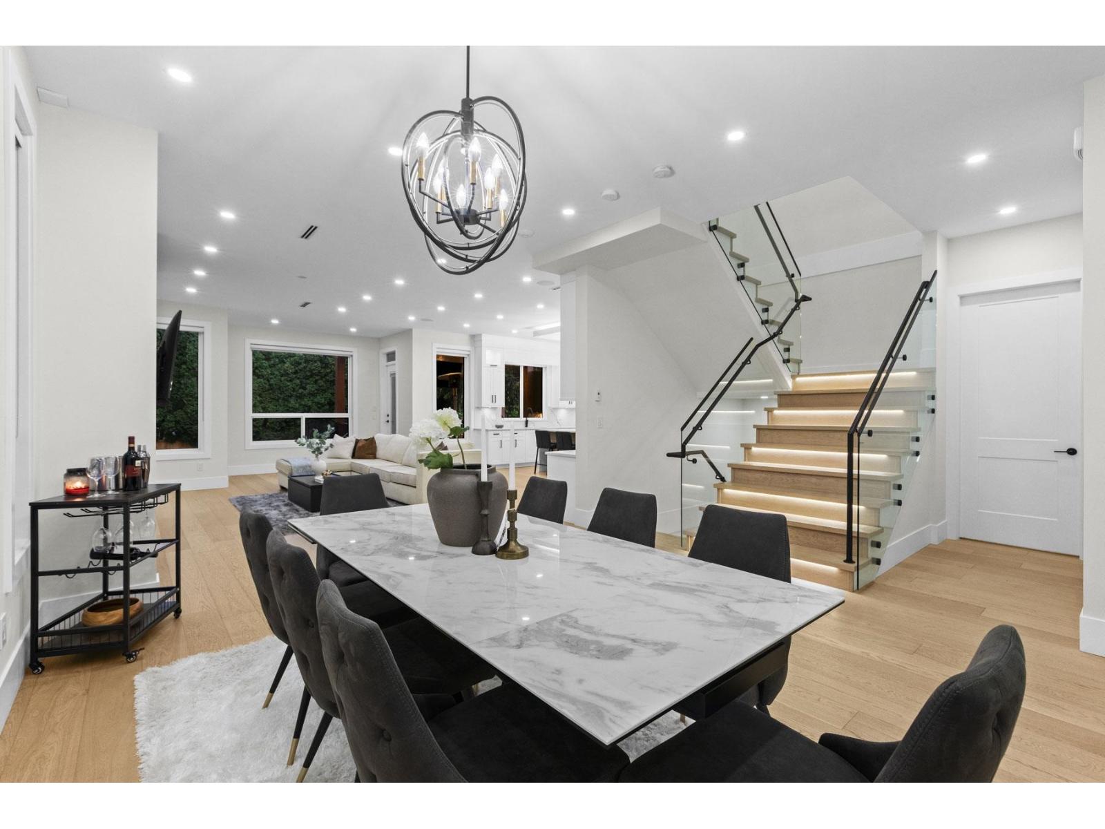 Welcome to The Haven, beautifully crafted custom-built home in Cloverdale! This contemporary beauty is finished with designer picked colours, high-end cabinetry, ultra-modern lighting system with modern design influences. The main floor features a seamless open concept layout with hardwood flooring, radiant heating & AC. The formal dining room adjacent to the family room features the gourmet kitchen along with a wok-kitchen and full-size commercial fridge. The nook leads to your south facing covered patio space featuring your custom-built outdoor BBQ kitchen. The upper level contains 4 large bedrooms with ensuites including the luxurious primary bedroom with double sink vanities. Below you will discover the theatre room with a full kitchen along with an additional 2 BDRM SUITE (2+1). (id:52823)
