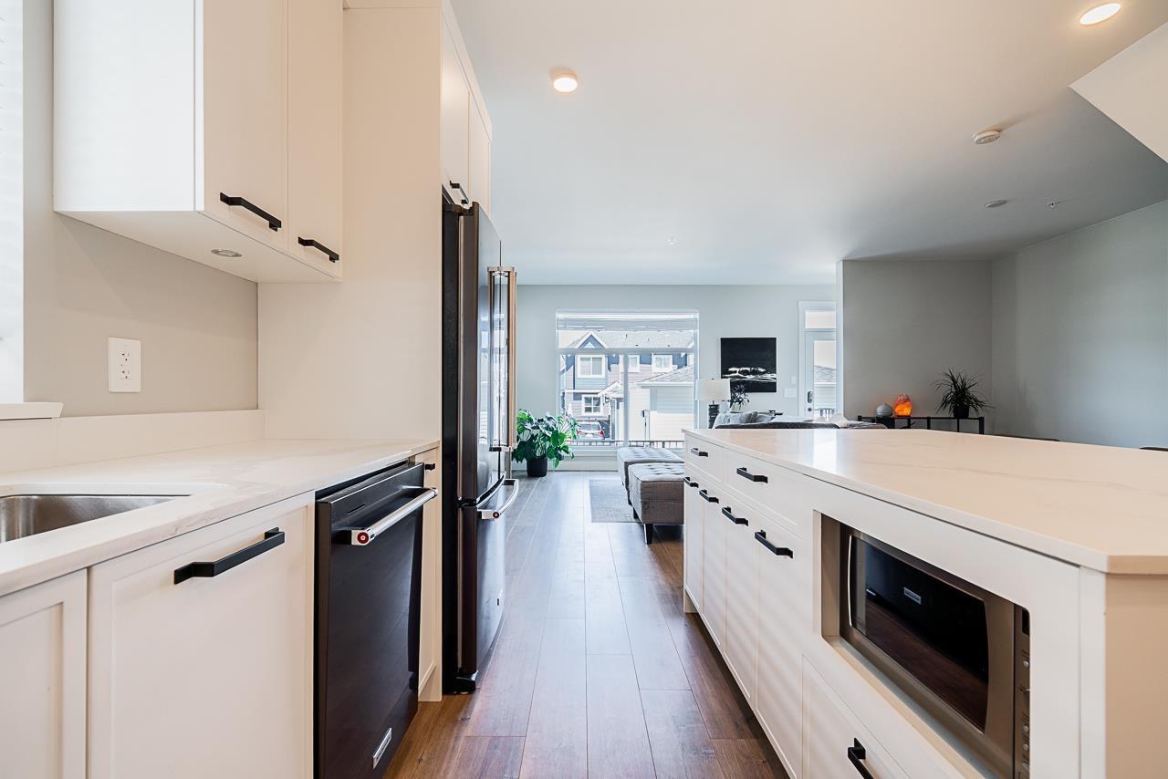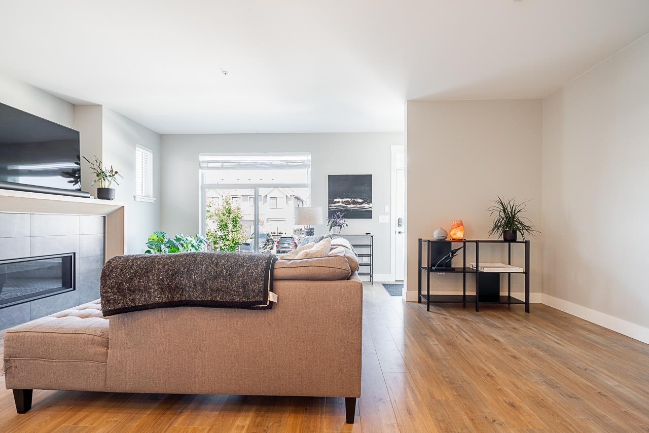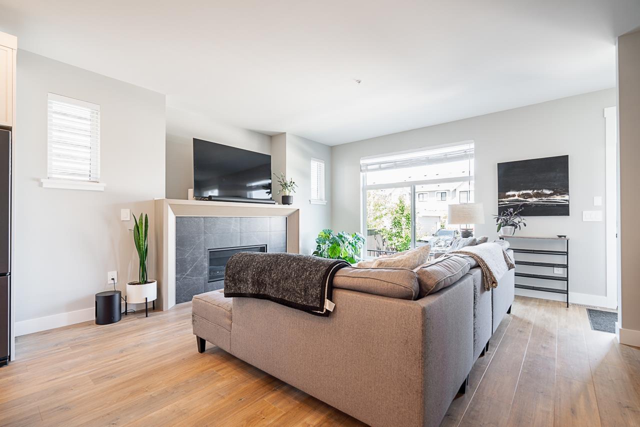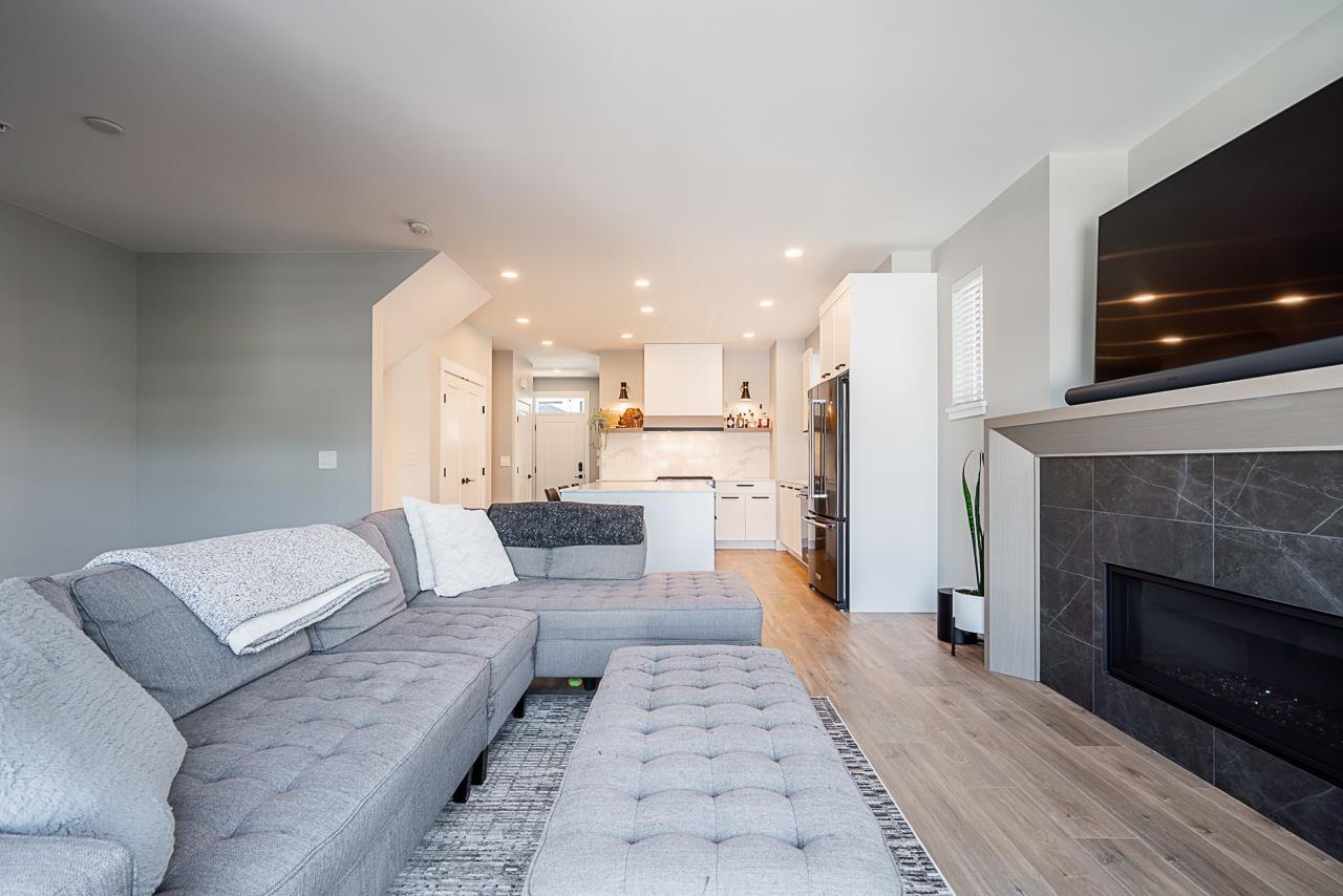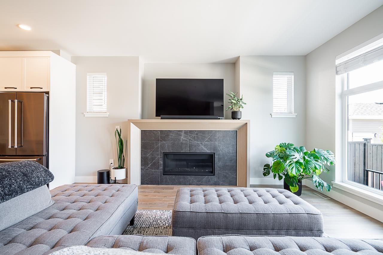 Welcome to Roots - a luxurious, move-in-ready non-strata rowhome in thriving West Langley! NO GST - this stunning home has been lightly lived in and shows like new. Enjoy 9' ceilings, a fully finished basement, and an efficient gas heating/hot water system. The chef's kitchen is a showstopper with black KitchenAid appliances, quartz counters, full-height backsplash, and floating wood shelves. Cozy up by the gas fireplace with custom mantle and tile surround. Thoughtful design, high-end finishes, and unbeatable value just minutes from Willoughby's shops and amenities. Don't miss this one! (id:52823)