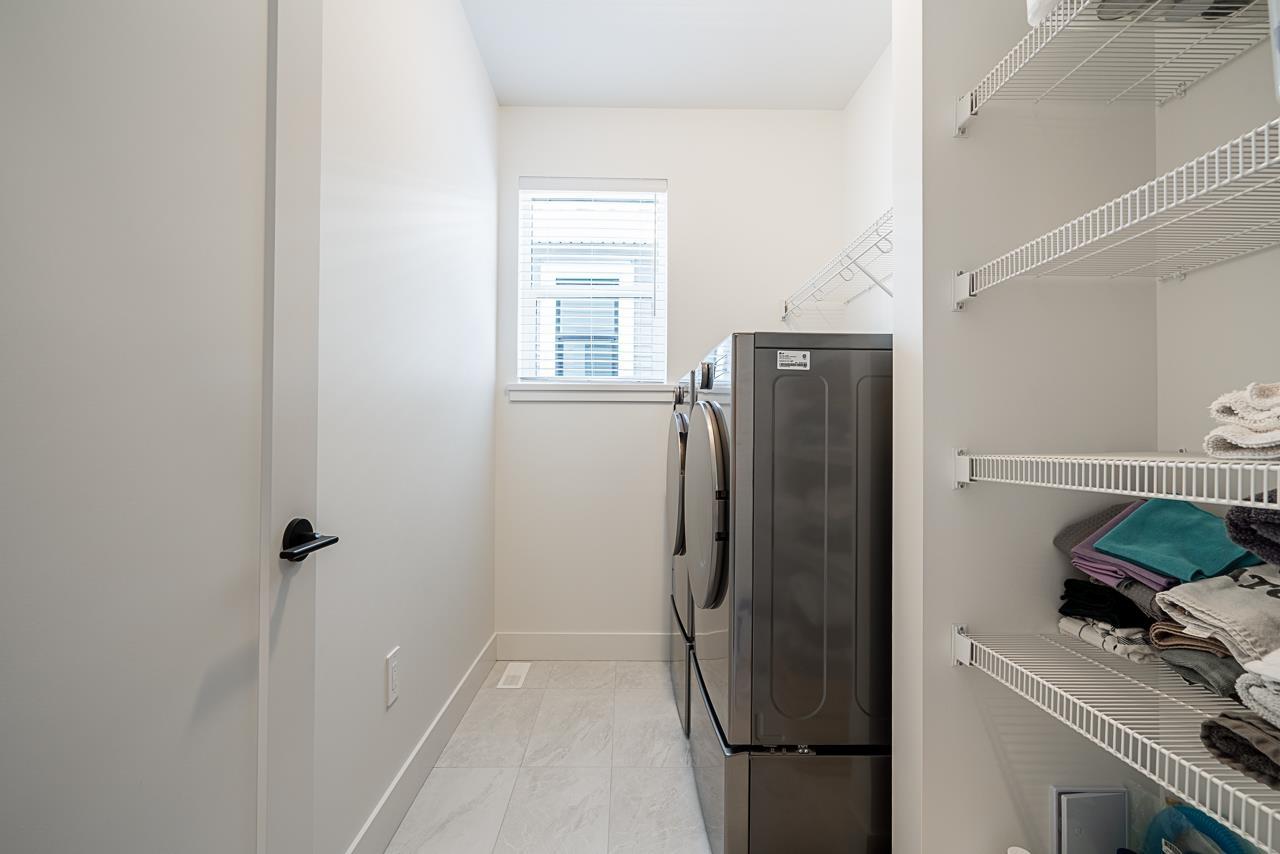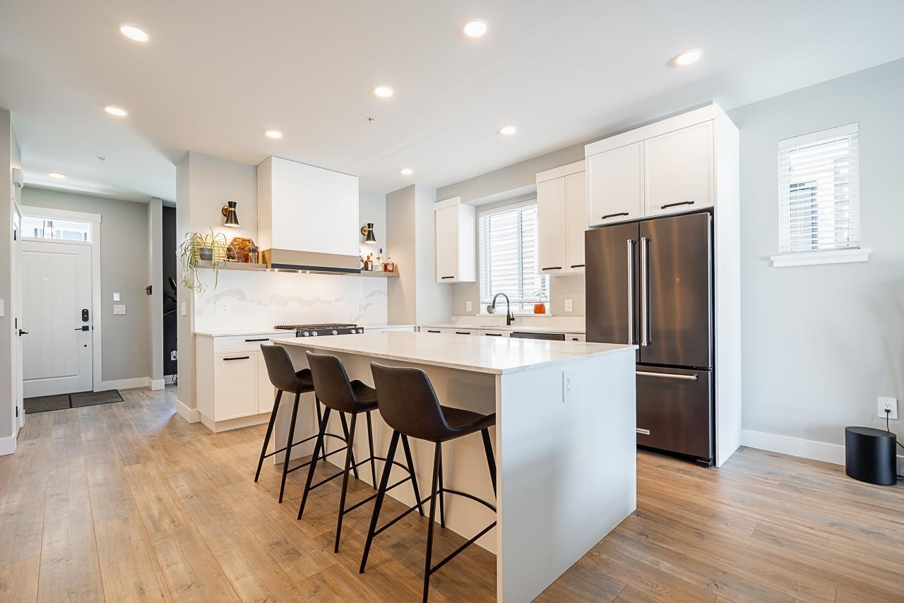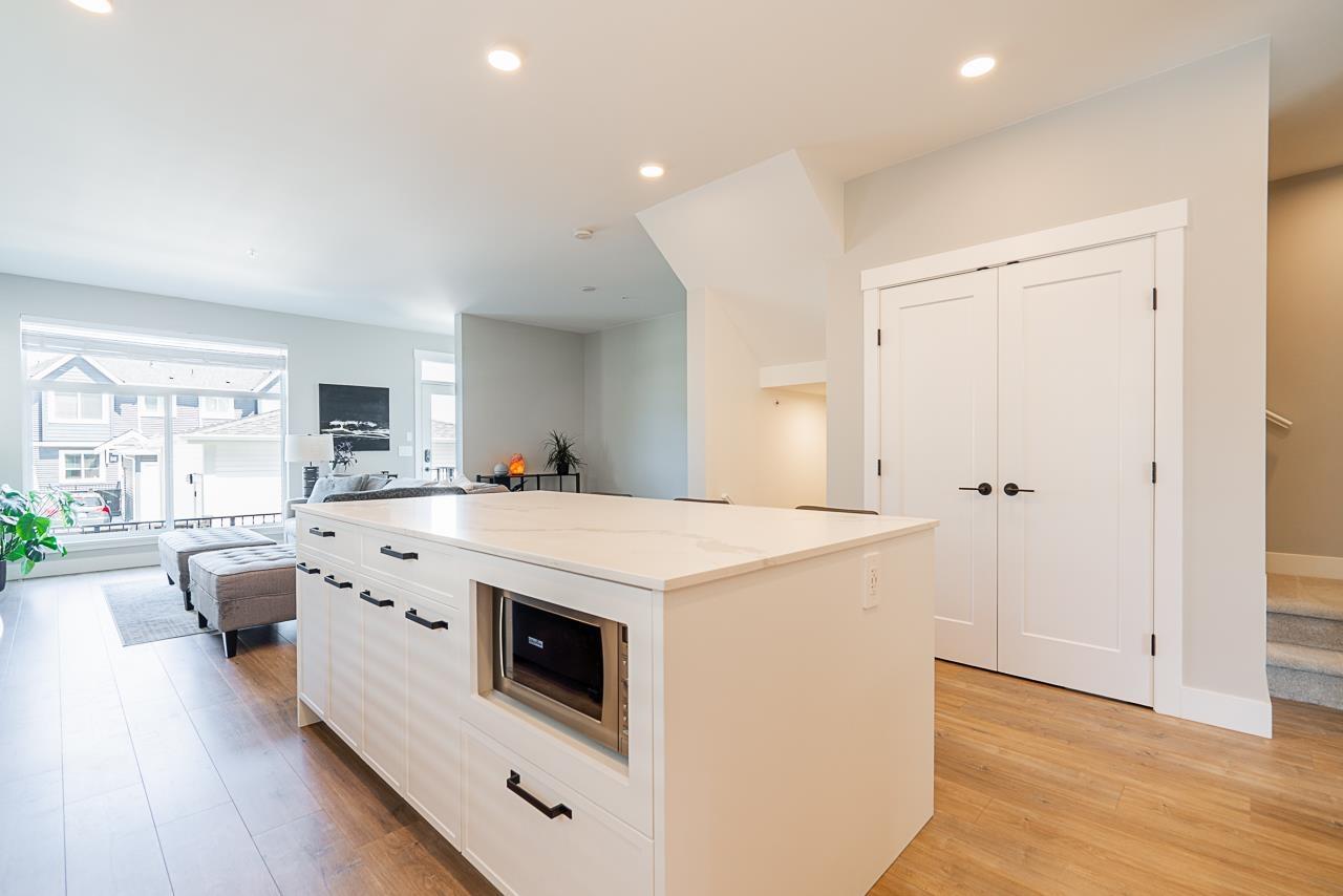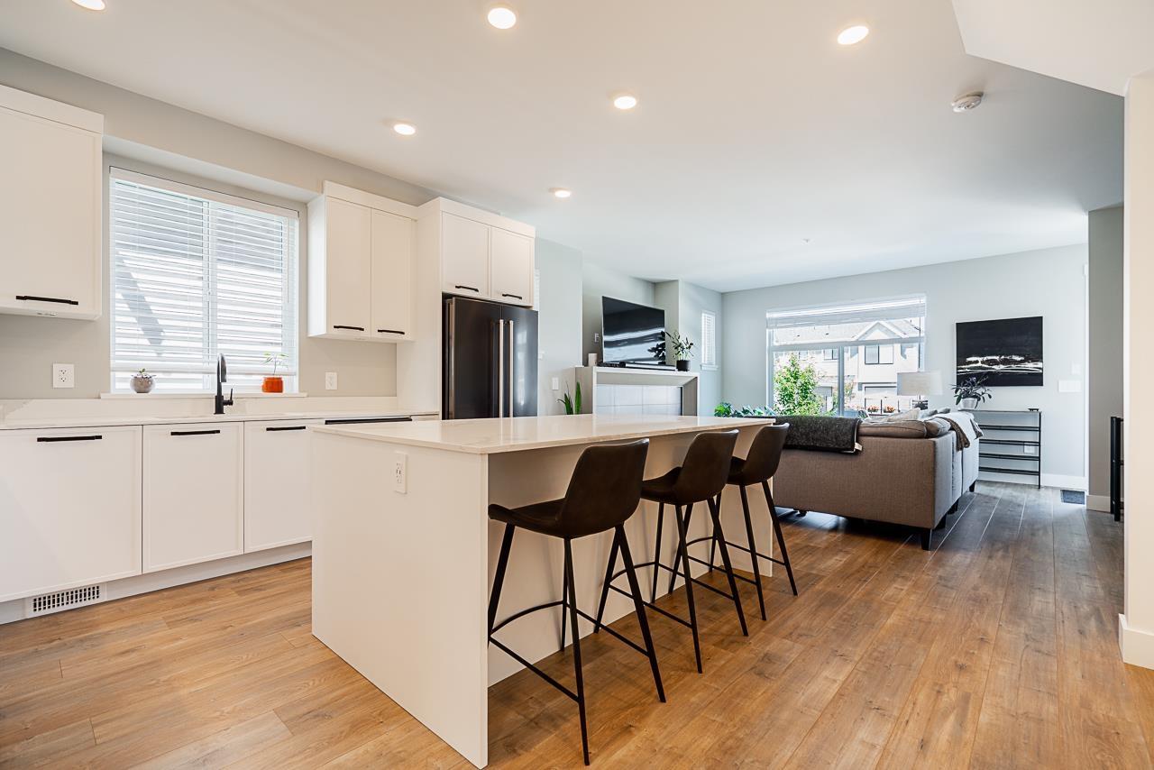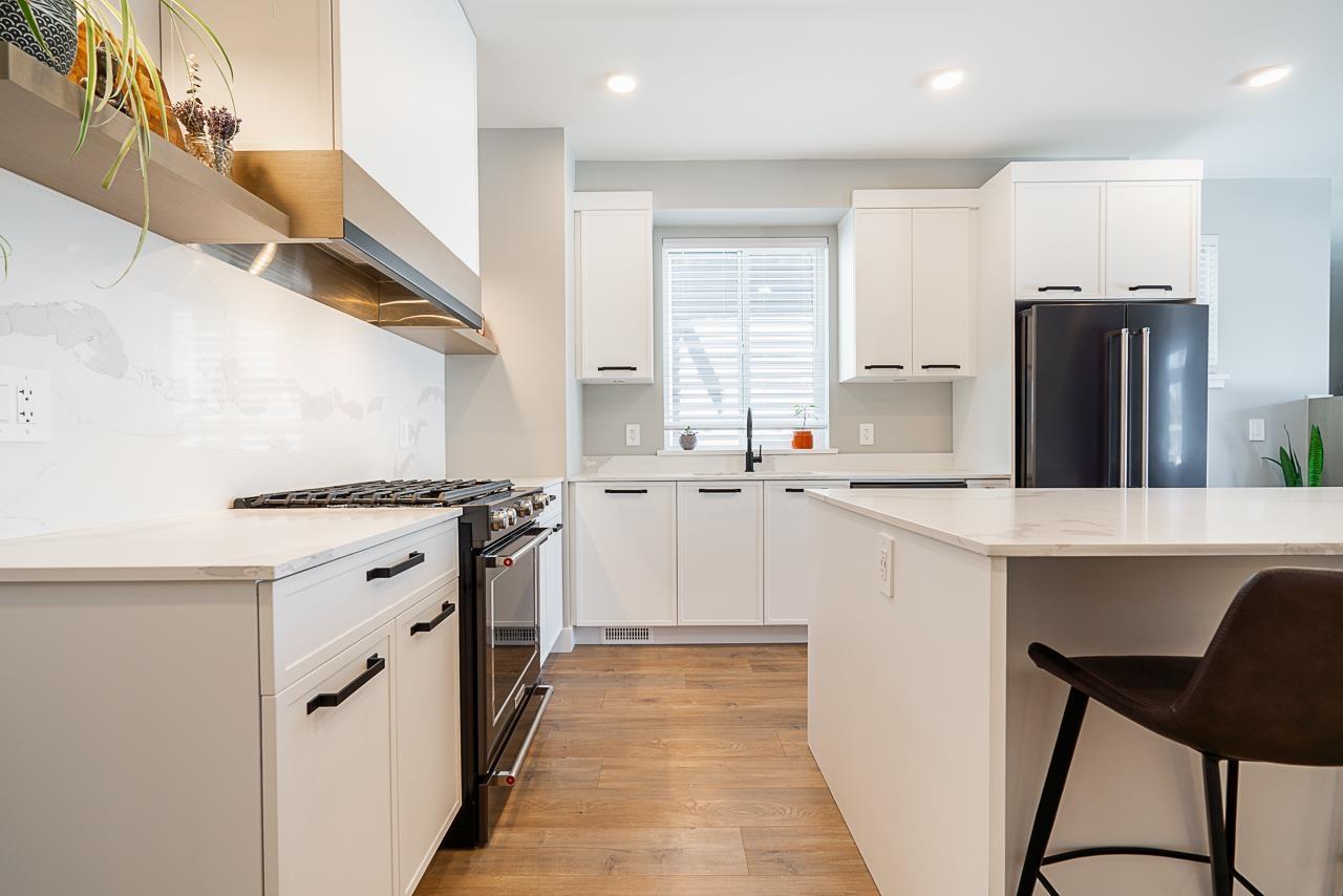 Welcome to Roots - a luxurious, move-in-ready non-strata rowhome in thriving West Langley! NO GST - this stunning home has been lightly lived in and shows like new. Enjoy 9' ceilings, a fully finished basement, and an efficient gas heating/hot water system. The chef's kitchen is a showstopper with black KitchenAid appliances, quartz counters, full-height backsplash, and floating wood shelves. Cozy up by the gas fireplace with custom mantle and tile surround. Thoughtful design, high-end finishes, and unbeatable value just minutes from Willoughby's shops and amenities. Don't miss this one! (id:52823)