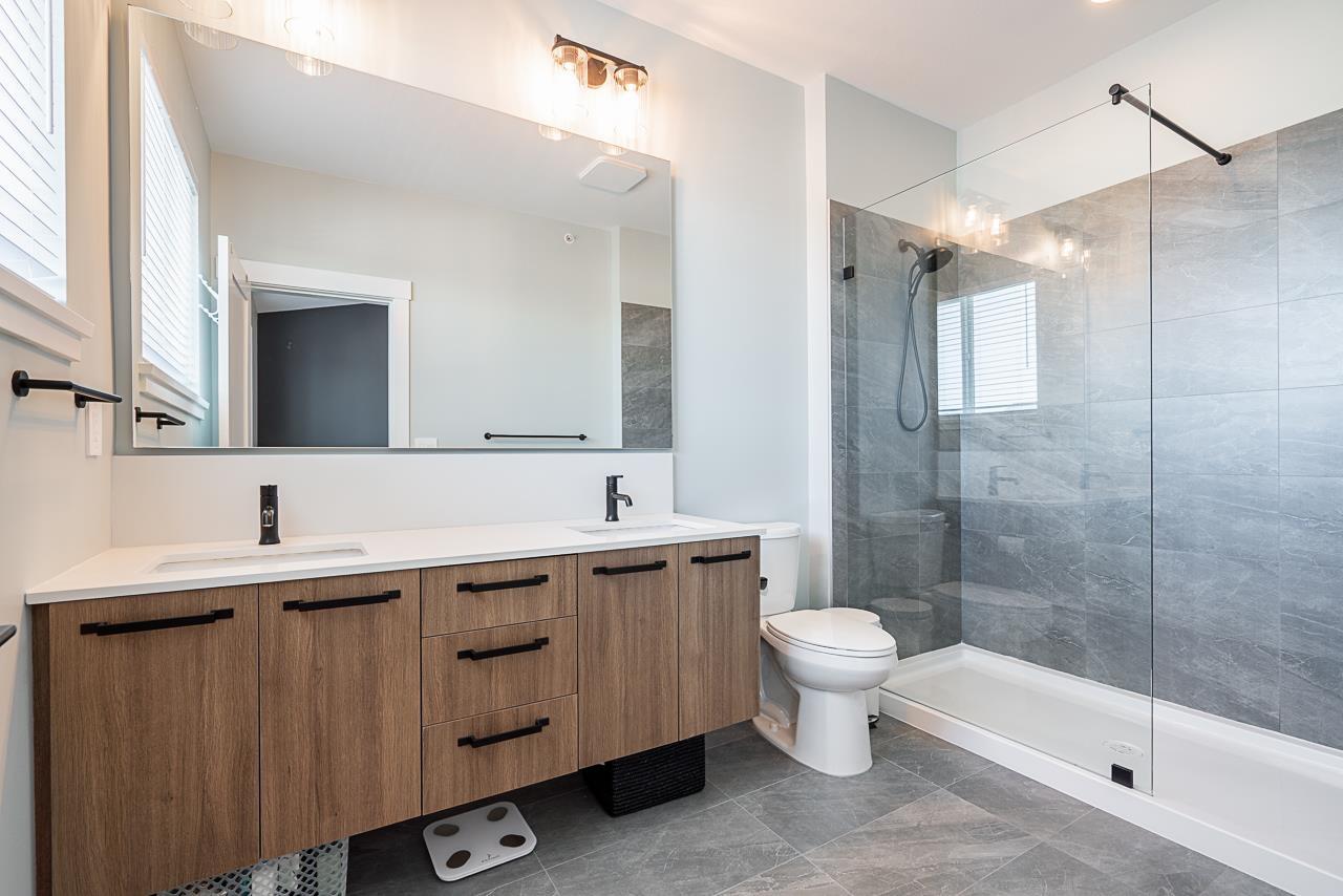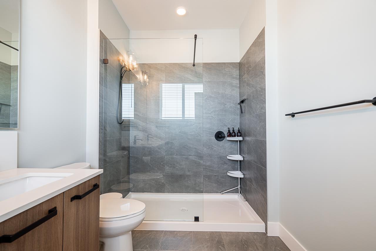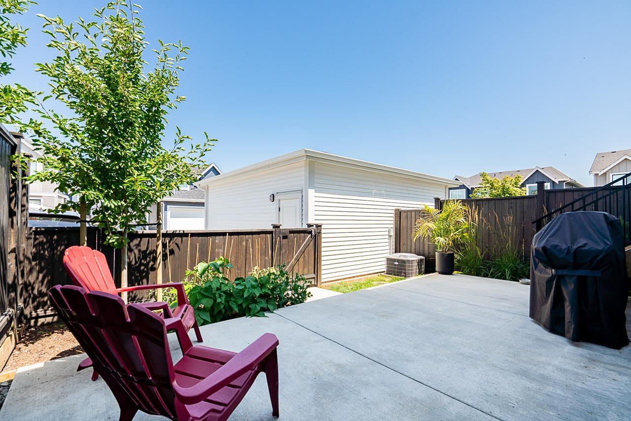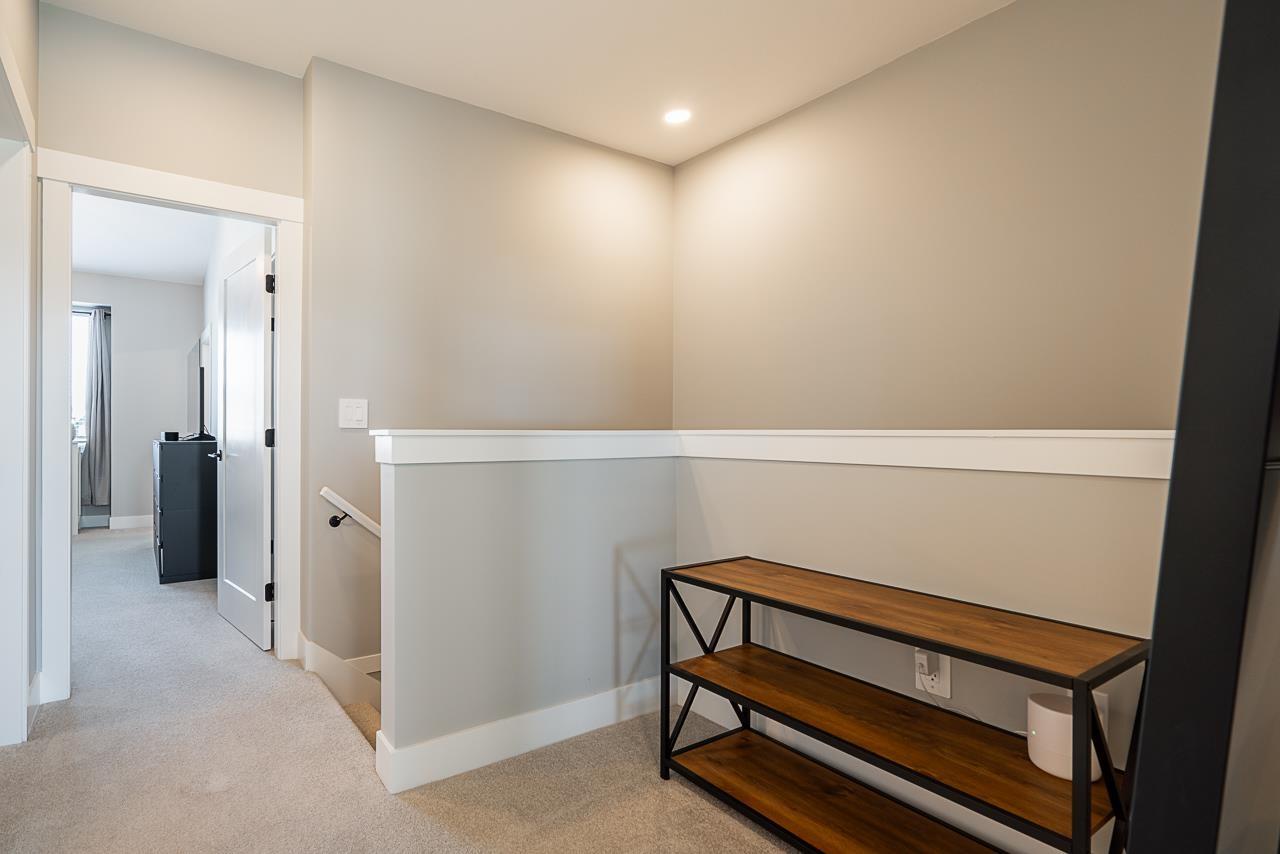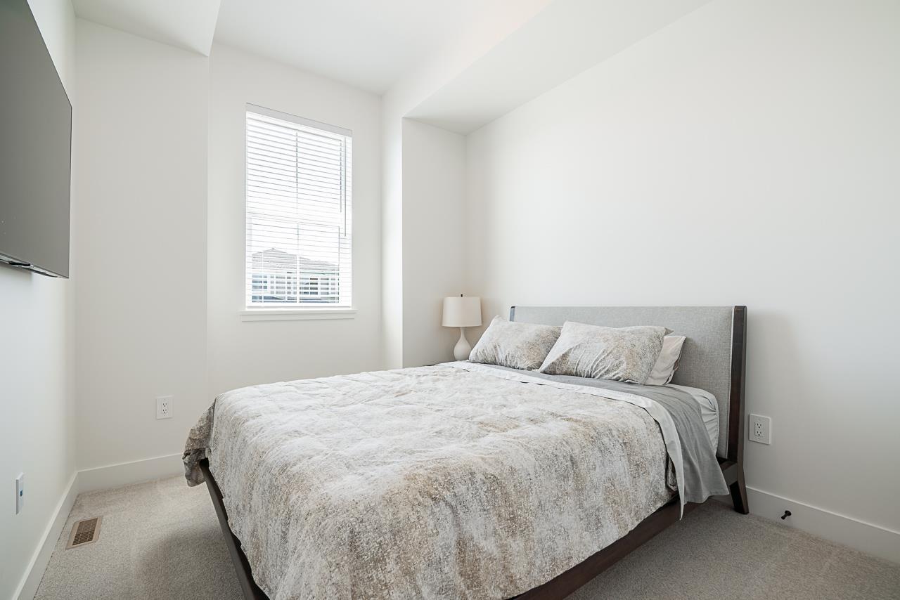 Welcome to Roots - a luxurious, move-in-ready non-strata rowhome in thriving West Langley! NO GST - this stunning home has been lightly lived in and shows like new. Enjoy 9' ceilings, a fully finished basement, and an efficient gas heating/hot water system. The chef's kitchen is a showstopper with black KitchenAid appliances, quartz counters, full-height backsplash, and floating wood shelves. Cozy up by the gas fireplace with custom mantle and tile surround. Thoughtful design, high-end finishes, and unbeatable value just minutes from Willoughby's shops and amenities. Don't miss this one! (id:52823)