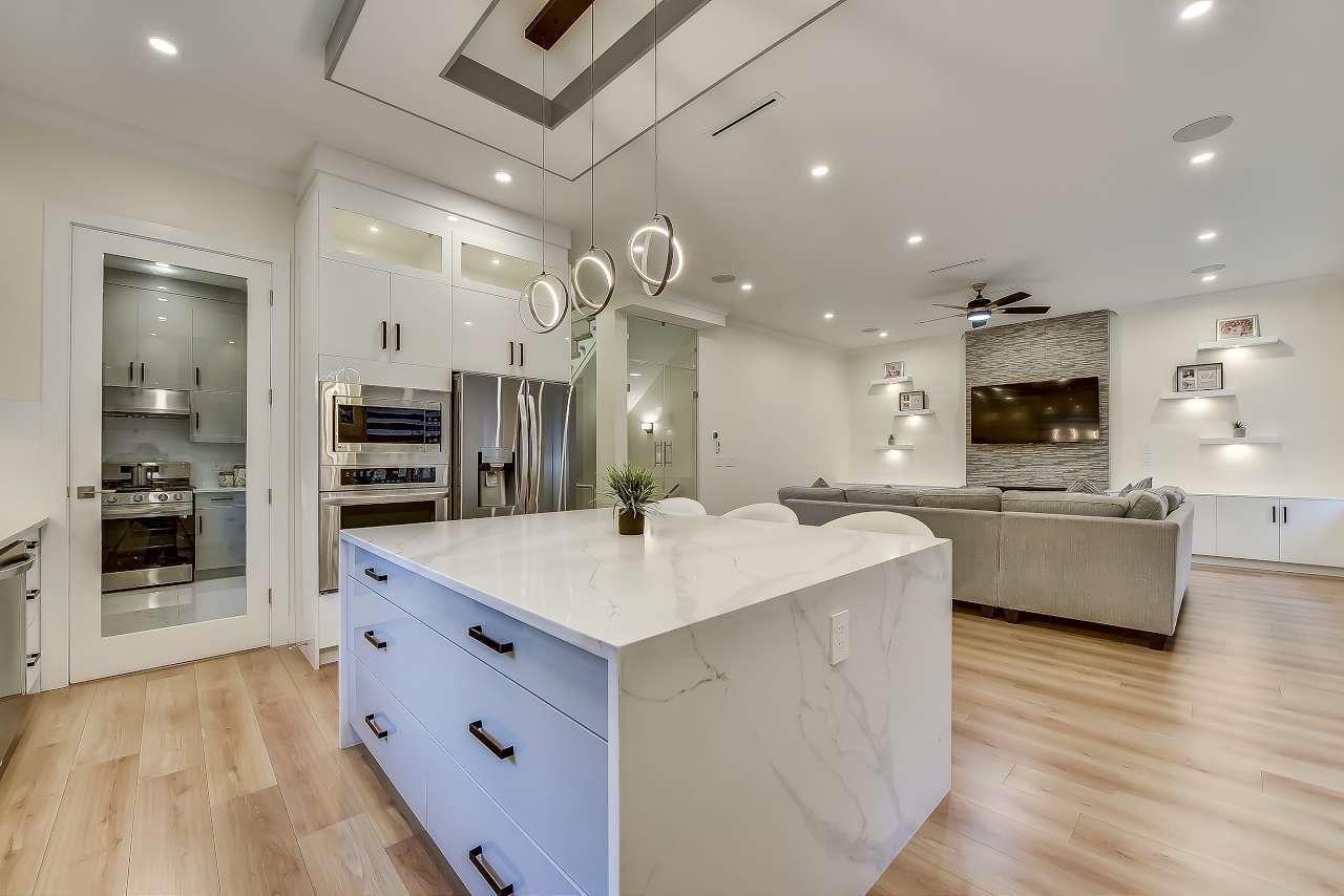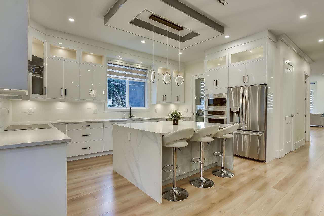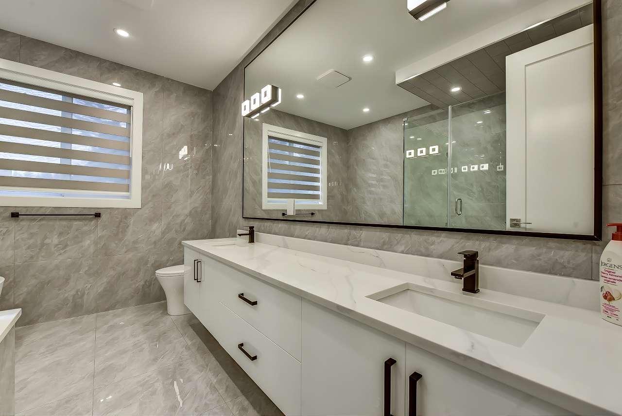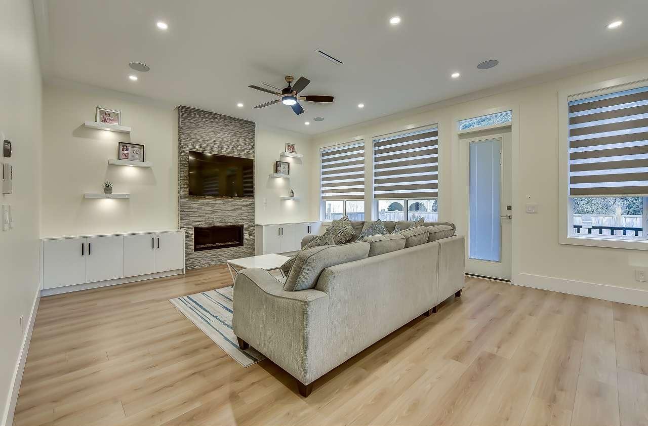 Welcome to this elegant West Coast-inspired home, offering 5,500 sqft of refined living space on a 7,850 sqft lot. The main floor features open, luminous living and dining areas, a versatile master or guest bedroom, and a cozy family room with a striking entertainment wall. The chef's kitchen is a culinary delight, with a spacious island, quartz countertops, designer backsplash, and a bonus spice kitchen. Upstairs, enjoy a loft and four bedrooms, each with ensuite baths and walk-in closets. With two mortgage helpers, built-in speakers, smart thermostats, radiant heating, AC, and steam showers, this home offers both luxury and convenience. This home combines exquisite design with practical features, making it the perfect choice for those seeking an elevated lifestyle. Don't miss this!! (id:52823)