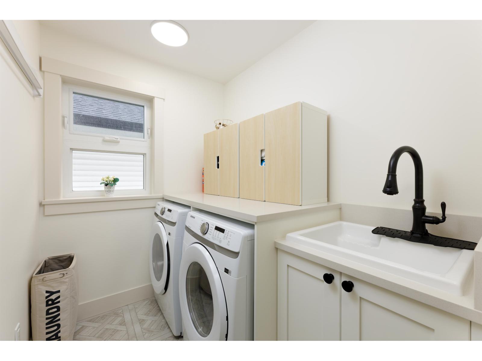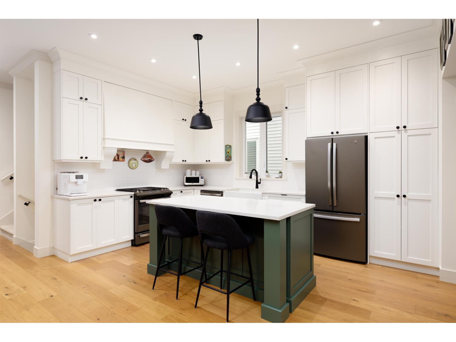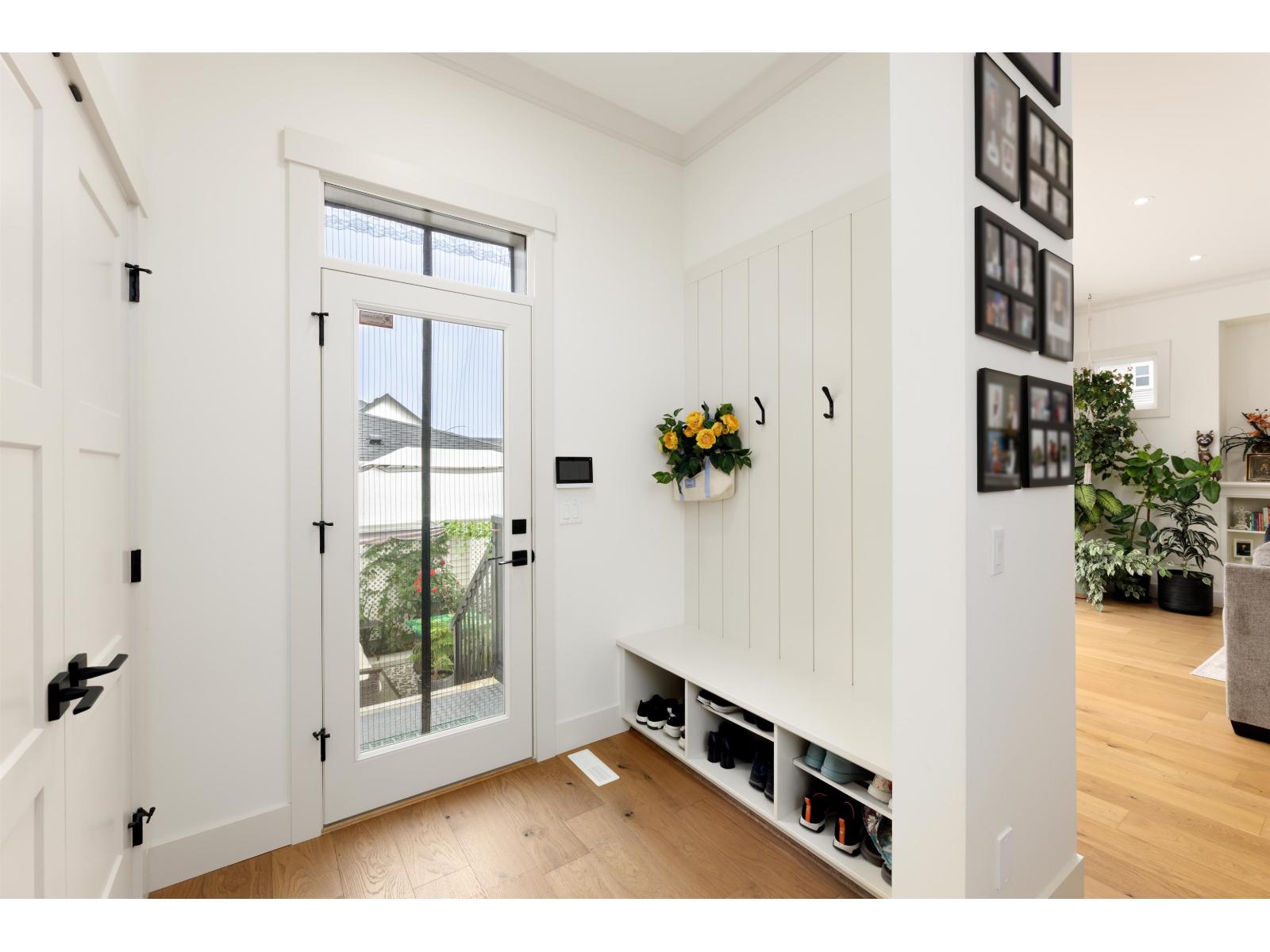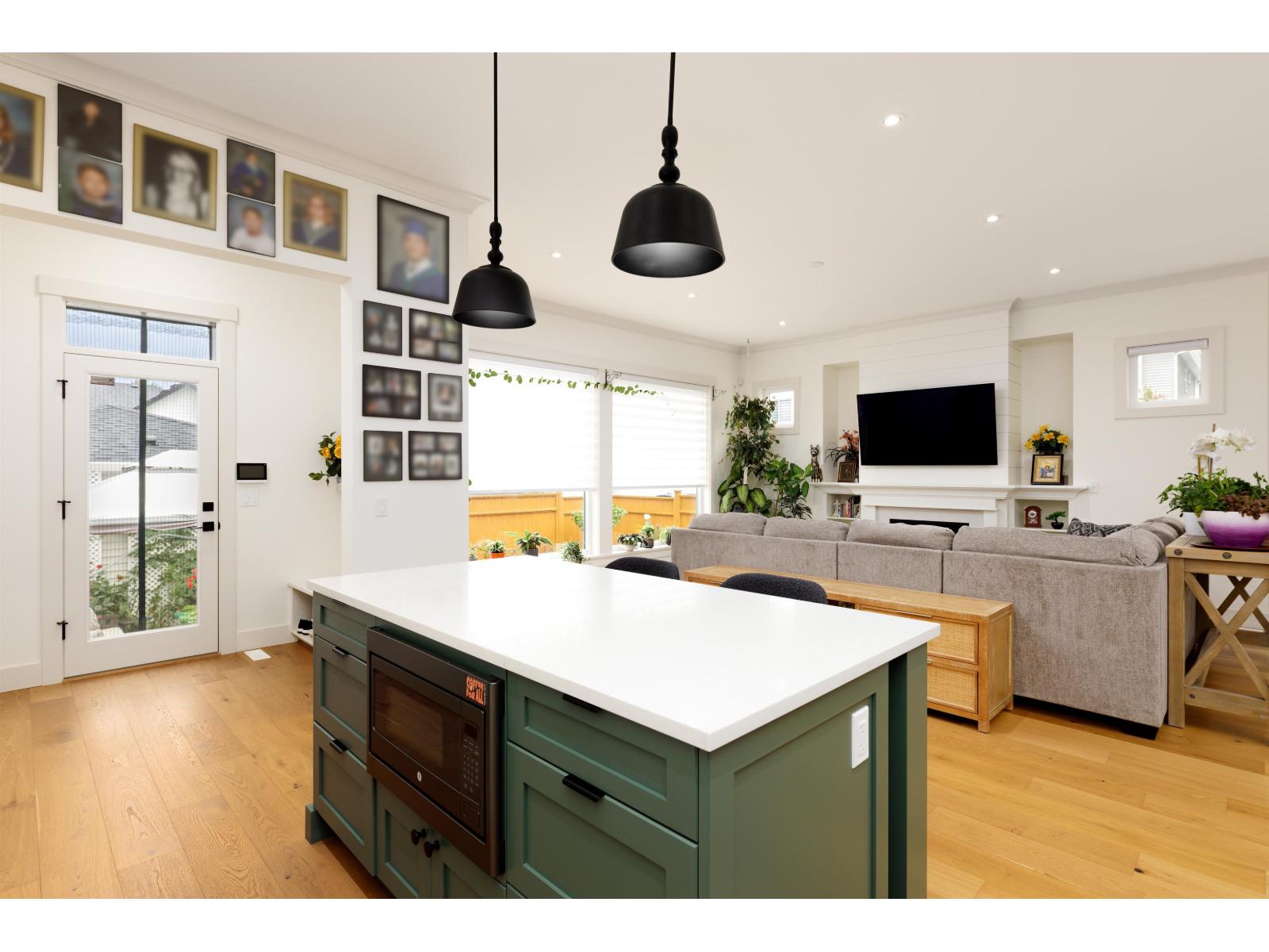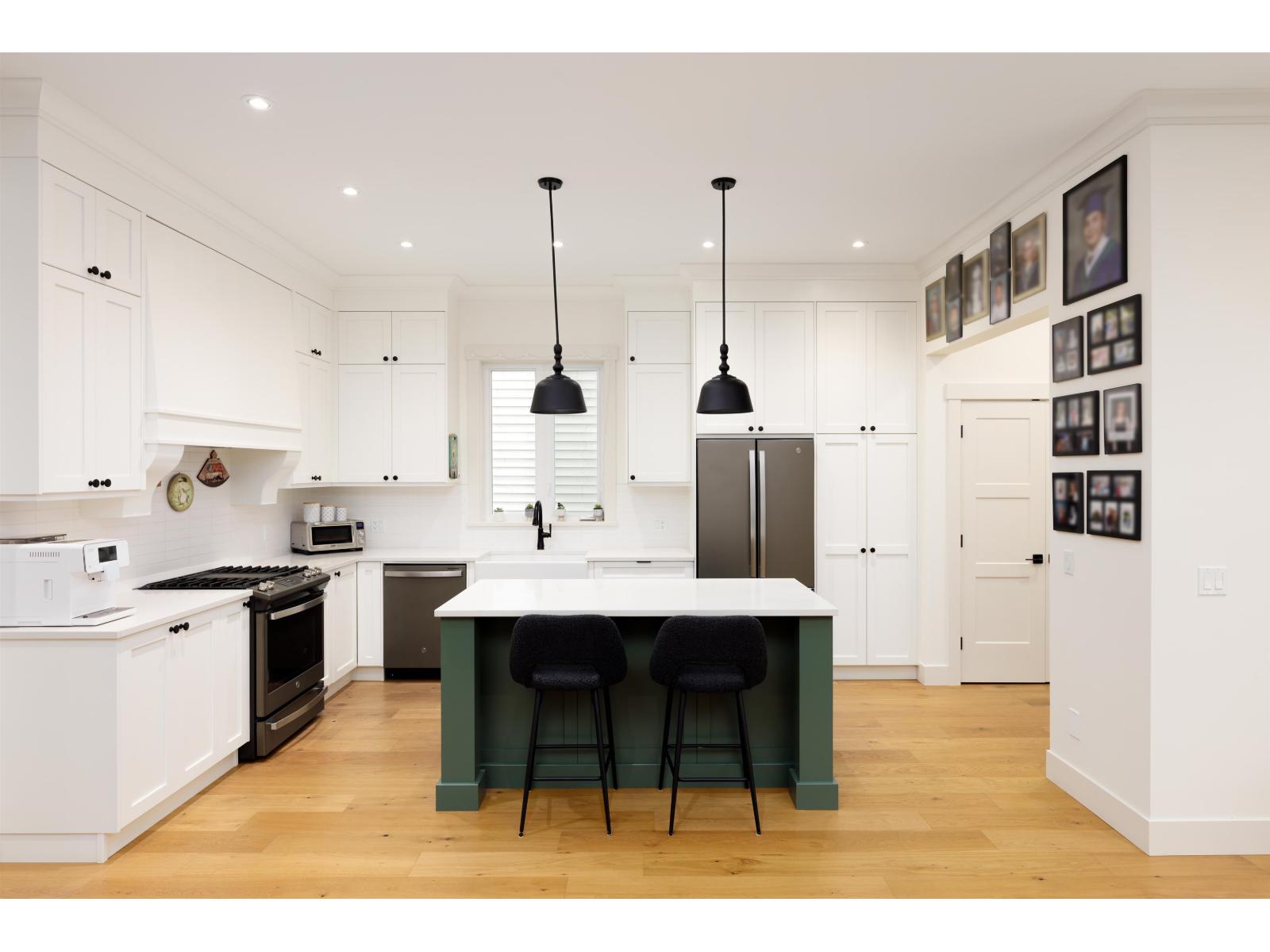Modern and stylish, this well-built by Lanstone & Wesmont home features top-quality finishes and appliances. Air conditioned. Located on a corner lot, it offers extra space, added privacy, and extra windows. The open-concept main floor boasts 10' ceilings, oversized windows, crown moulding. Wide plank engineered hardwood throughout main and upper levels. Oversized gourmet kitchen with a large island. Cozy backayrd with grass, plants, flowers offers a concrete patio with BBQ gas outlet off the kitchen and living room. 2-bedroom legal suite with an in-suite laundry; durable vinyl planks flooring in the basement living areas. Bonus rec room in the basement. 2 car garage, 1 parking spot + street parking. Custom mudroom when you enter the house from the garage. Open house Sun Oct 19 2-4 pm. (id:52823)