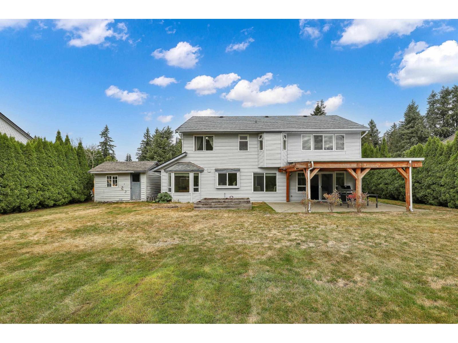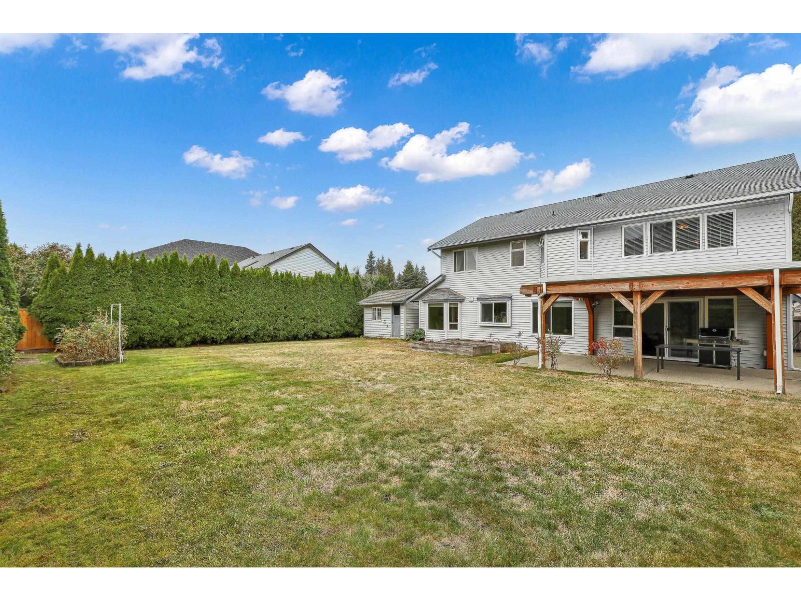 Nestled in a quiet cul-de-sac in one of Langley's most desirable communities, this spacious 5-bedroom family home with a games room offers the perfect blend of comfort and quality. Built with solid 2x6 construction, it boasts numerous updates including new windows in 2017, on-demand hot water, and efficient radiant heating, updated kitchen with quartz counters, stainless appliances and gas range. The home is connected to city water while maintaining septic, providing flexibility and convenience. Outdoors, you'll find a private, south-facing yard complete with a yard irrigation system, ideal for entertaining or quiet relaxation. Inside, the thoughtful layout is tailored for family living, with ample space to gather and grow. This is a true family home in a welcoming neighborhood. (id:52823)